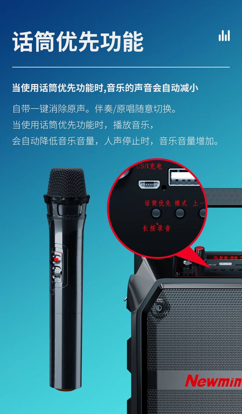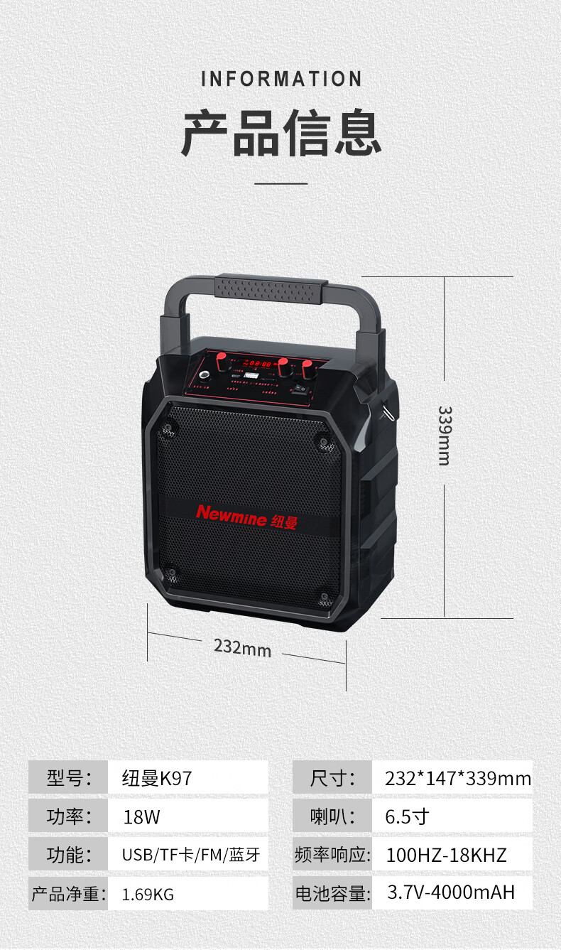 Newman K97 square dance audio outdoor high-volume wireless Bluetooth speaker small household card radio portable portable stall speaker WeChat payment voice announcer K99 flagship version dual microphone + remote control official standard