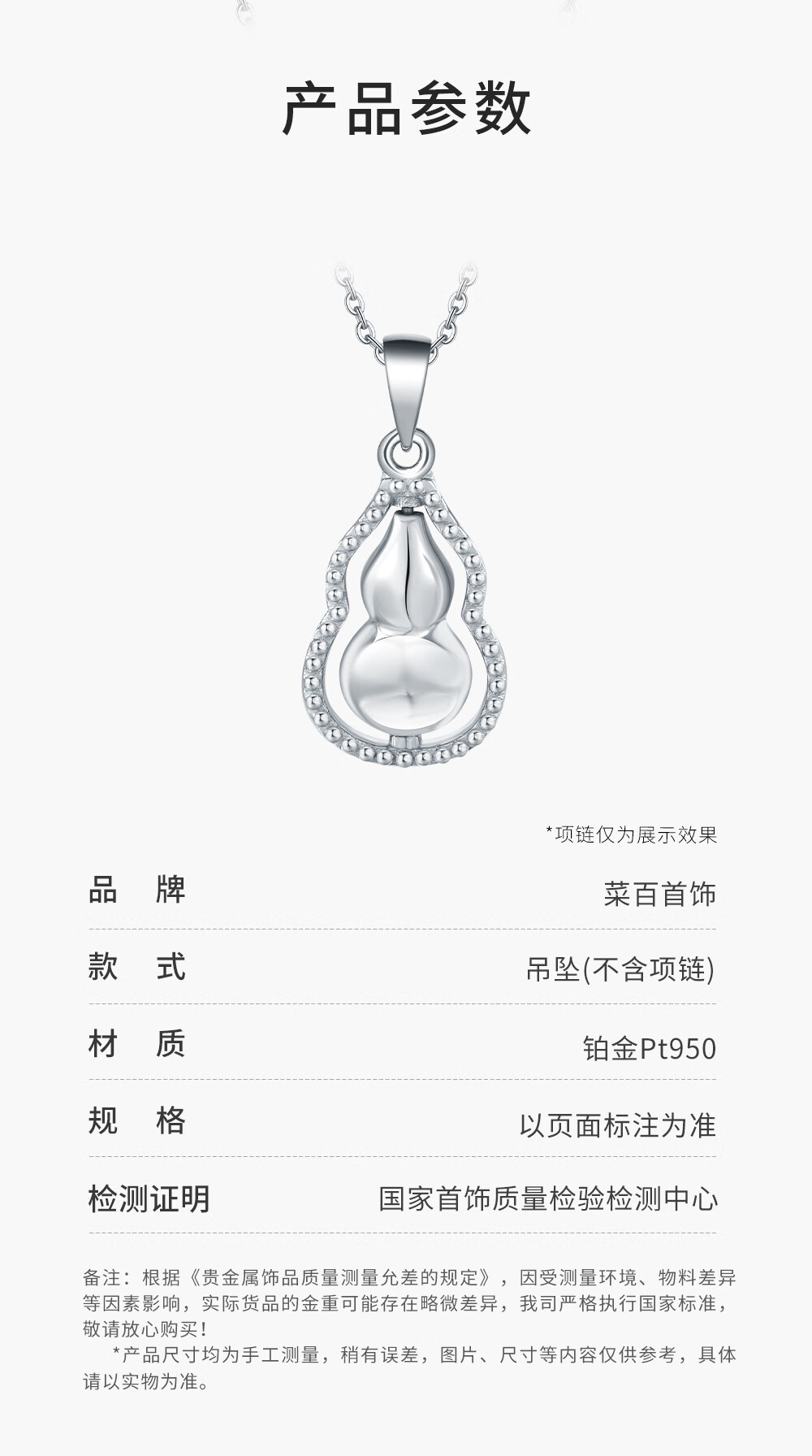 Caibai Jewelry Platinum Pendant PT950 Platinum Gourd Fulu Meaning Pendant Does Not Include Chain Price Approximately 3.15g