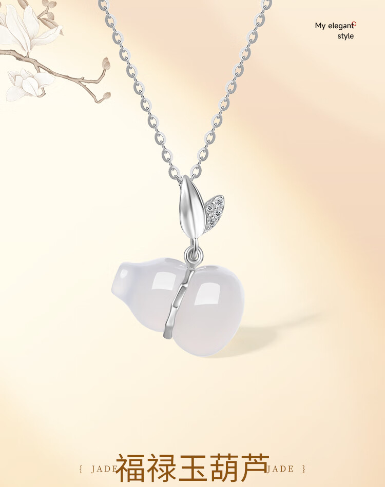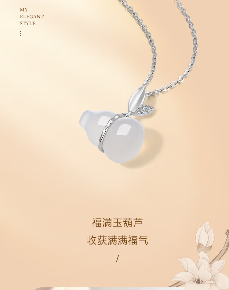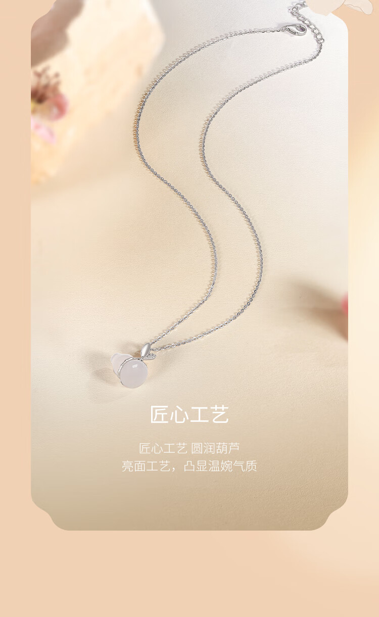 Saturday Fu Fulu Gourd Pendant Women's S925 Silver Necklace Auspicious Chalcedony Pendant Birthday Gift J0612306 40+5cm