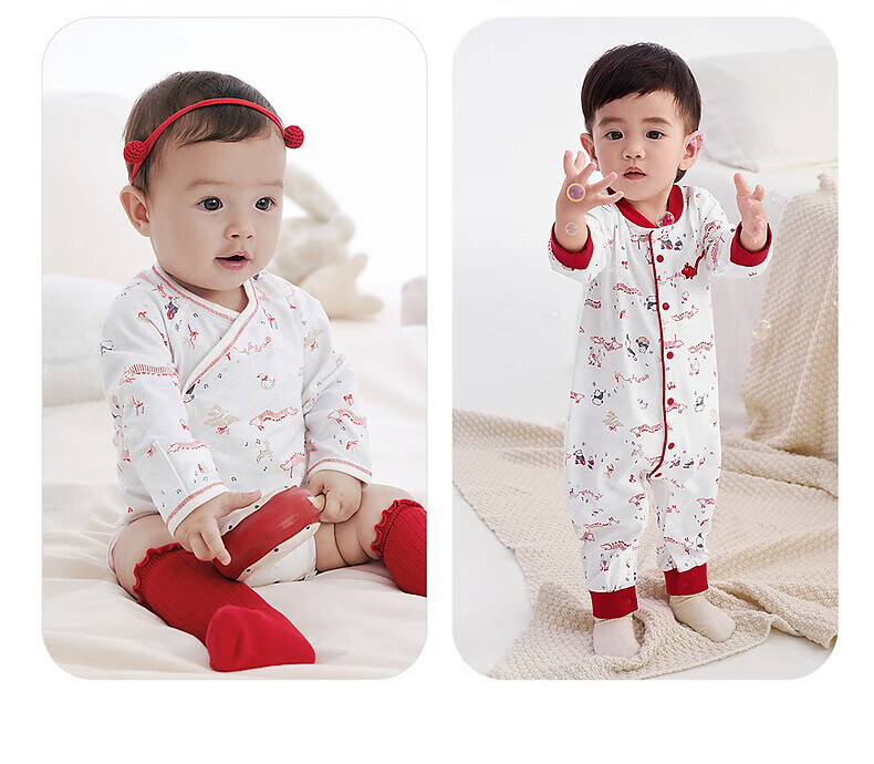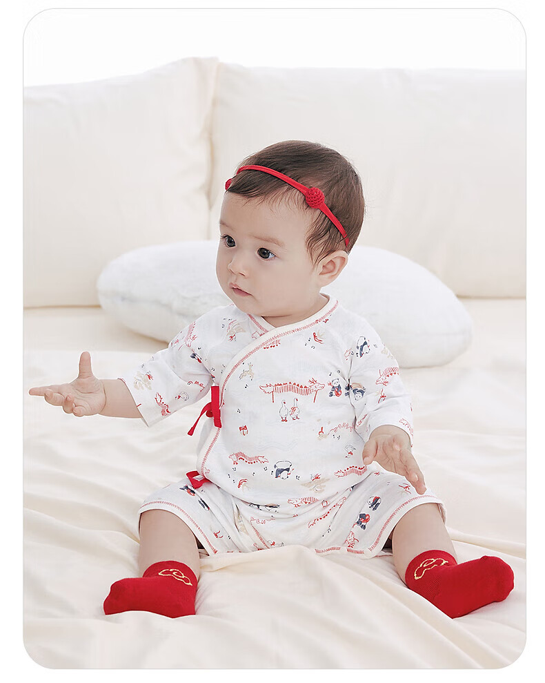Yingshi (YEEHOO) Yingshi shopping mall same style newborn baby jumpsuit newborn baby long-sleeved Chinese style full moon daytime wear