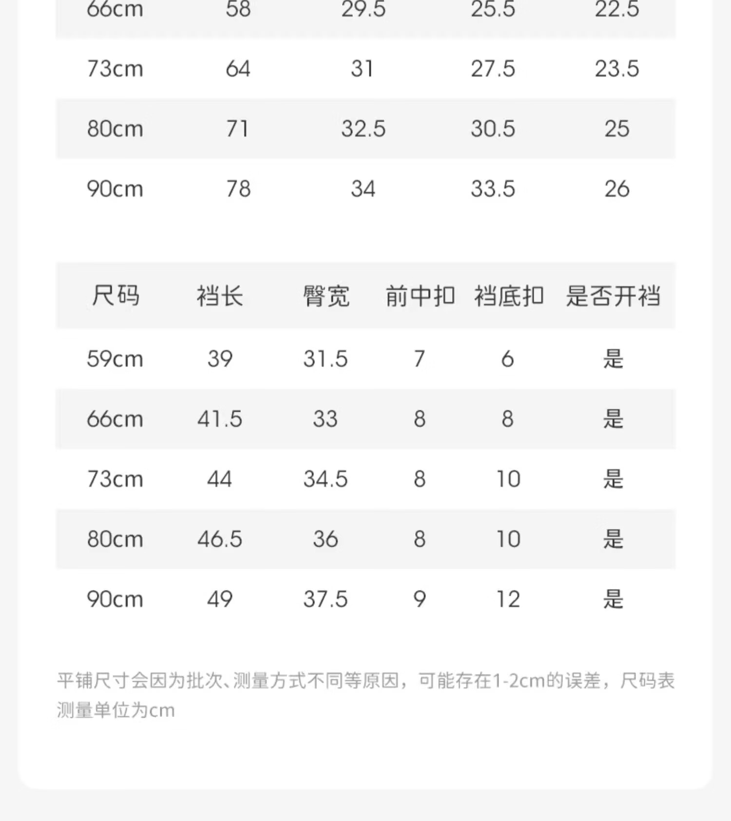 Outseam (cm) 99 cm 101.5 cm 104 cm 106.5 cm 109 cm