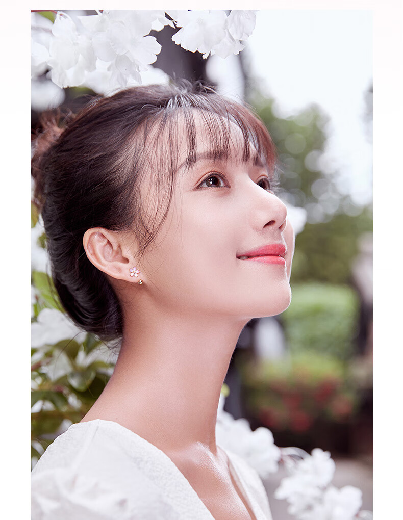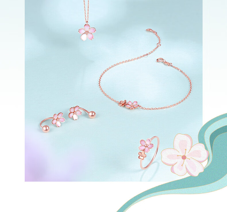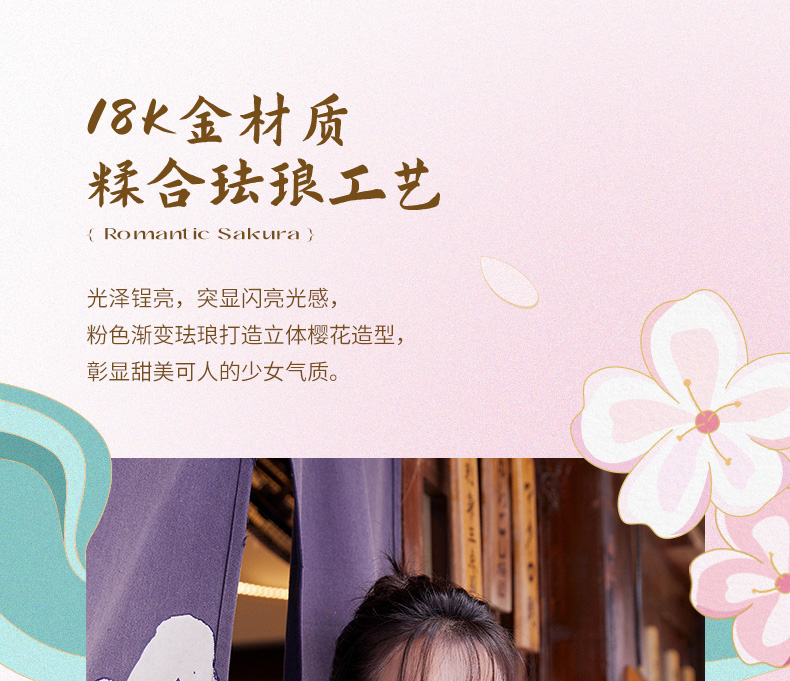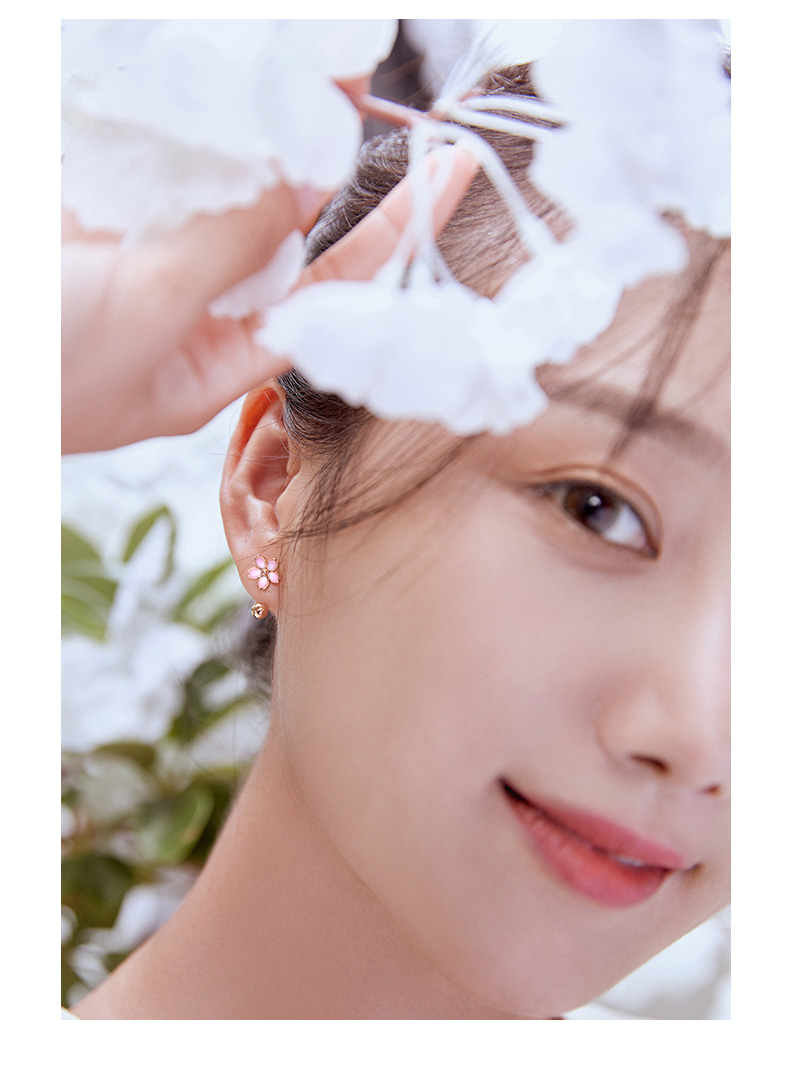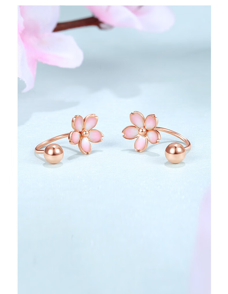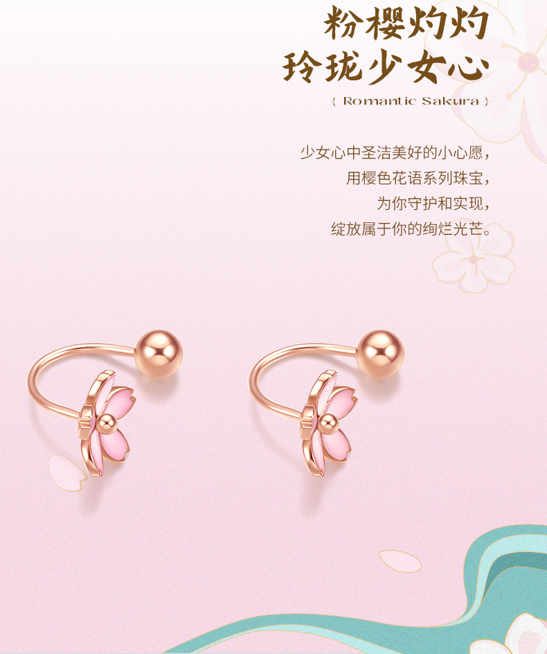 Saturday Fortune (ZLF) Sakura Drunken Series 18K Gold Earrings Women's Sakura Ear Hook Rose Gold Earrings Ready Stock
