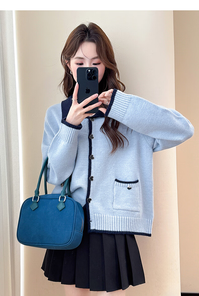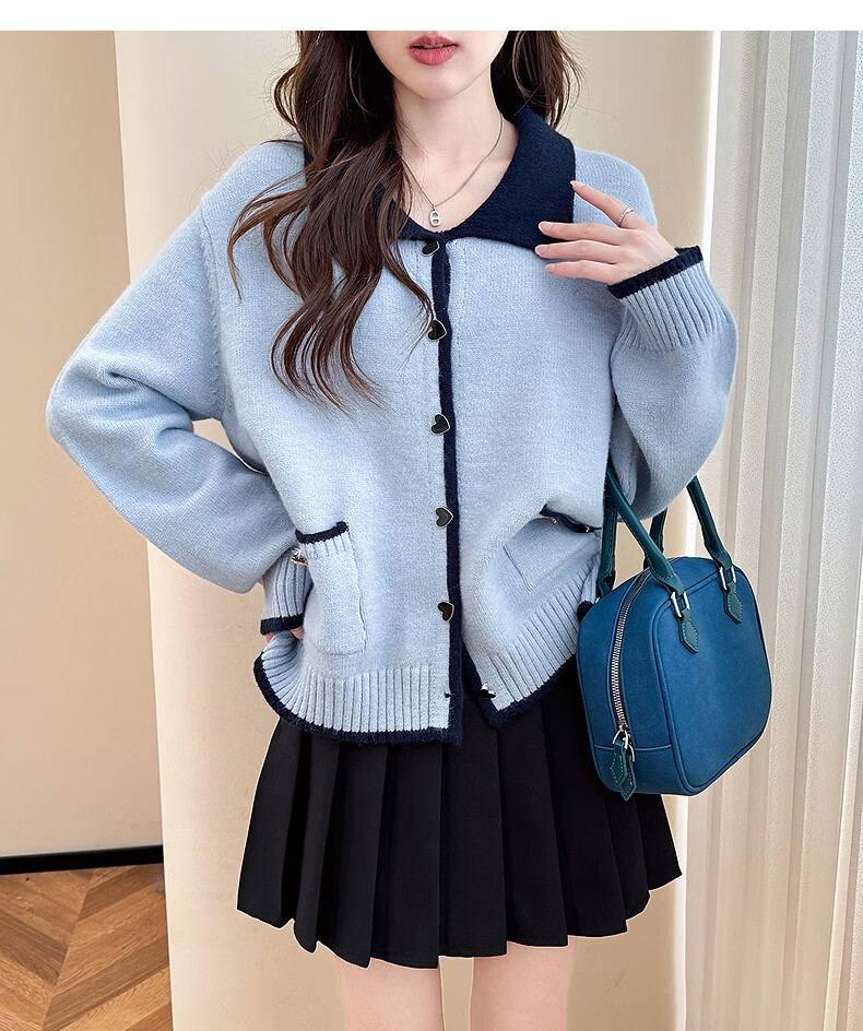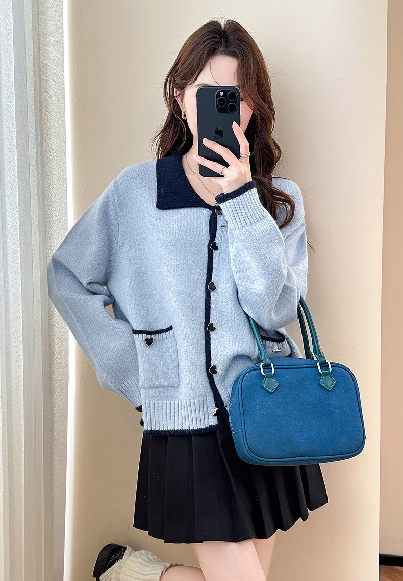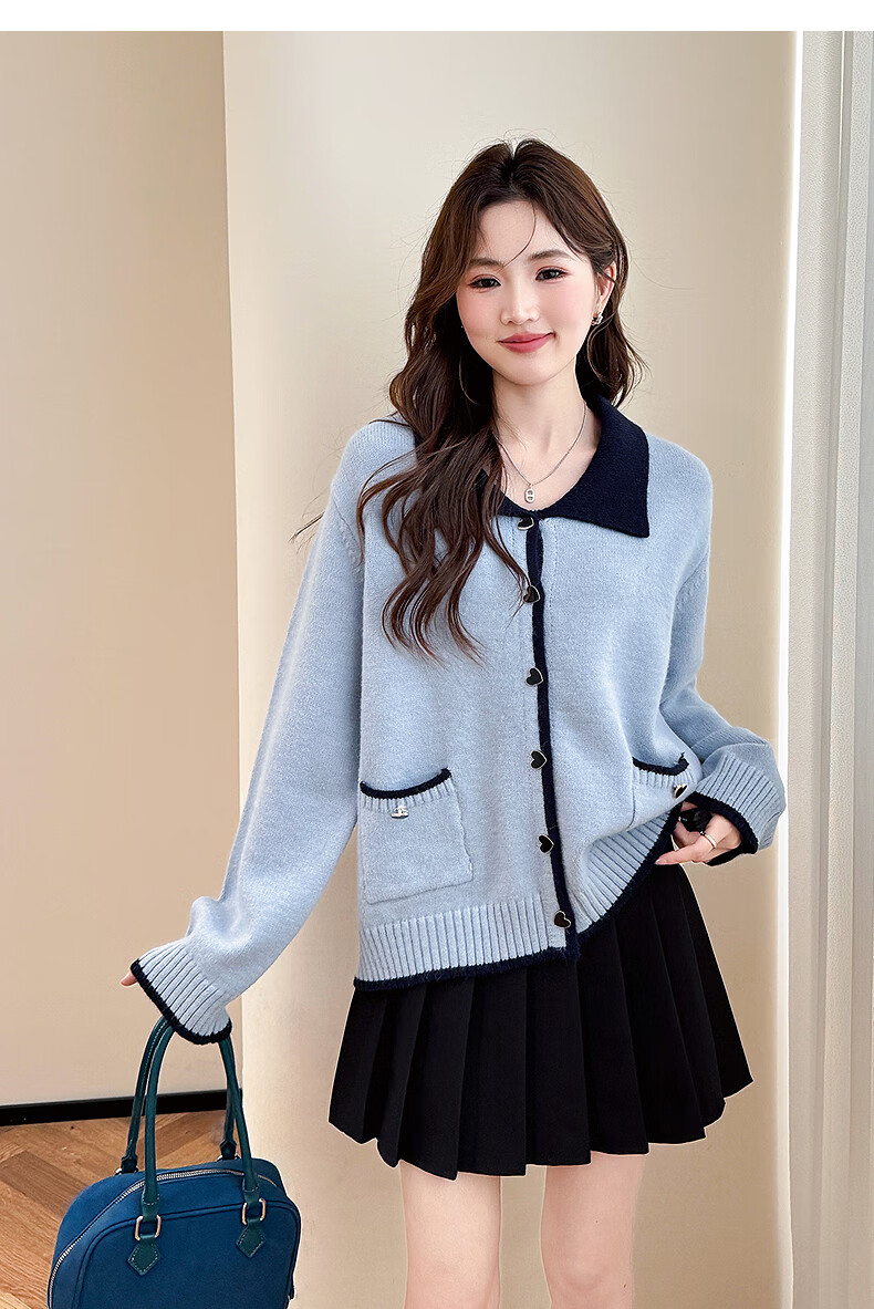 TonLion 2025 Autumn Contrast Color Design Women's Lapel Cardigan