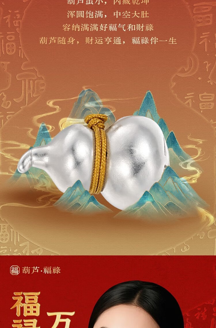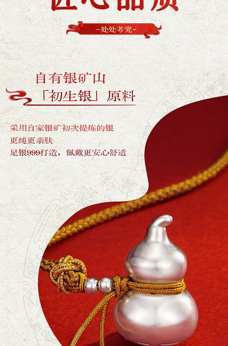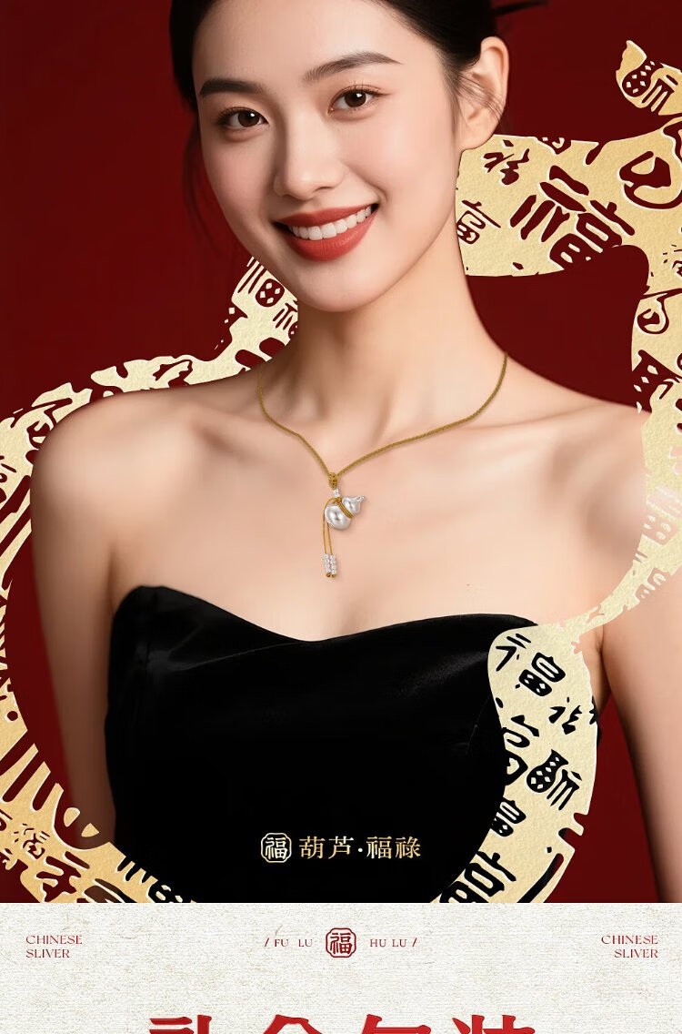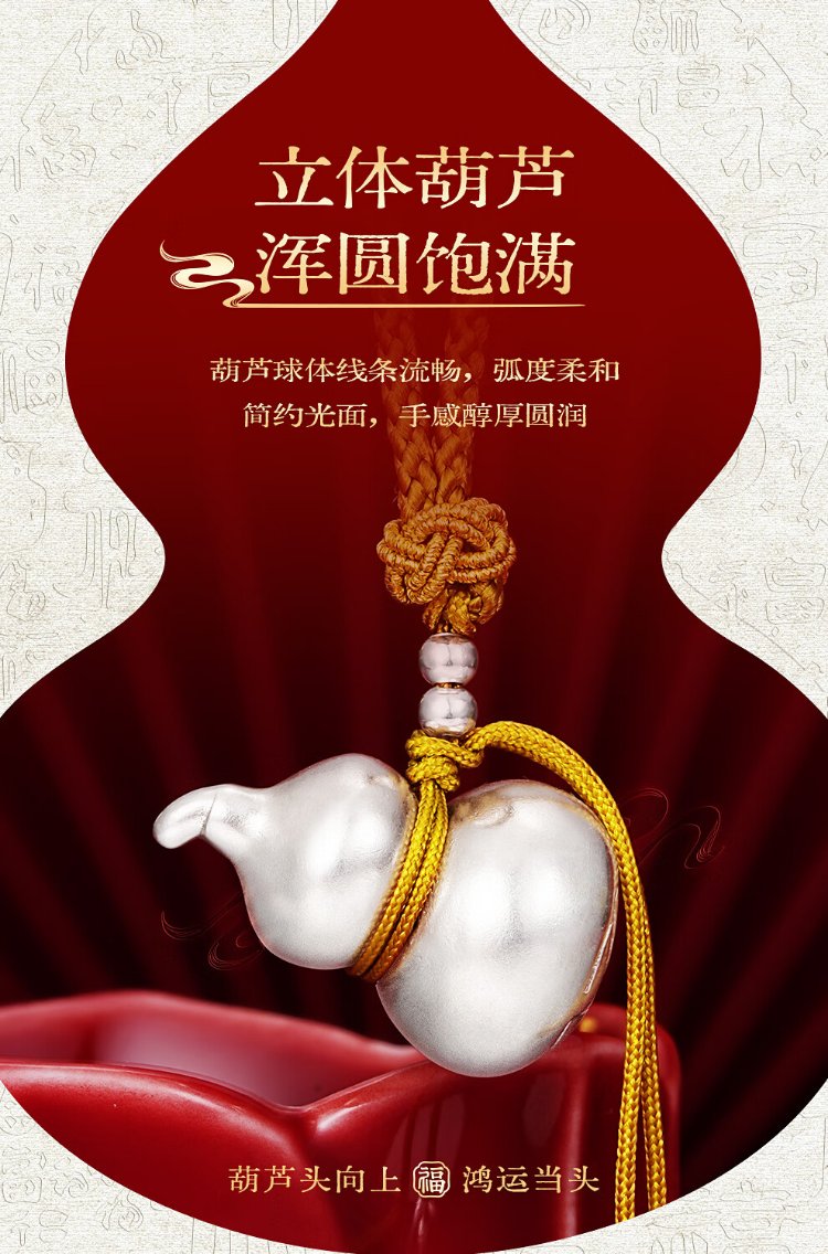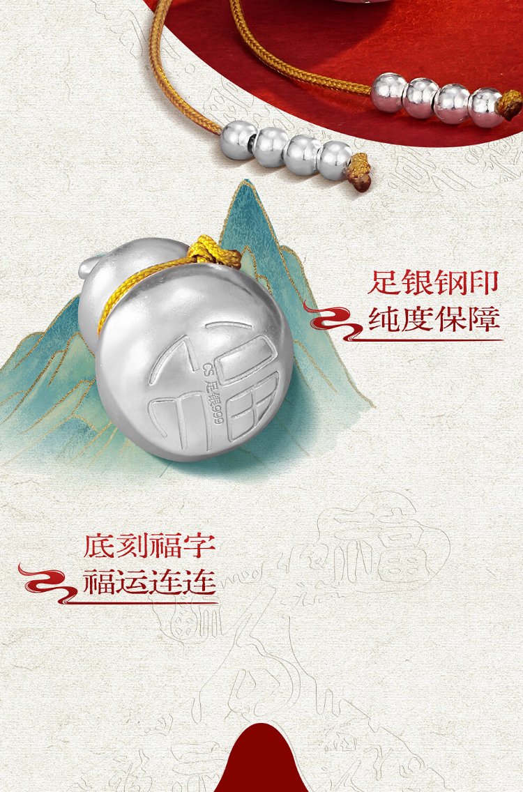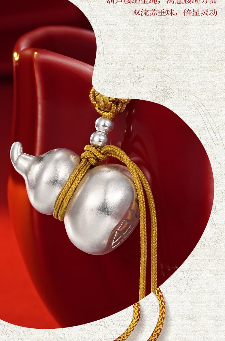 Zhenhui Silver Gourd Pendant Pure Silver 999 Fulu Pendant New Chinese Style Couple Necklace New Chinese Style Jewelry Birthday Gift for Women