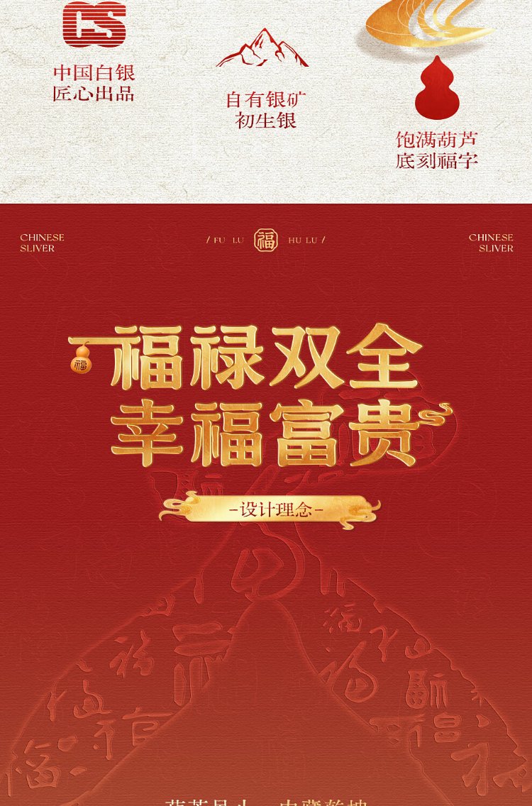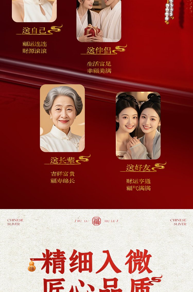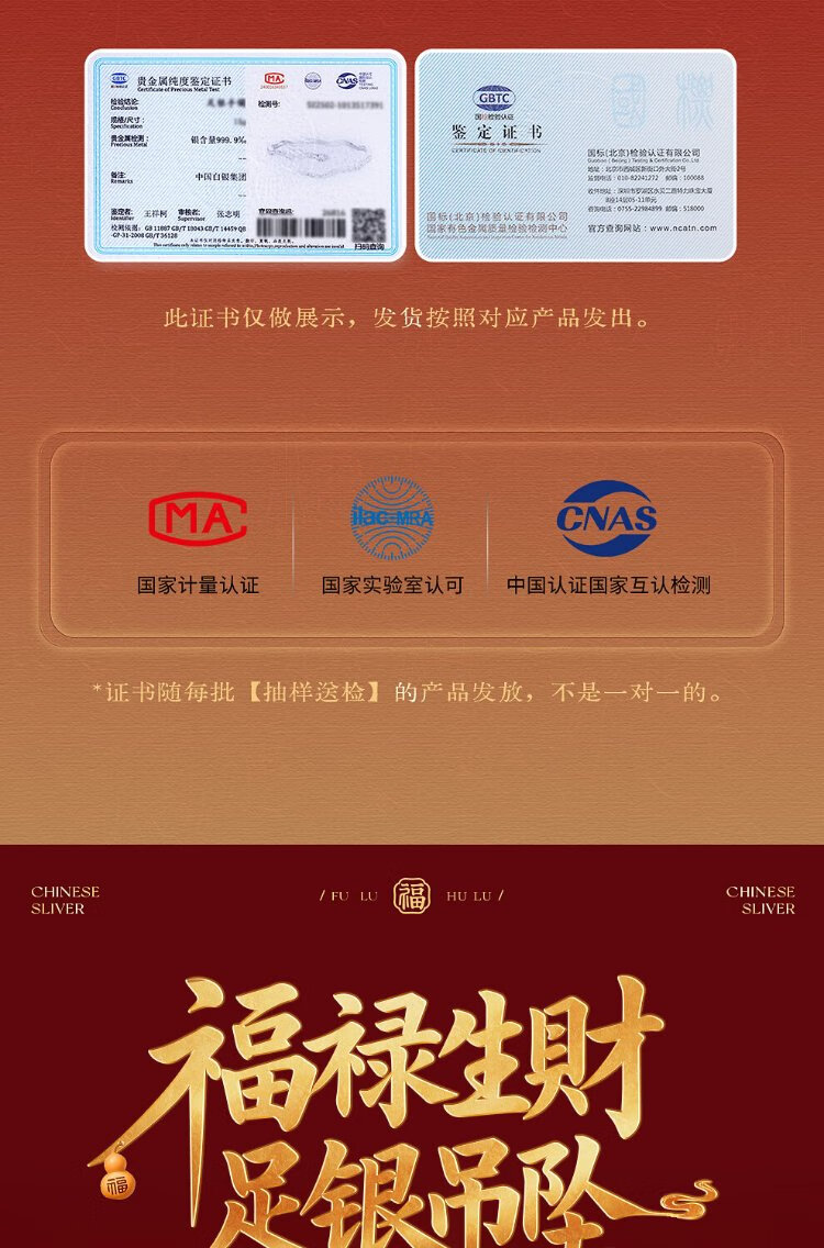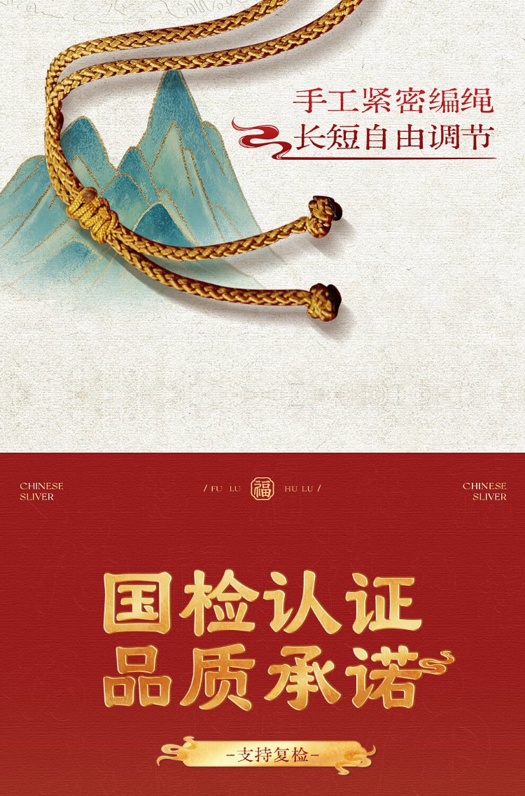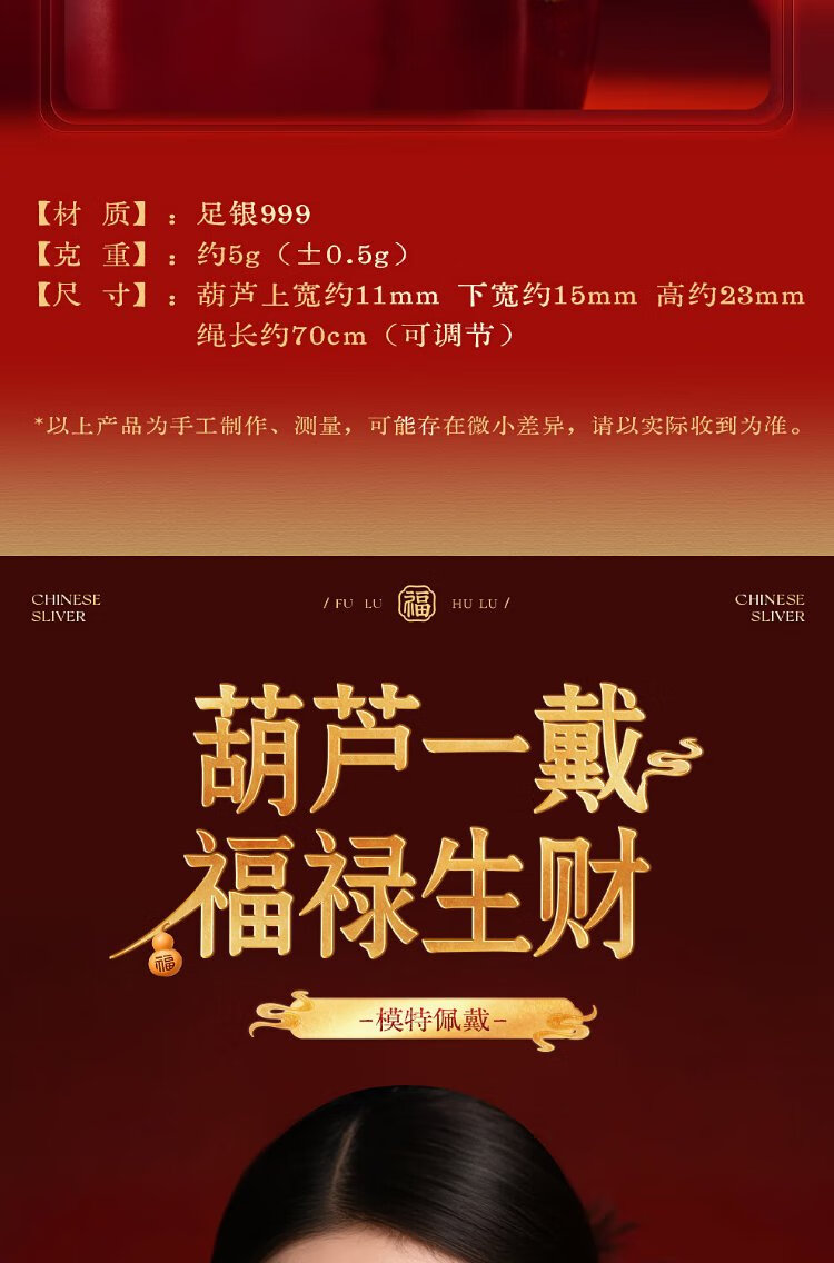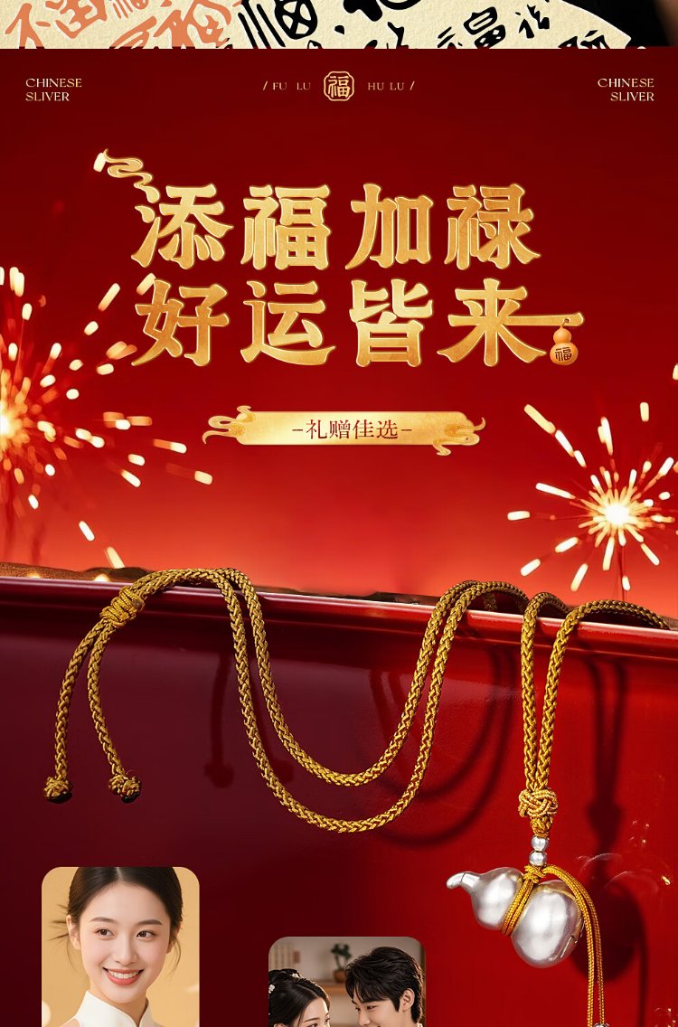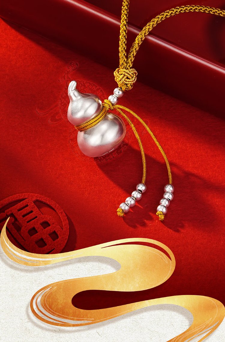 Zhenhui Silver Gourd Pendant Pure Silver 999 Fulu Pendant New Chinese Style Couple Necklace New Chinese Style Jewelry Birthday Gift for Women