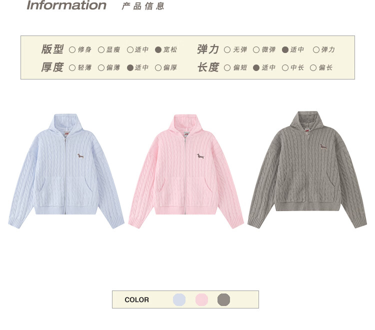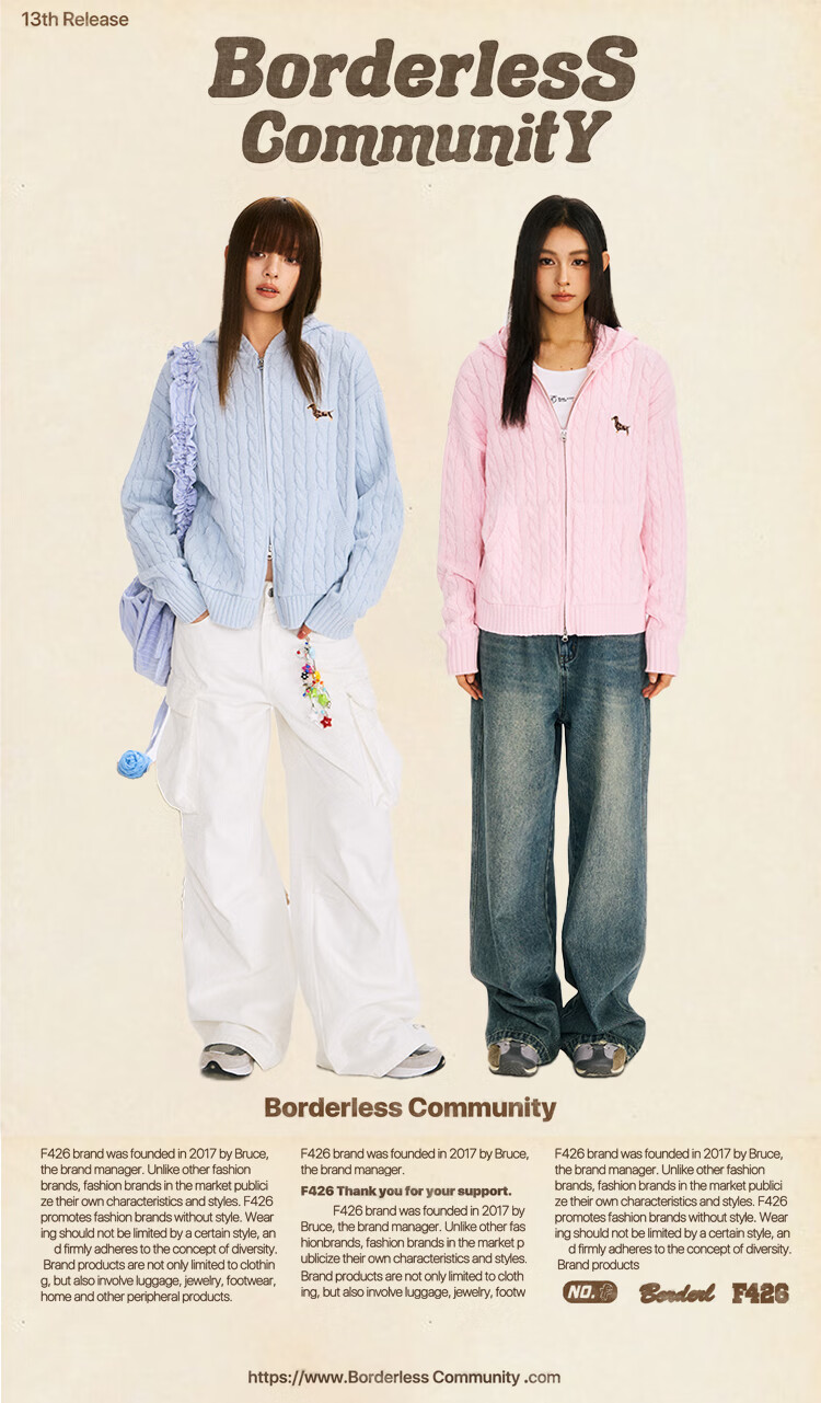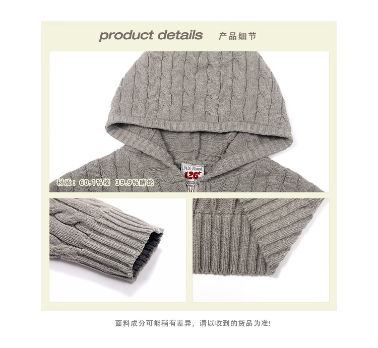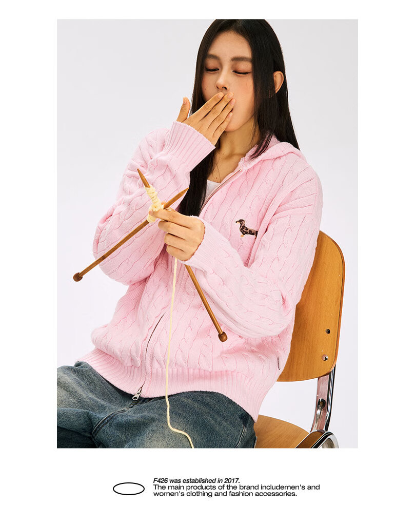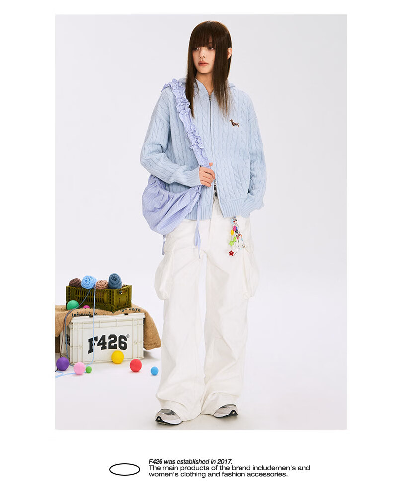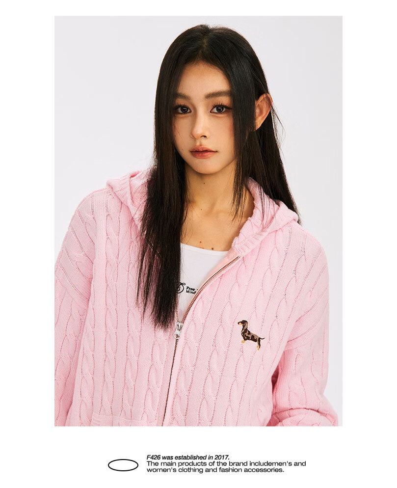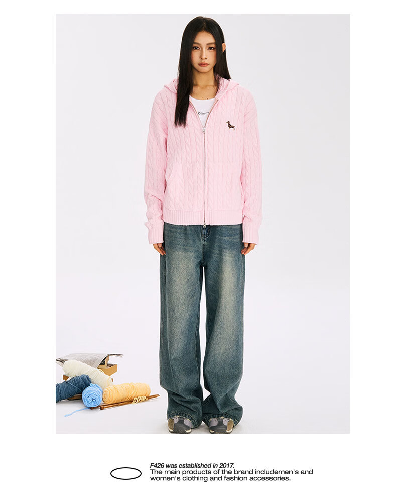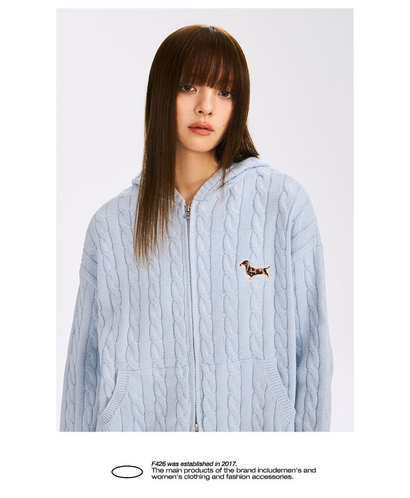 F426 official store national fashion brand autumn new casual loose retro twist hooded cardigan sweater flower gray L