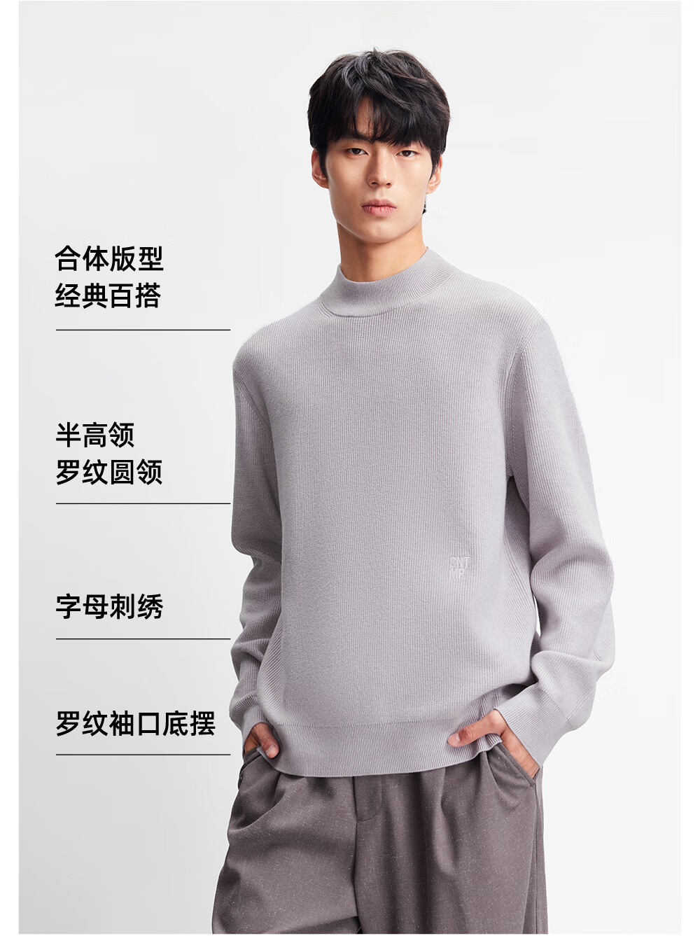JACK&JONES autumn and winter men's sweater sweater base layer warm letter embroidery versatile trendy classic simple 225324009