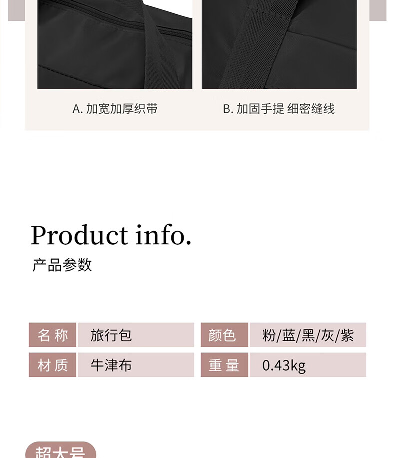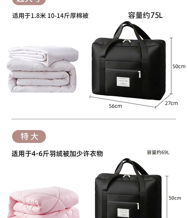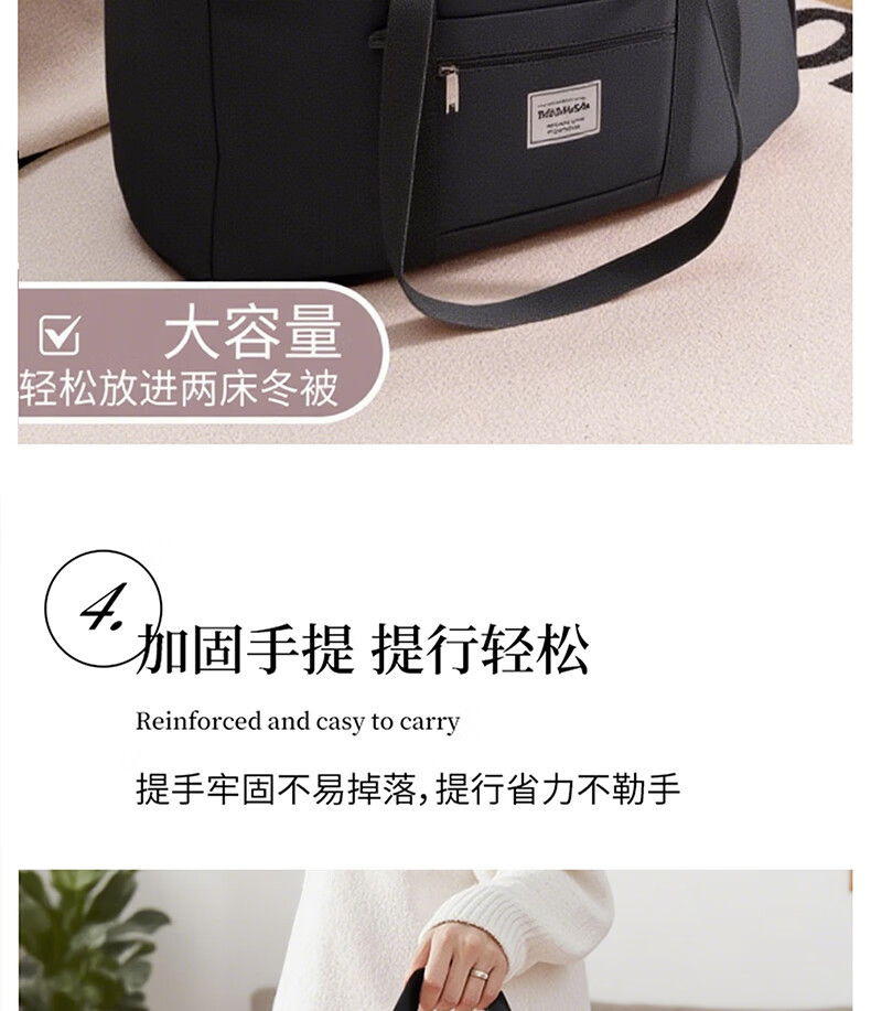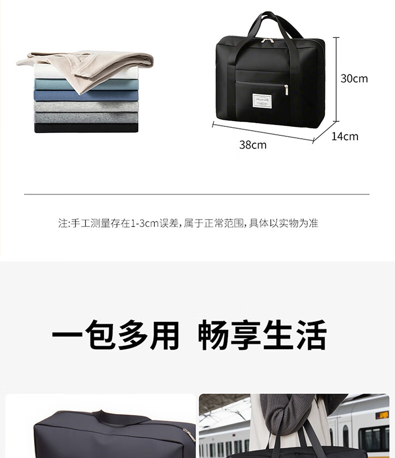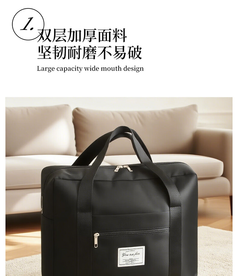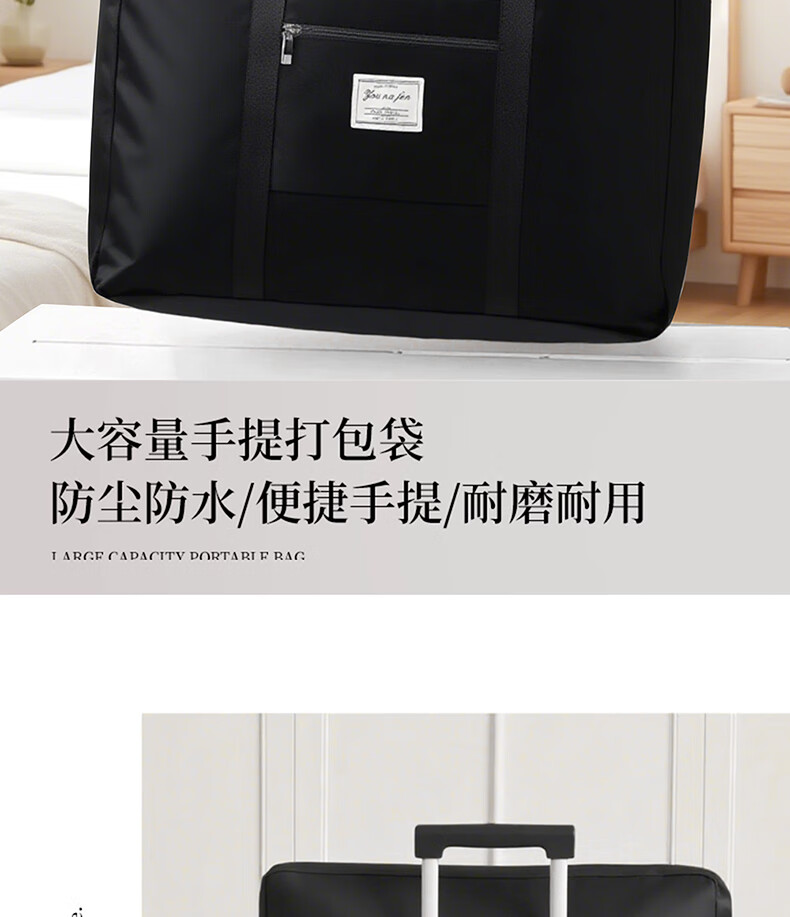 Hearing Time Travel Bag Large Capacity Suitcase Can Be Covered with Trolley Handbag Men and Women Traveling Short Distance Diagonal Storage Bag Black