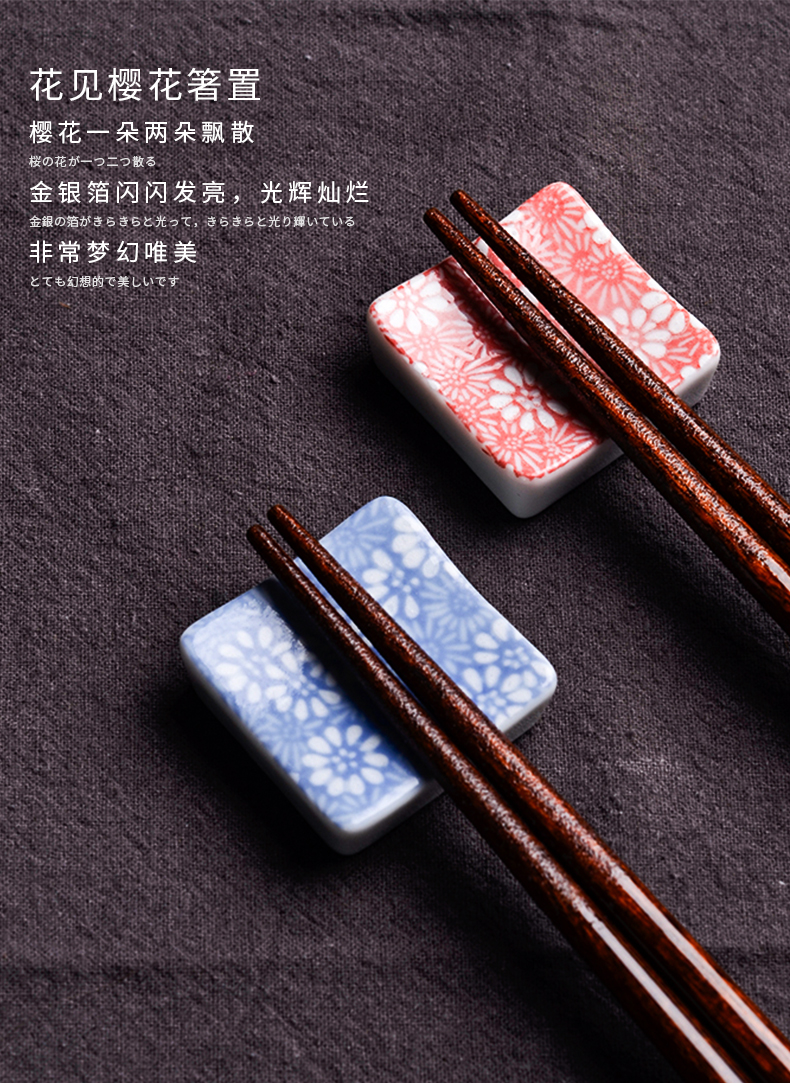 Wakasa Craftsman Japan's original imported cherry blossom chopstick holder creative chopstick holder chopstick pillow household Japanese-style ceramic pen holder cherry red chopstick set