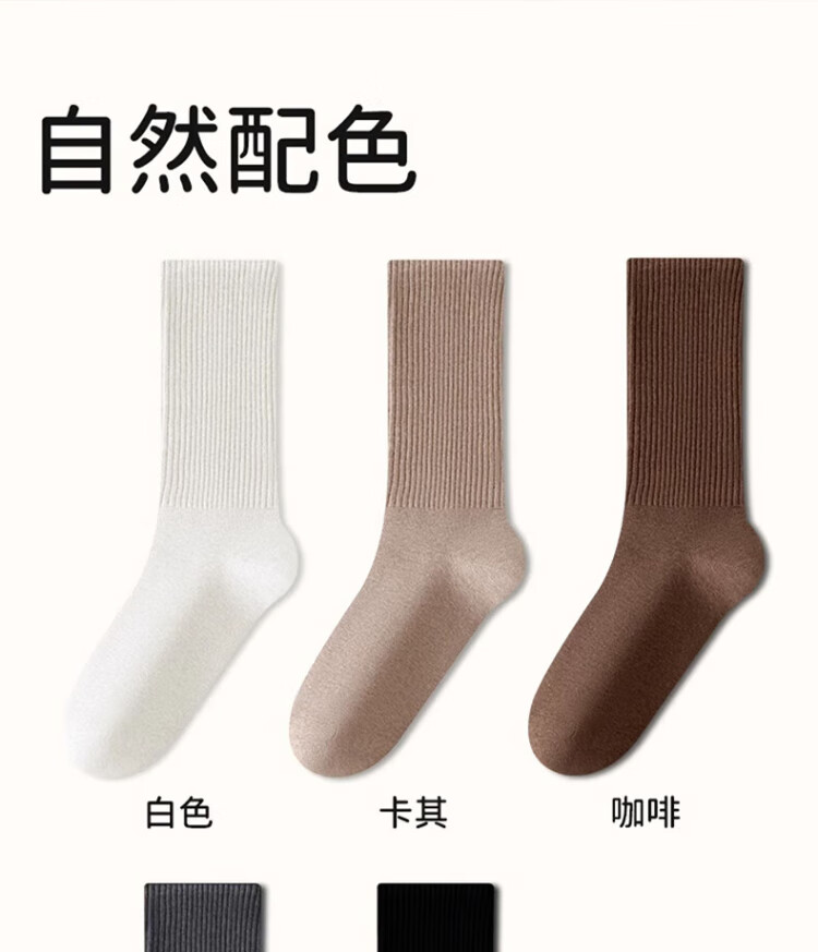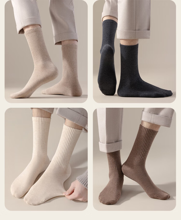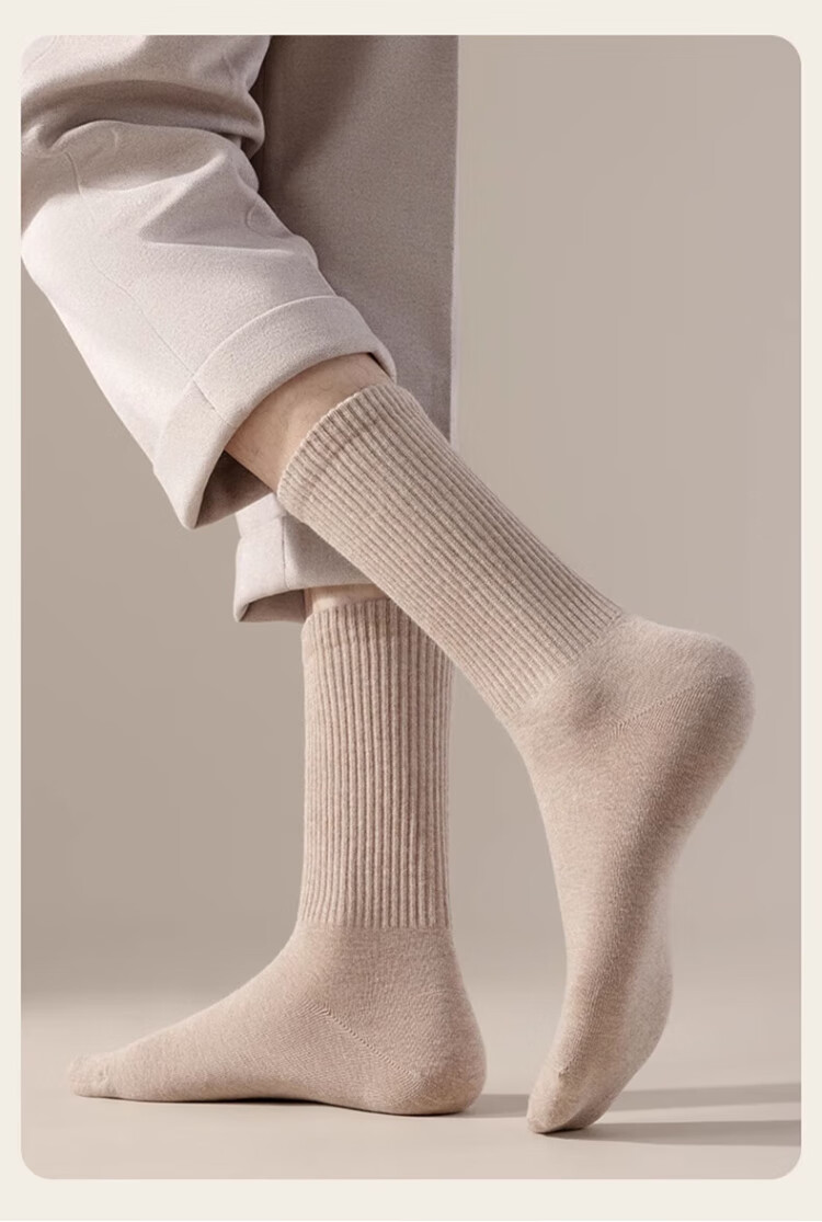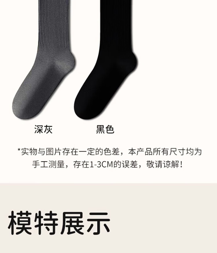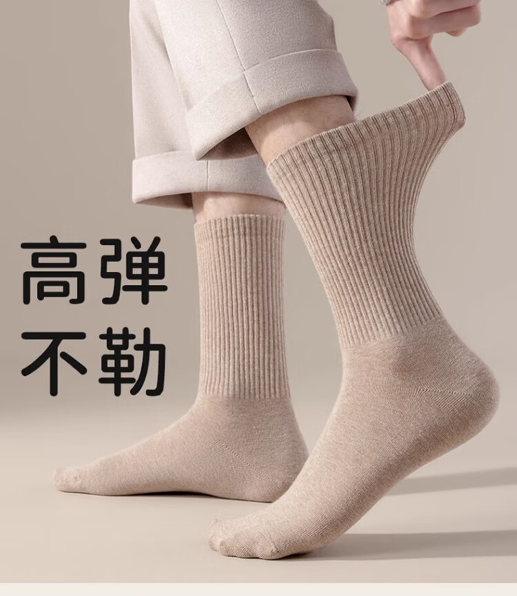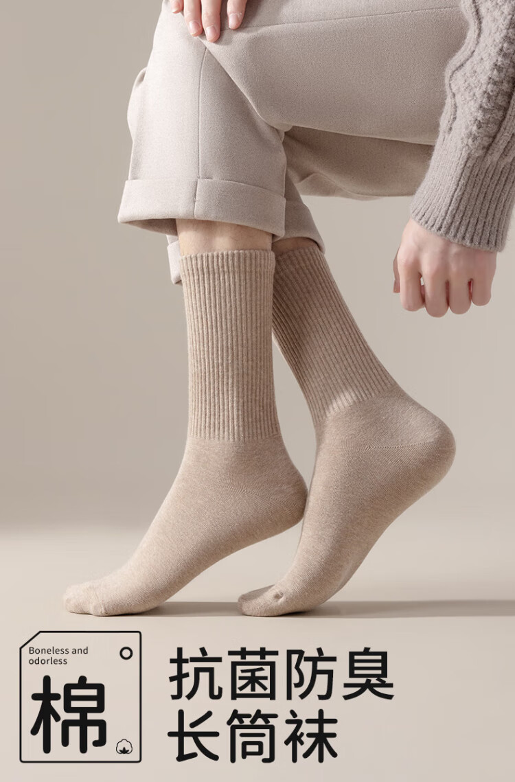 Cotton full socks men's stockings autumn and winter 100% cotton 10A antibacterial and deodorant black stockings extended high stockings 5 pairs