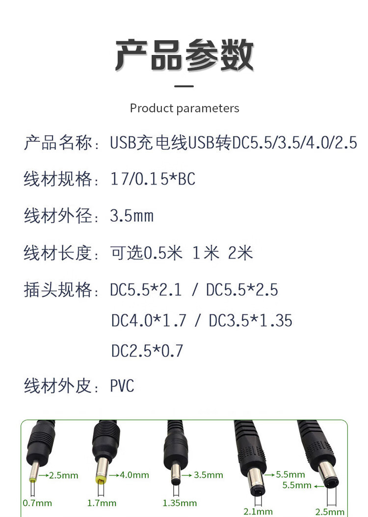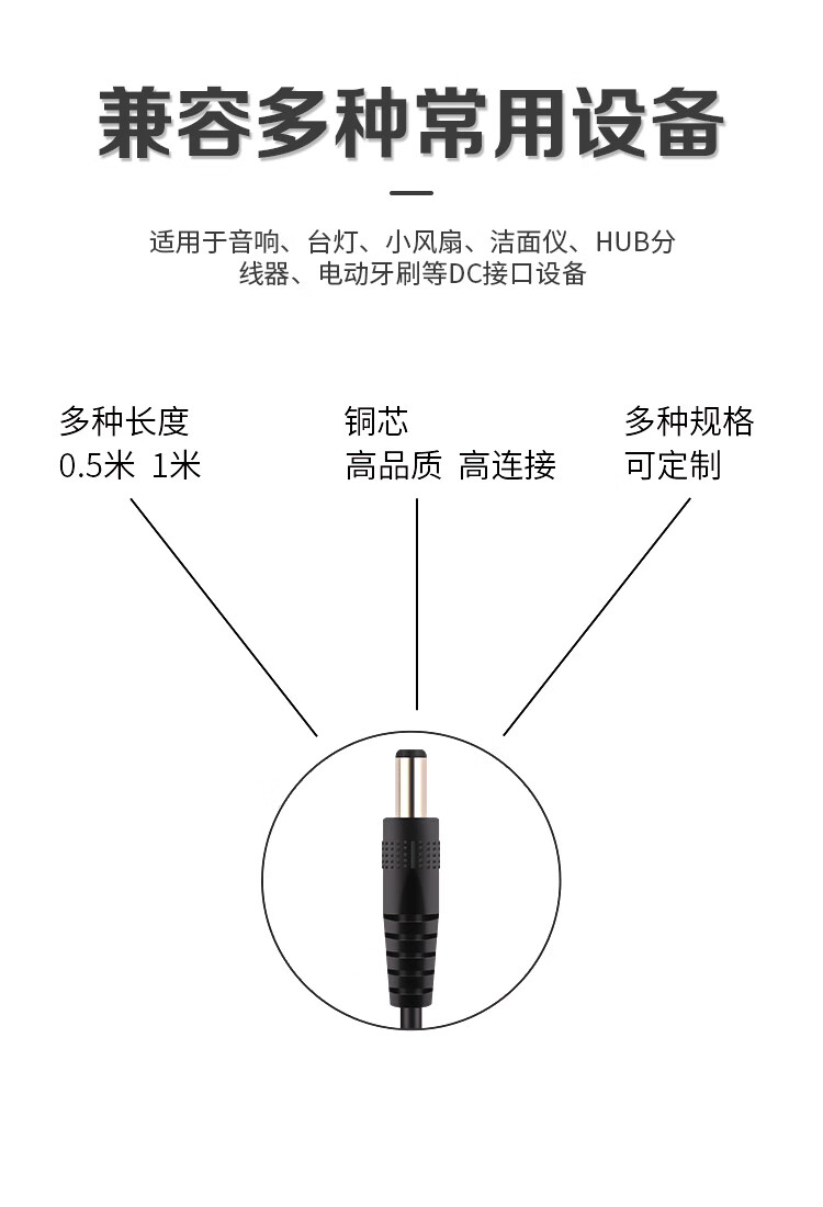 Yangguang usb to dc round hole power cord suitable for router table lamp fan toy facial cleanser black USB to 5.5*2.5/0.5m/YG-LL106-X