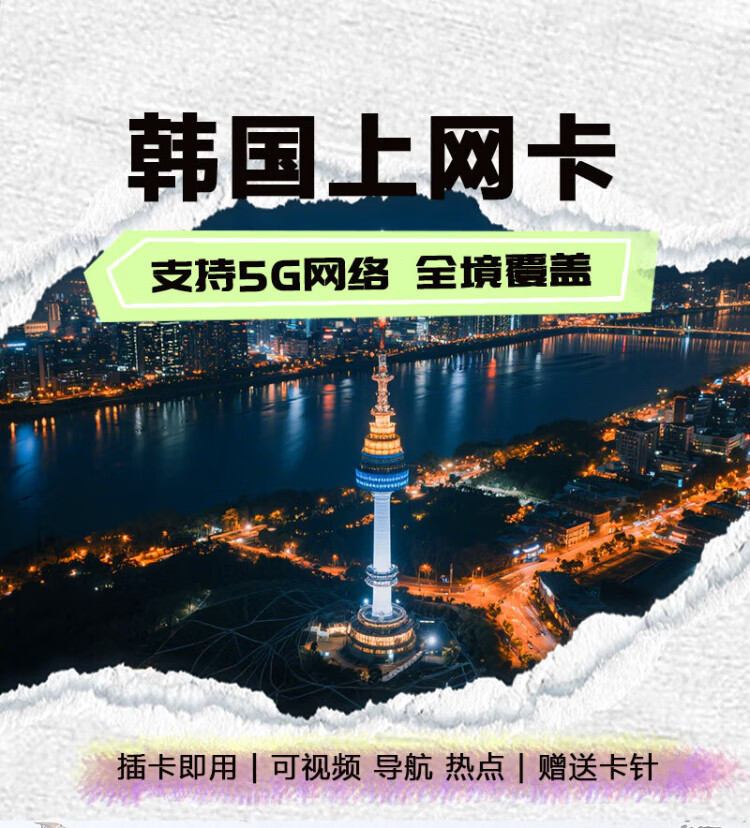 Jingdong Travel's outbound travel to South Korea high-speed Internet card data card 1GB per day for 7 days 5G/4G coverage throughout the country