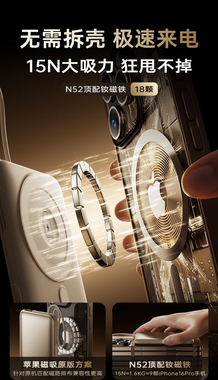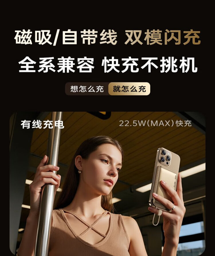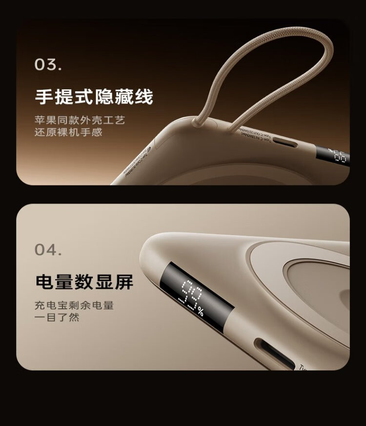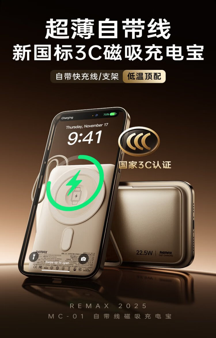 Remax Ruiliang 3C certified Apple power bank with built-in cable 22.5W ice fast charging version丨Magsafe magnetic power bank 10000mAh can be used on airplanes and suitable for iPhone17