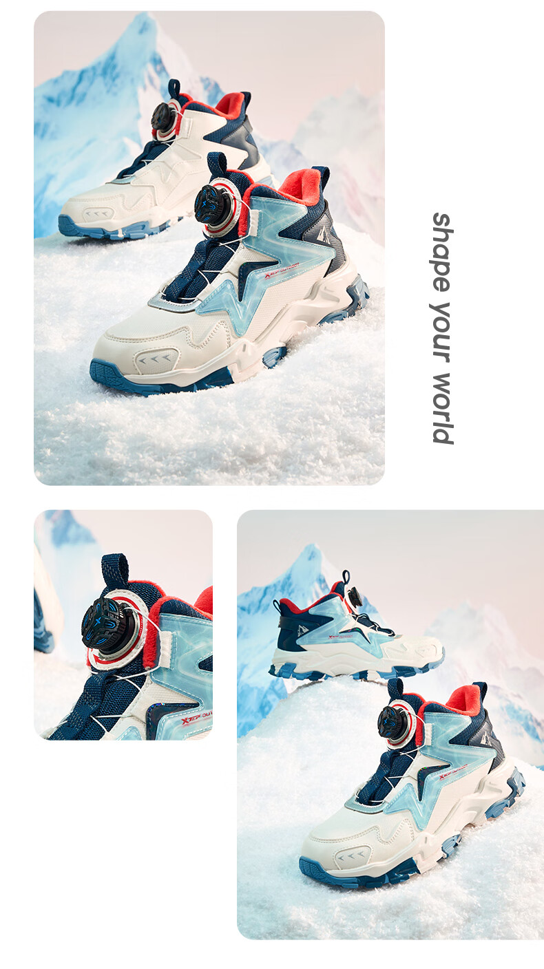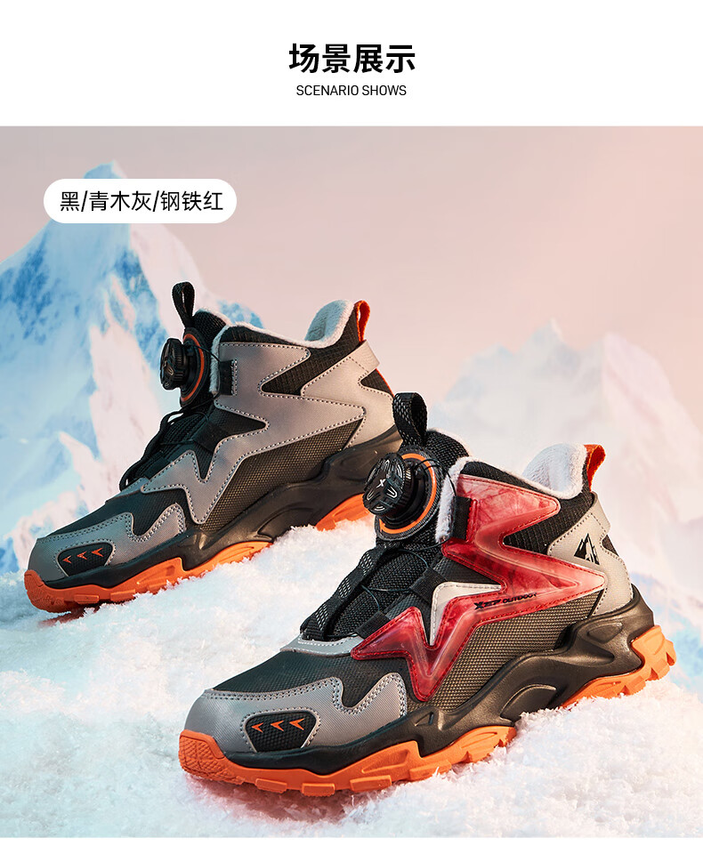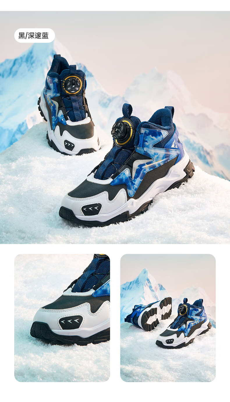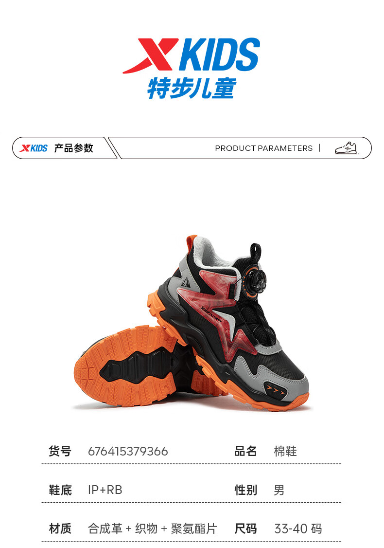XTEP Children's Shoes Lingfeng 2.0 Winter Velvet Cotton Shoes Boys Campus Warm Sports Shoes Black/Dark Blue 37
