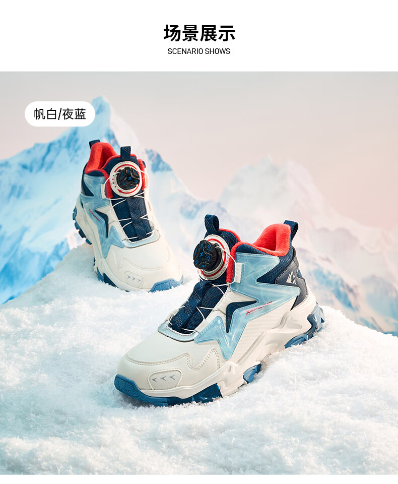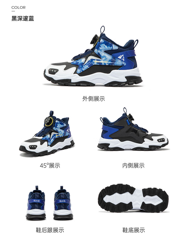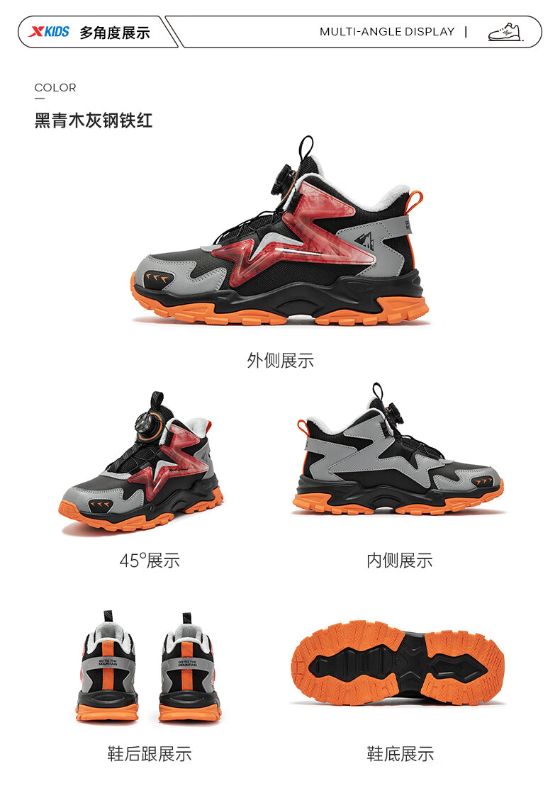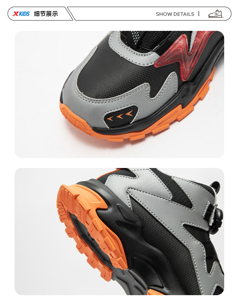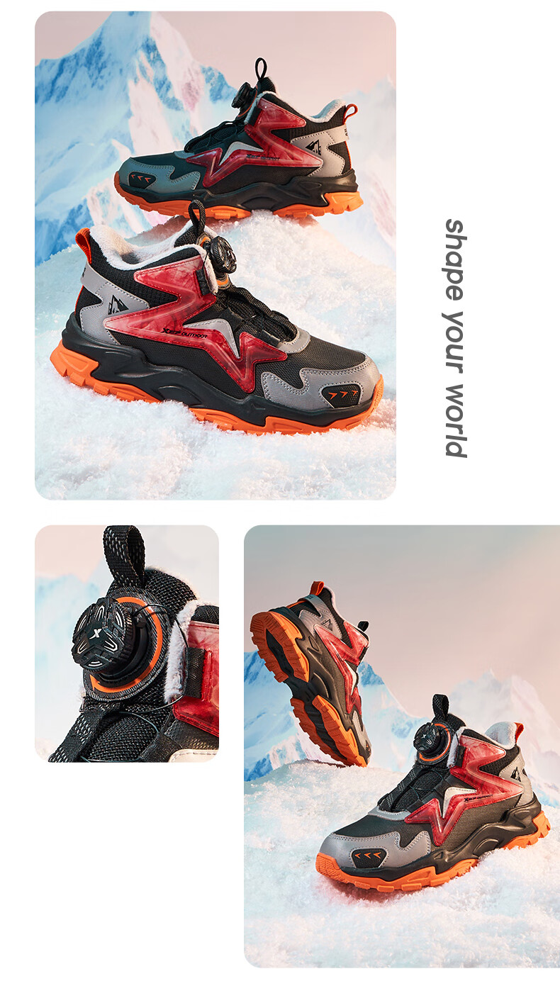 XTEP Children's Shoes Lingfeng 2.0 Winter Velvet Cotton Shoes Boys Campus Warm Sports Shoes Black/Dark Blue 37