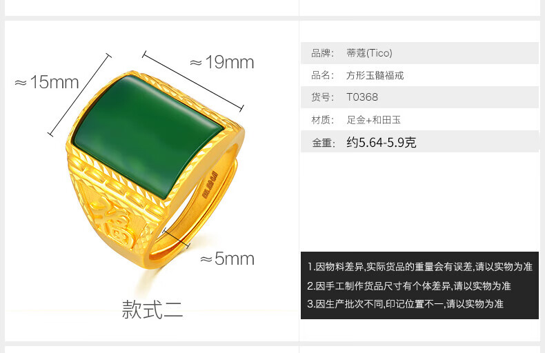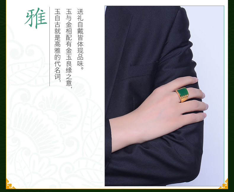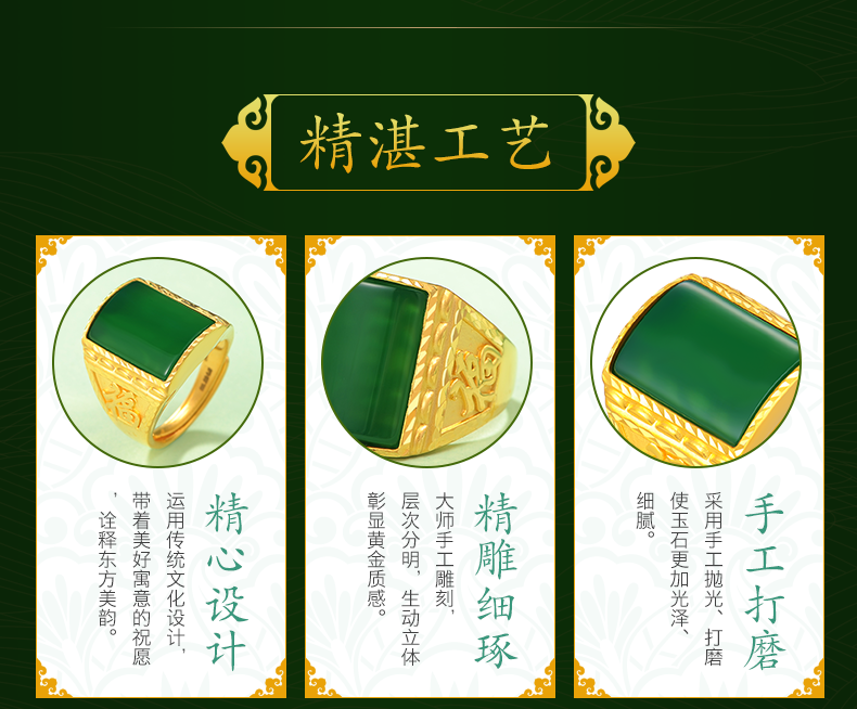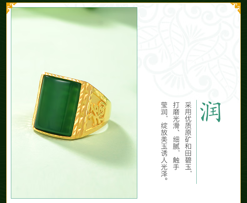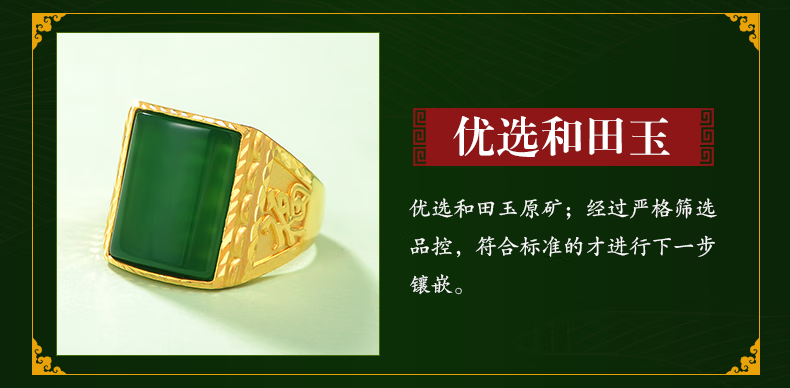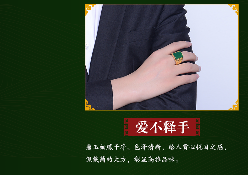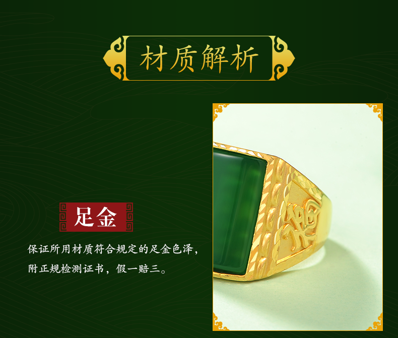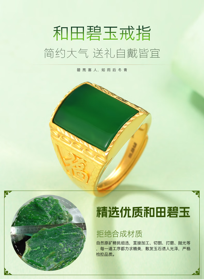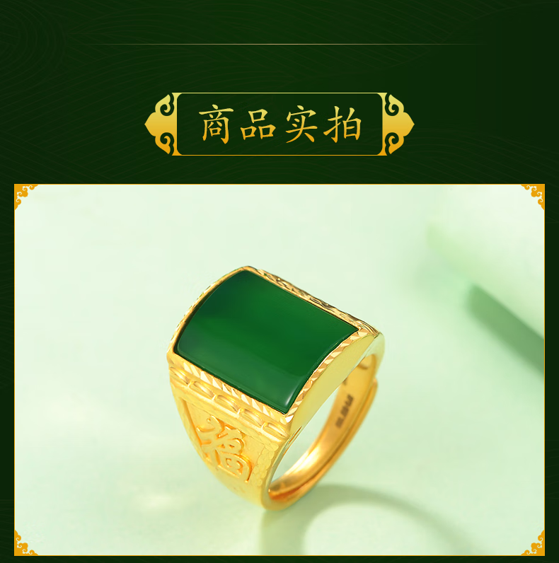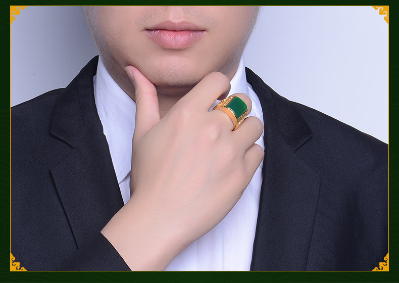 Tico fortune pure gold 999 gold ring men's 3D hard gold inlaid chrysoprase living ring birthday gift