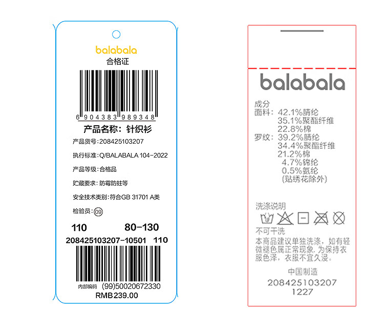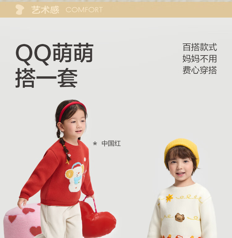 Bala balaOne children's sweater boys and girls 2025 winter sweater baby sweater 208425103207