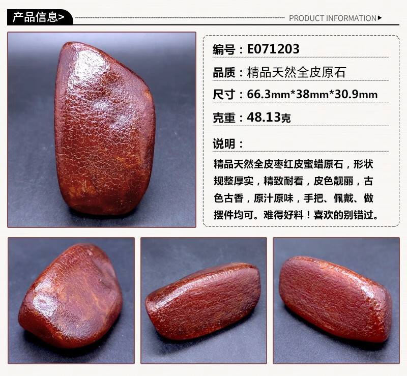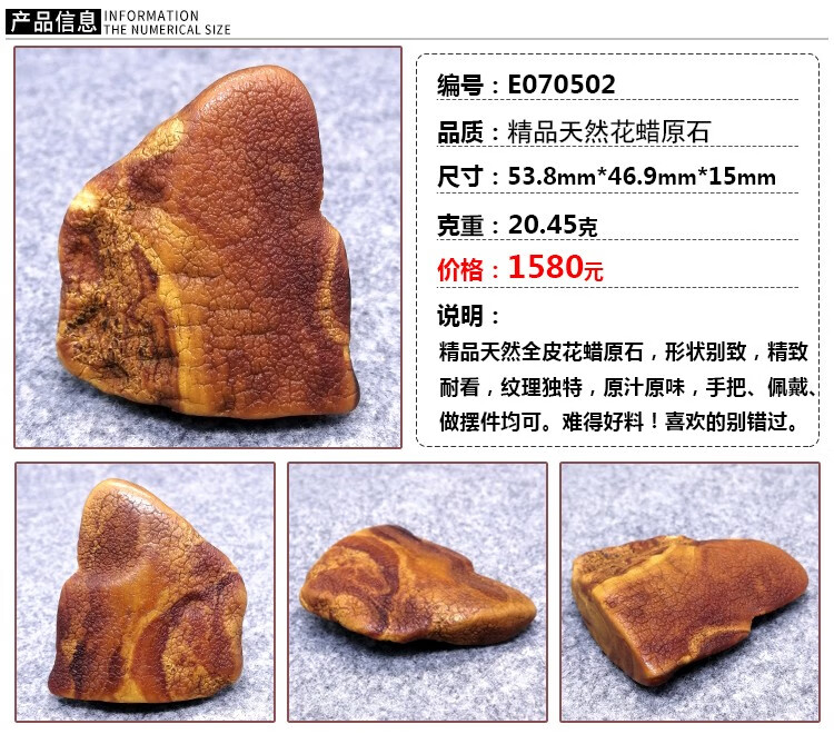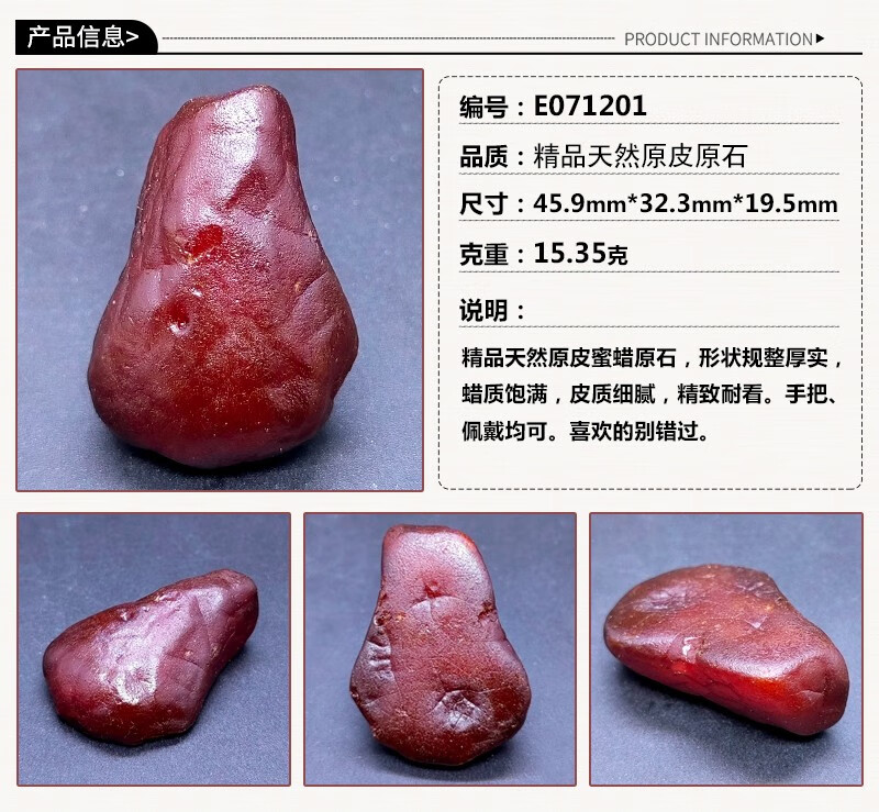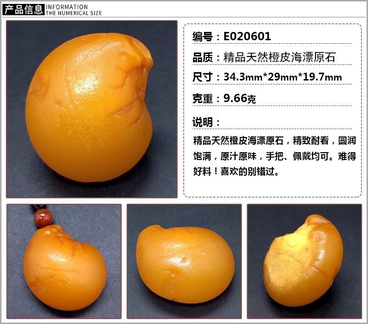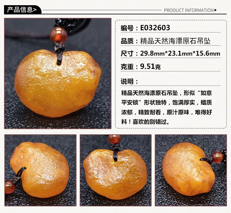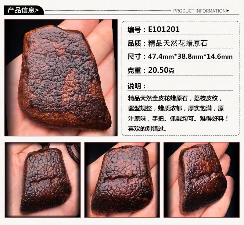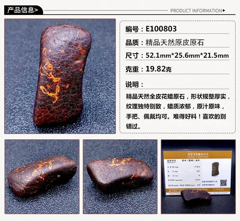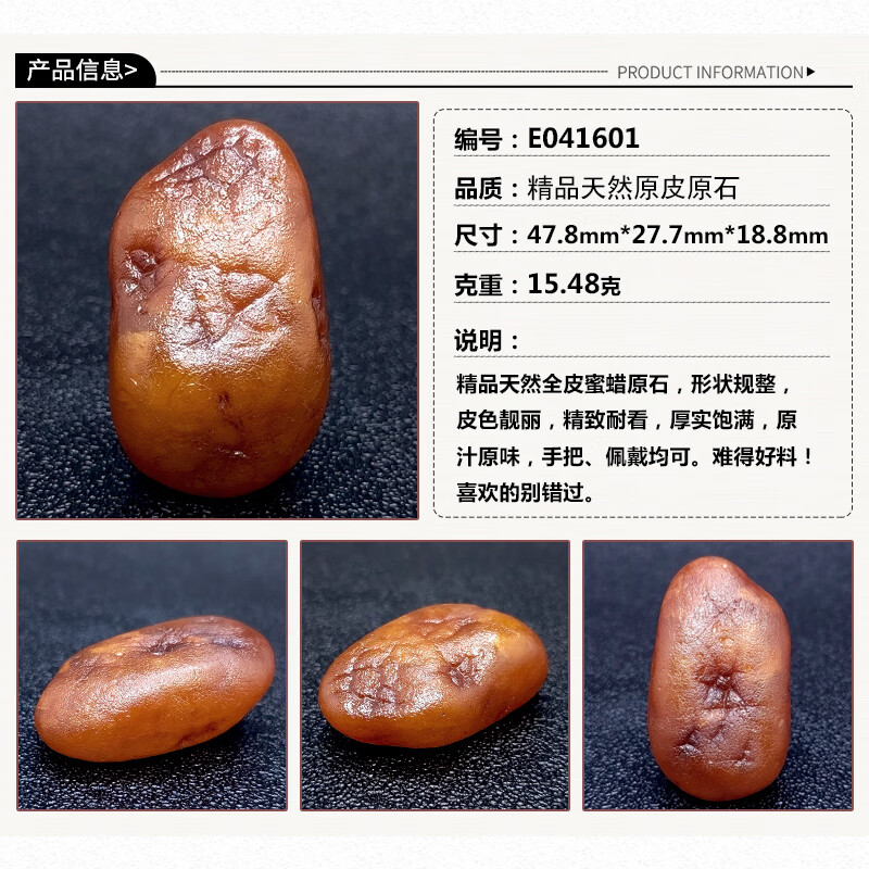 Royal honey natural amber beeswax pendant raw stone raw ore chicken oil yellow flower wax full leather brand hand piece without optimization real shot E100803 19.82 grams (with national inspection certificate)