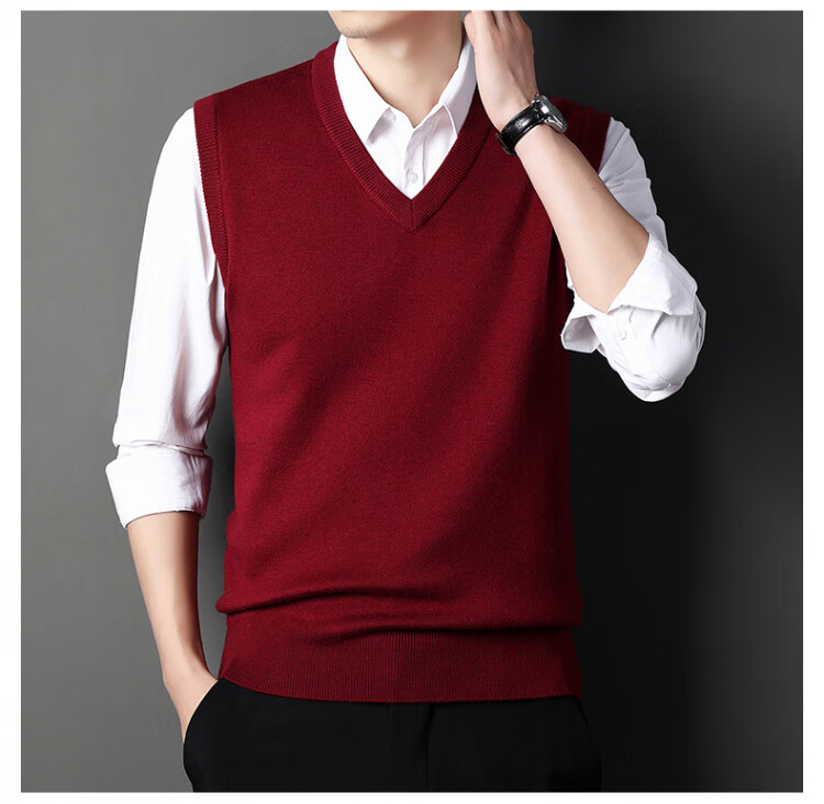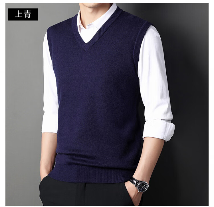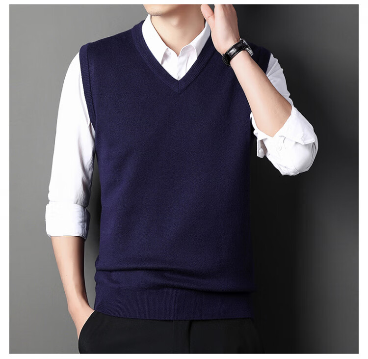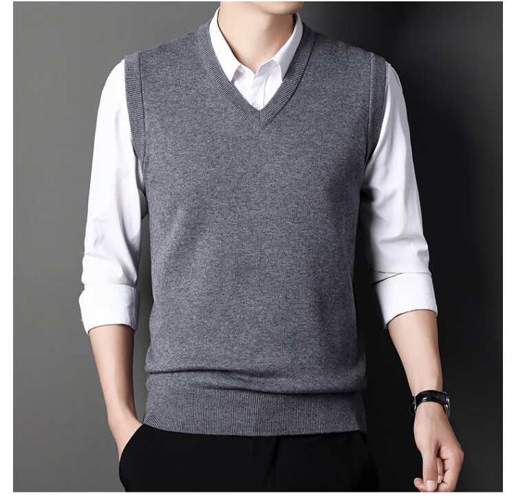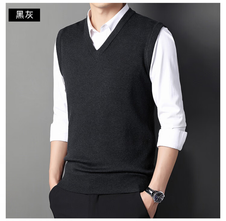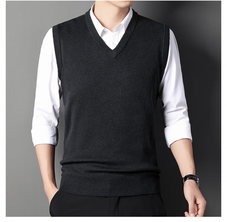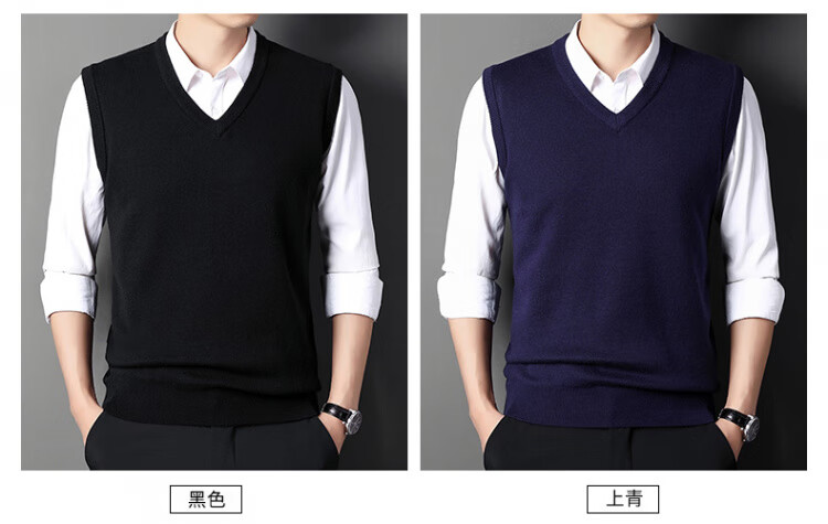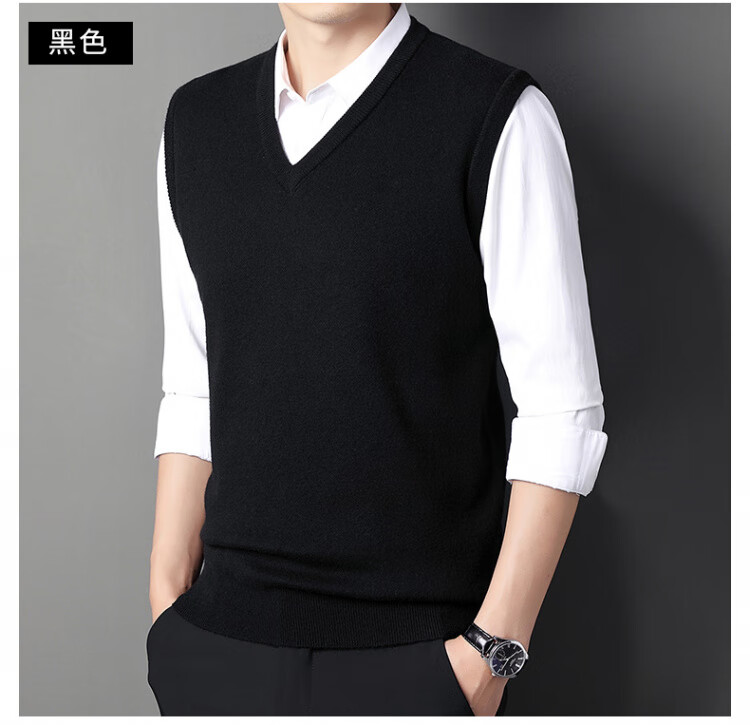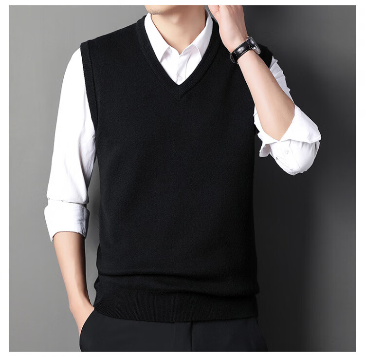 Hengyuanxiang Pure Wool Sweater Men's Vest Men's Autumn and Winter V-neck Thick Knitted Waistcoat Vest Sweater Men Black XL
