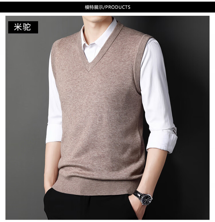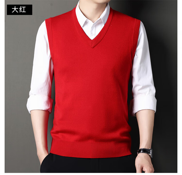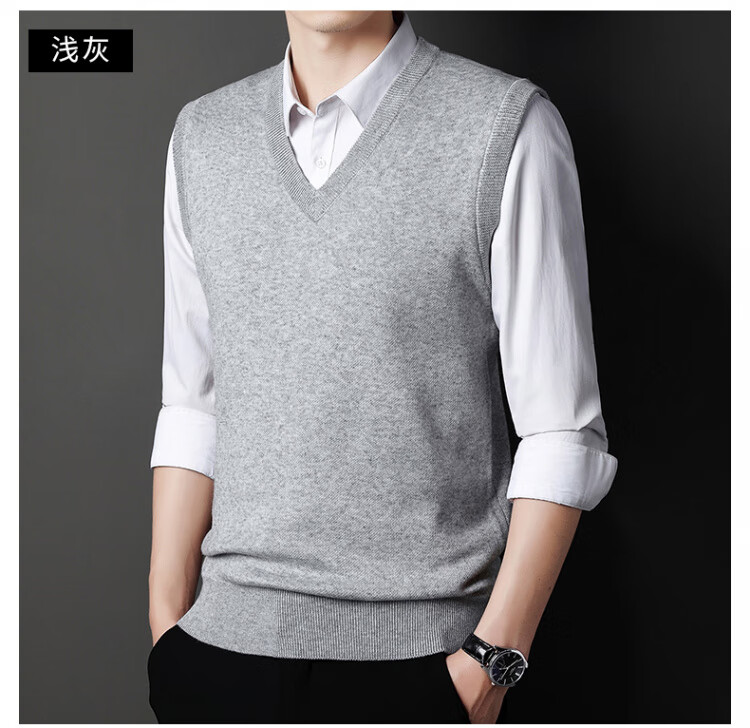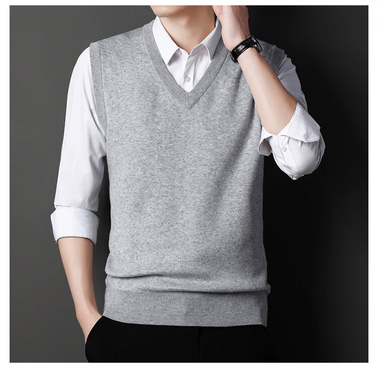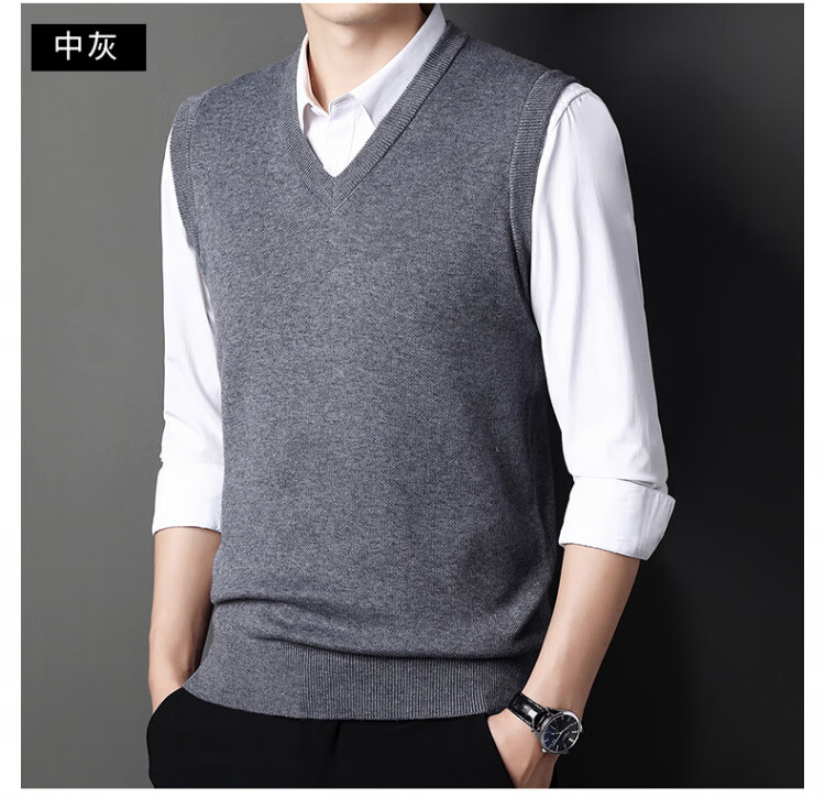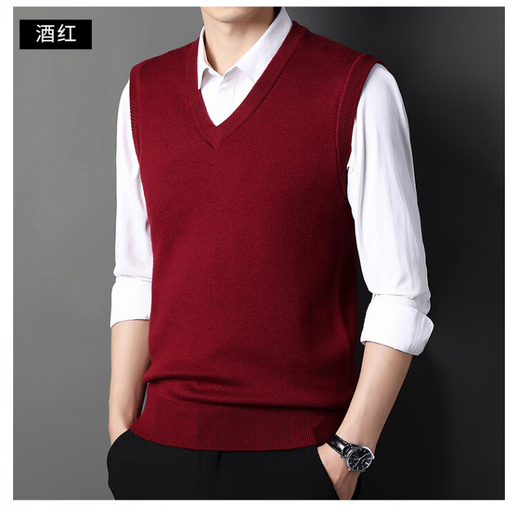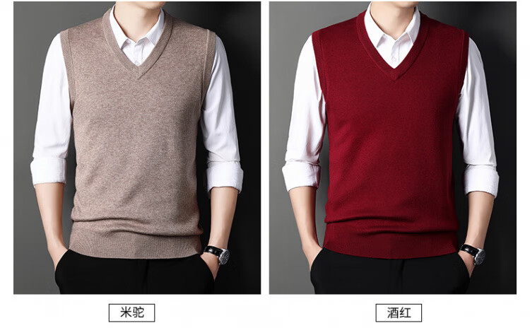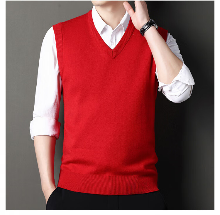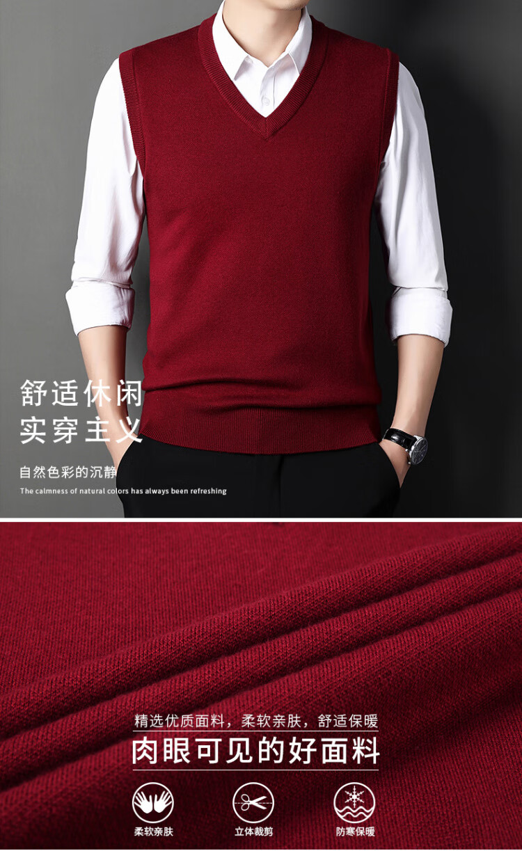 Hengyuanxiang Pure Wool Sweater Men's Vest Men's Autumn and Winter V-neck Thick Knitted Waistcoat Vest Sweater Men Black XL