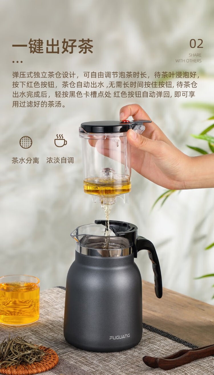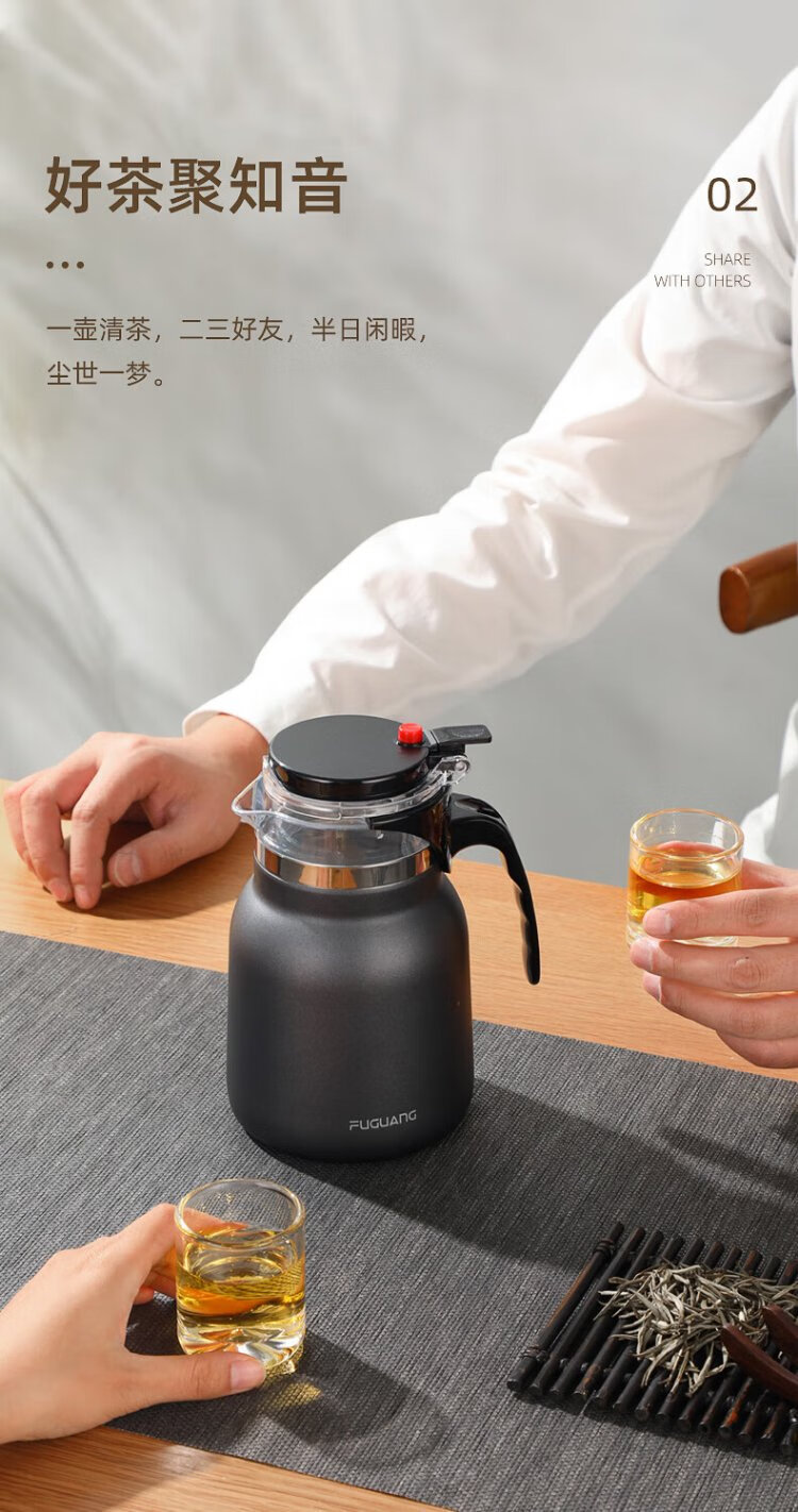 Fuguang stuffy teapot 304 stainless steel insulation teapot stewing tea water separator large capacity old white tea stewing tea
