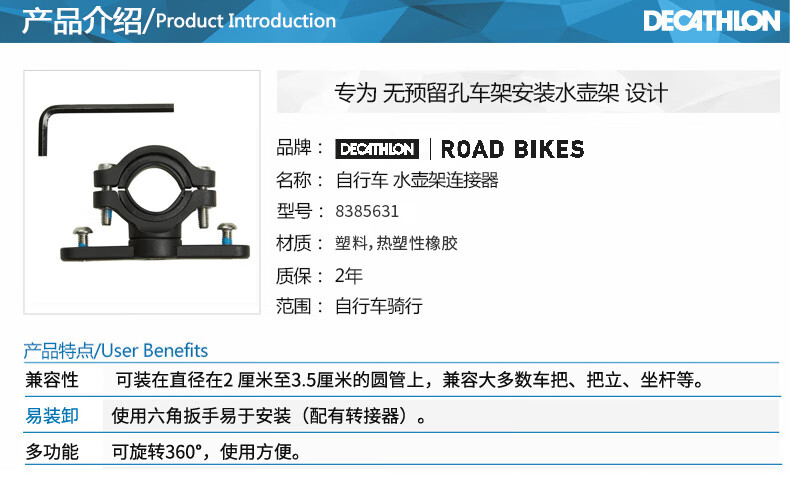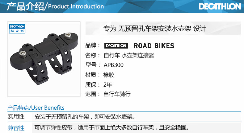 Decathlon Bicycle Accessories Water Bottle Cage Connector Adapter Road Mountain Cycling APB300 Easy to Install Soft Shell Water Bottle Cage