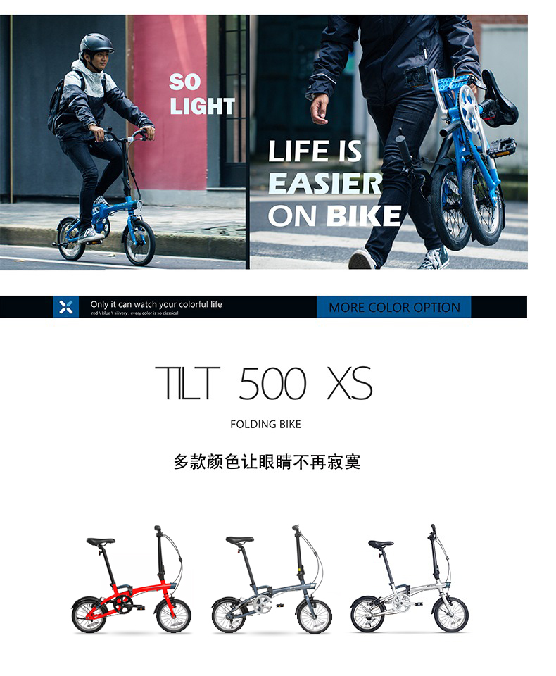 Decathlon 14-inch folding bicycle, casual commuting bicycle for men and women, light, comfortable, fast-opening, student OVB1, silver gray 14 inches