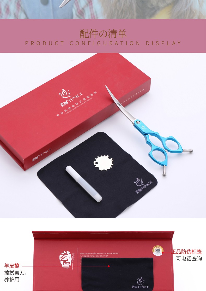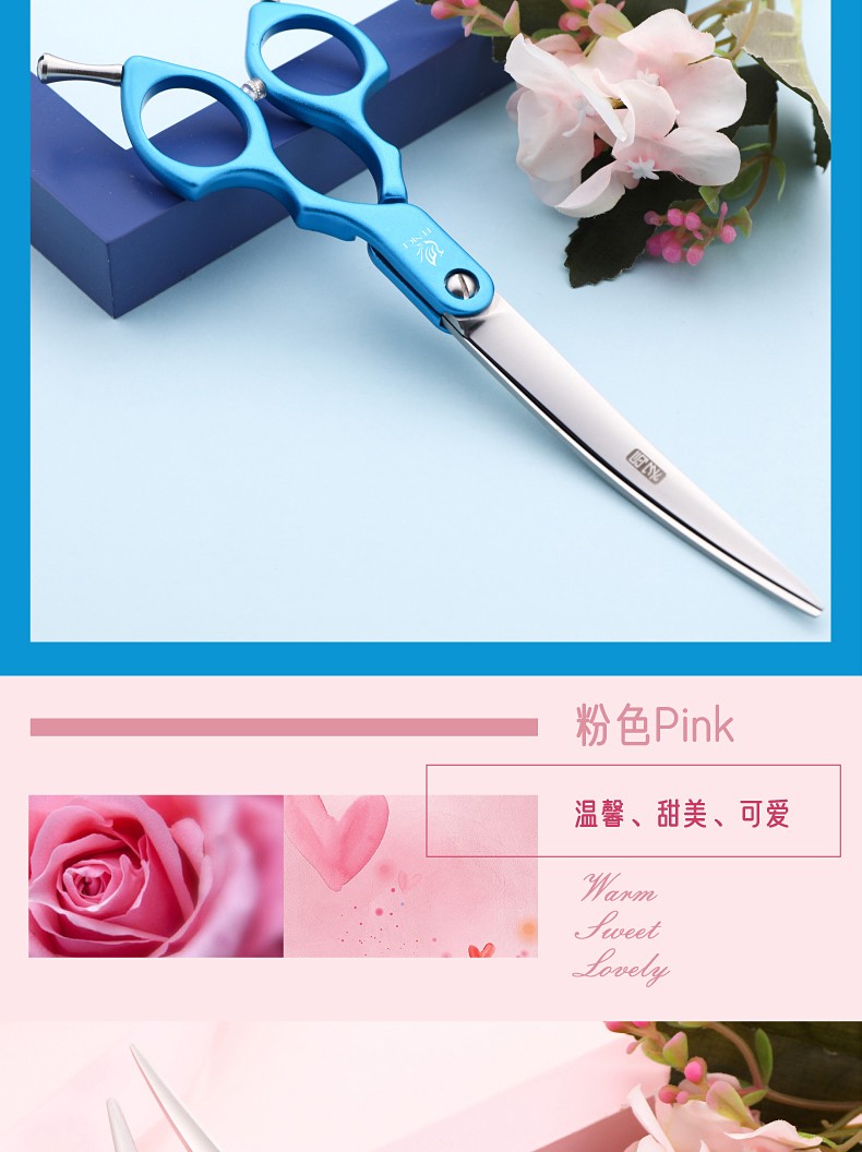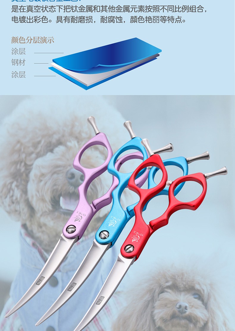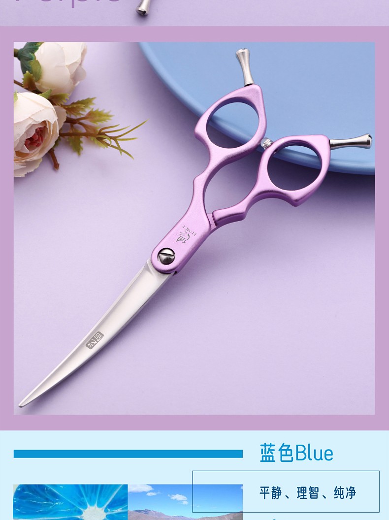 Xuanniao professional pet scissors curved scissors Teddy Pomeranian dog grooming and finishing tool 6 inches 6.5 inches 6 inches curved scissors blue
