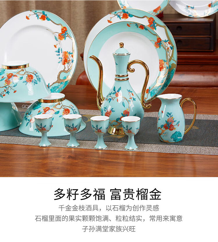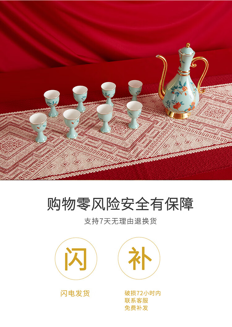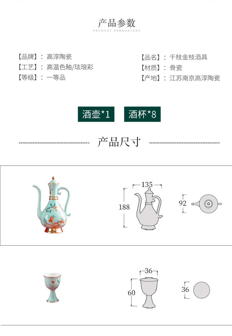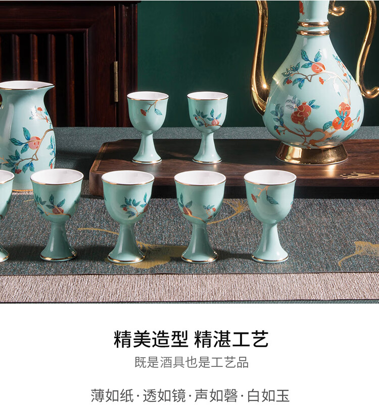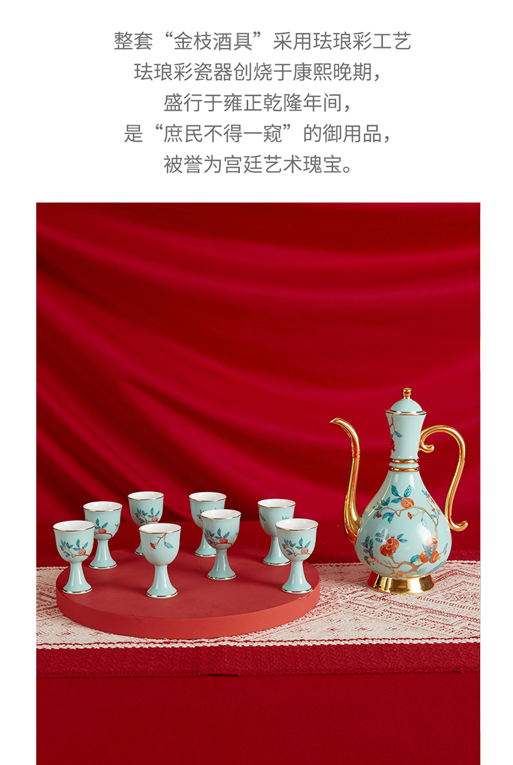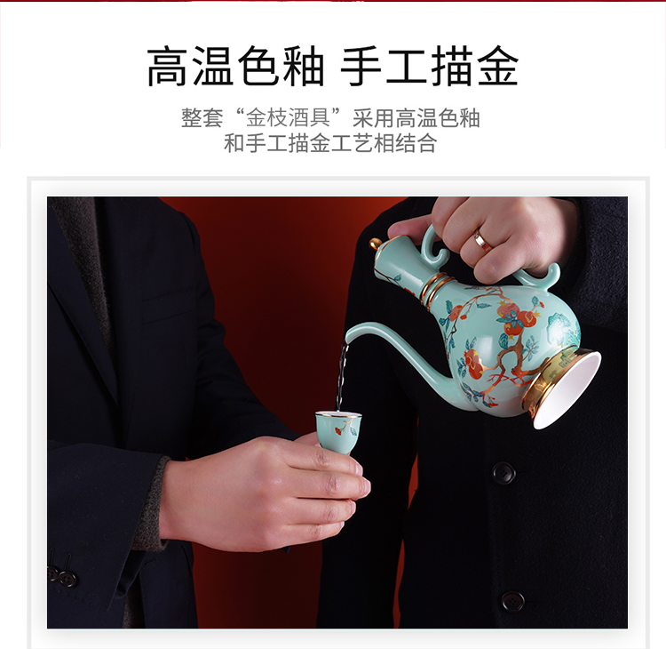 Gao Chun Ceramics Gao Chun Ceramic White Wine Cup Set Household Wineware Wine Flask Sake Yellow Wine Cup Antique Chinese Style High-end Light Luxury Gift Gift Golden Golden Branch Flask 1 Pot 8 Cups