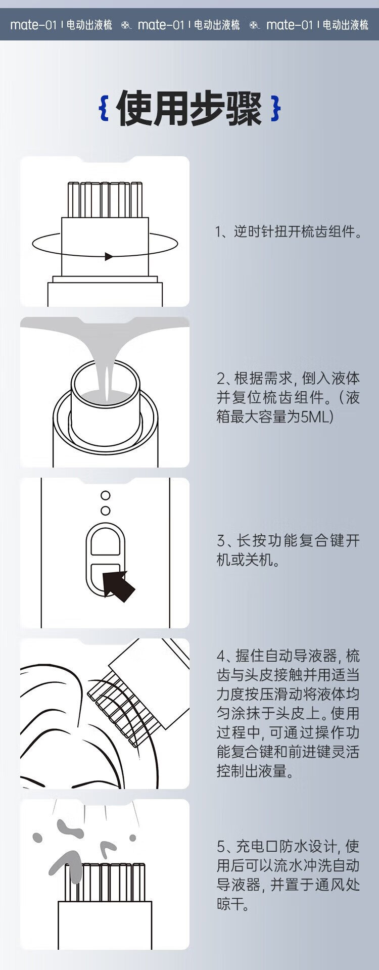 Mriya electric scalp applicator Mino automatic liquid dil tincture administration mriya red light vibrating head liquid guide comb