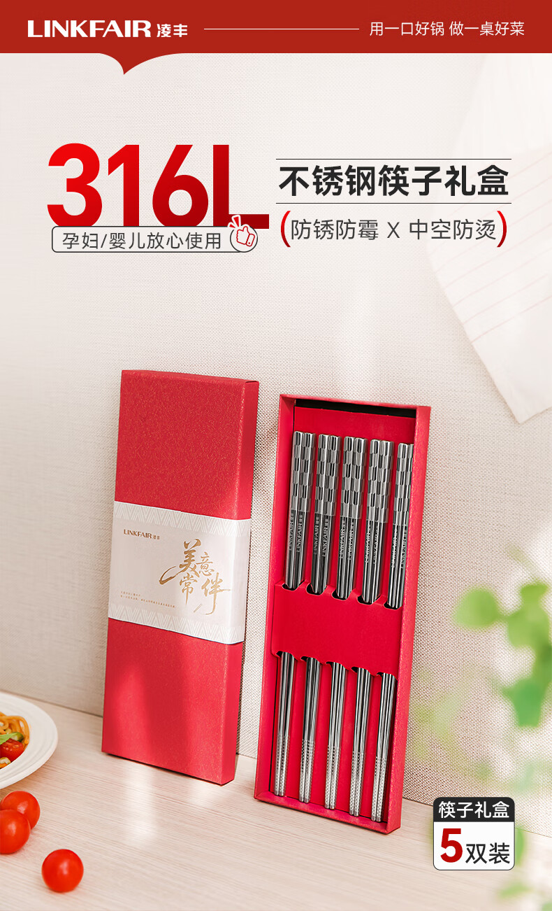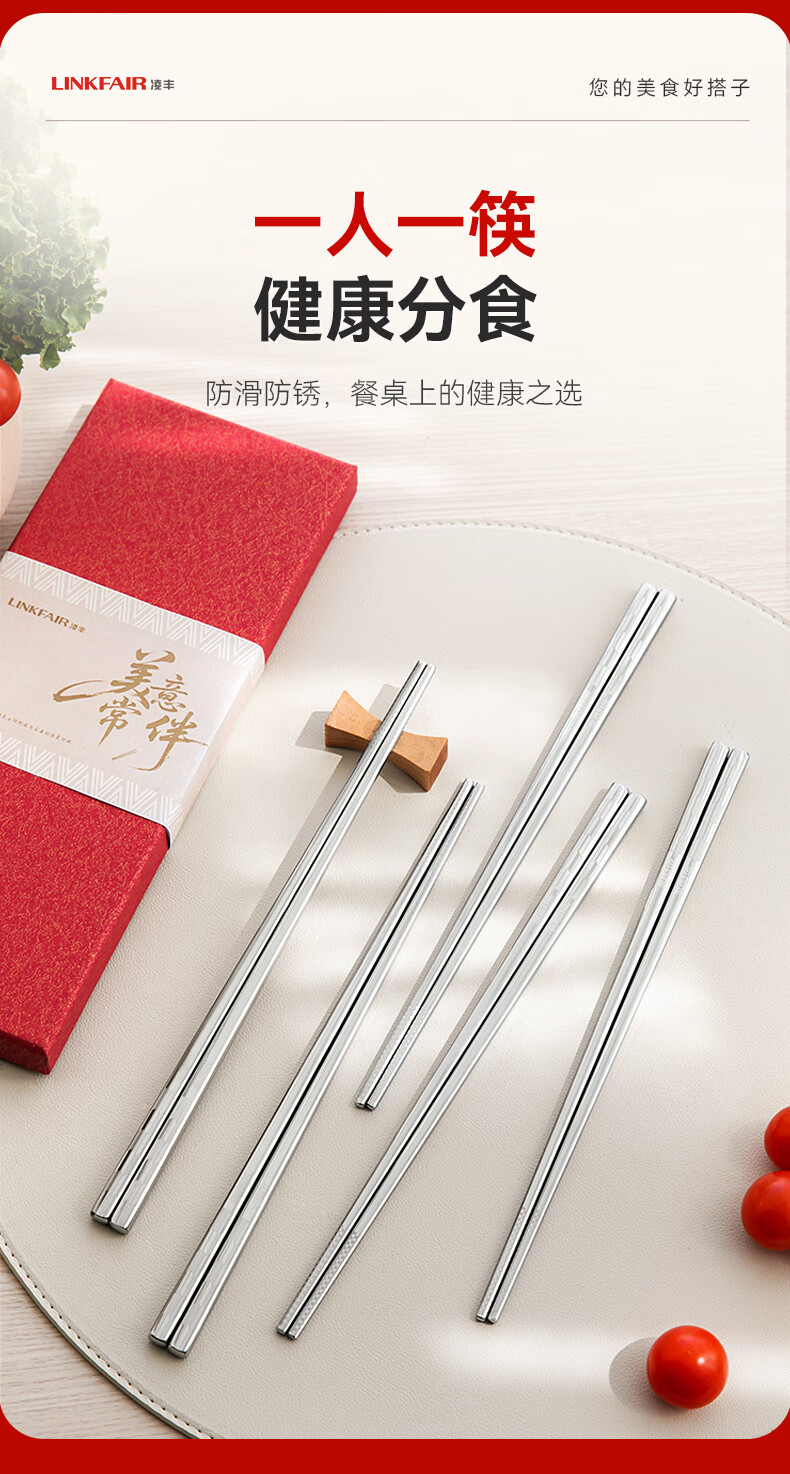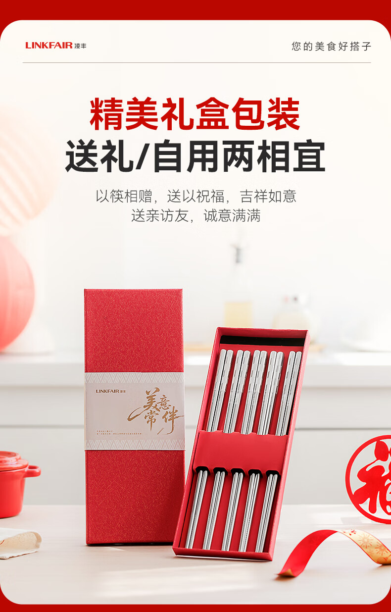凌丰(LINKFAIR)316L不锈钢筷子防滑不易发霉家用筷子套装公筷餐具礼盒乔迁送礼 筷子5双装