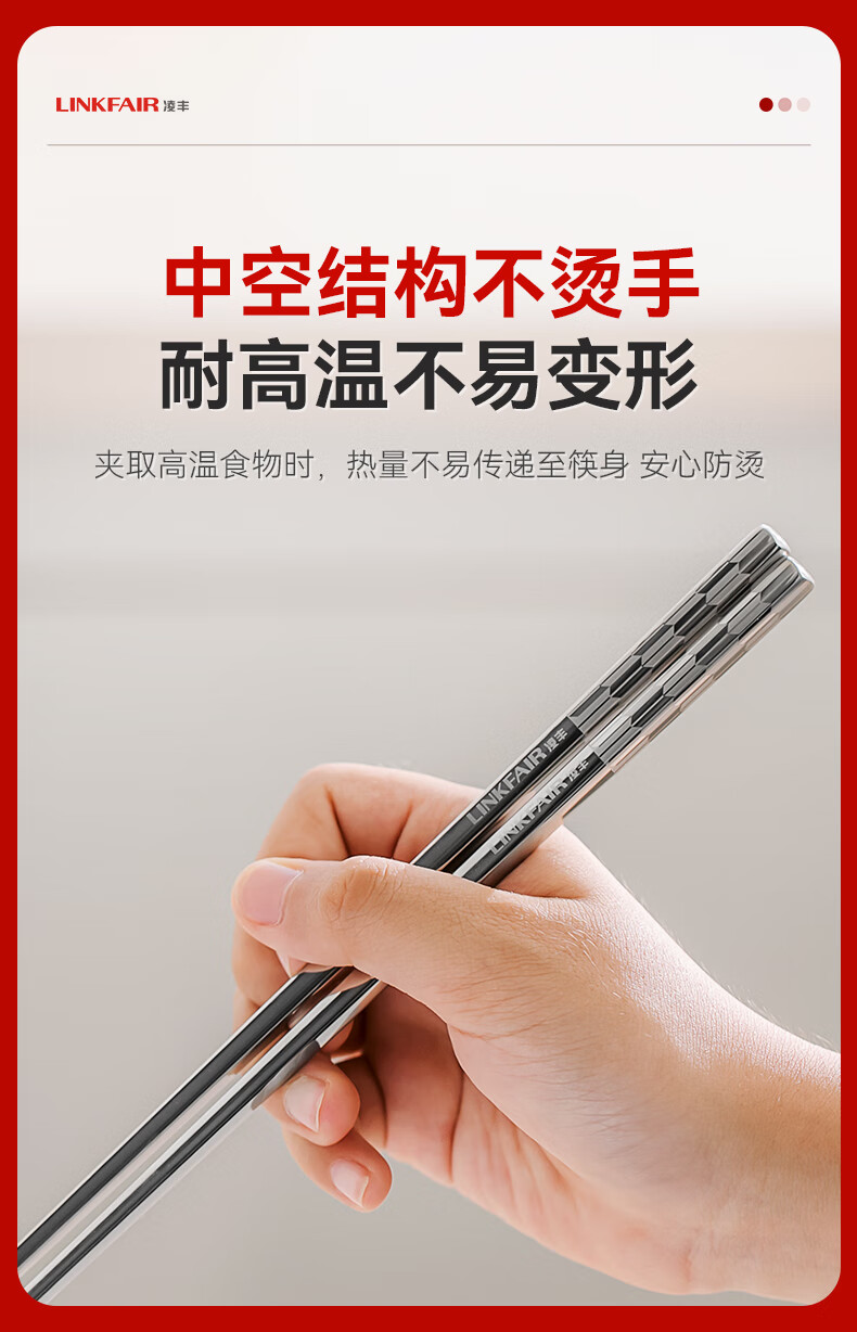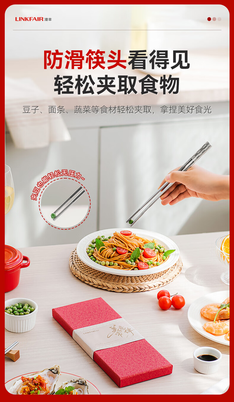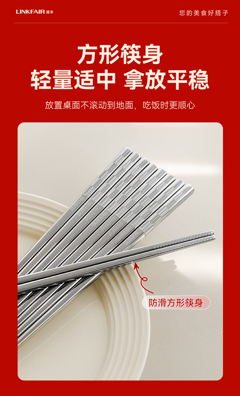 凌丰(LINKFAIR)316L不锈钢筷子防滑不易发霉家用筷子套装公筷餐具礼盒乔迁送礼 筷子5双装