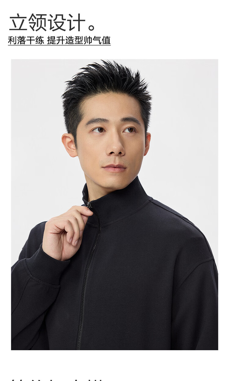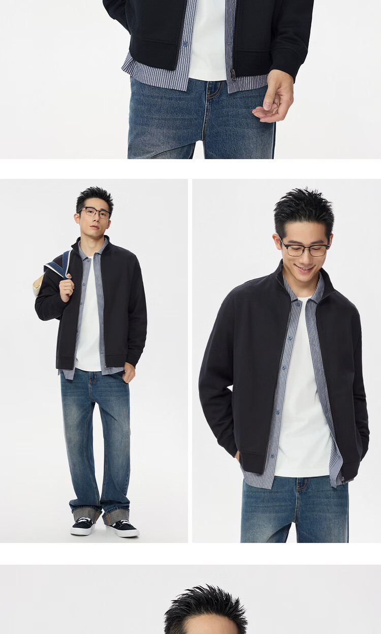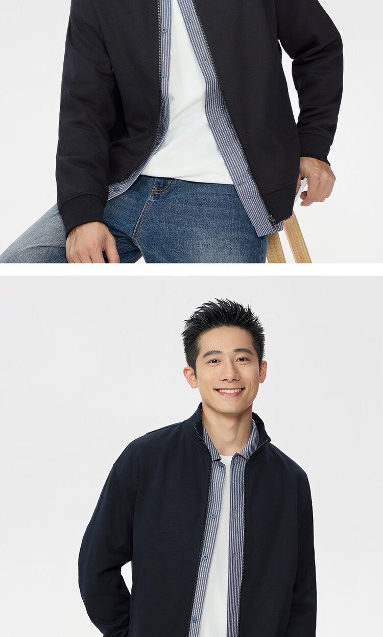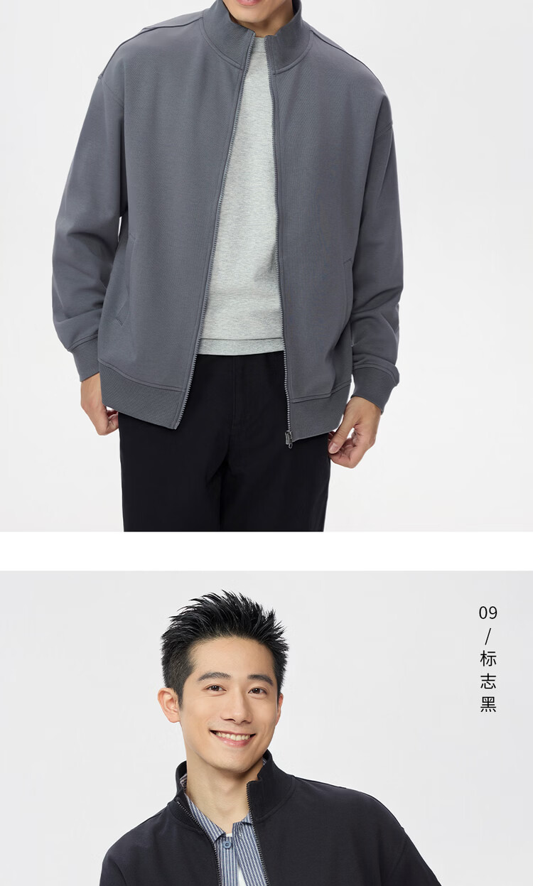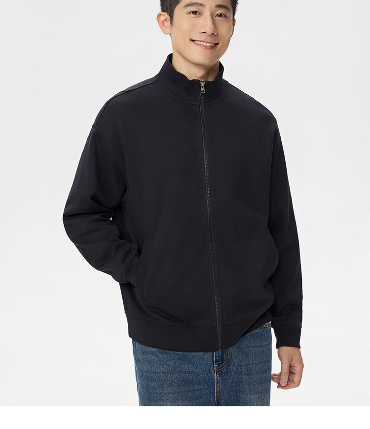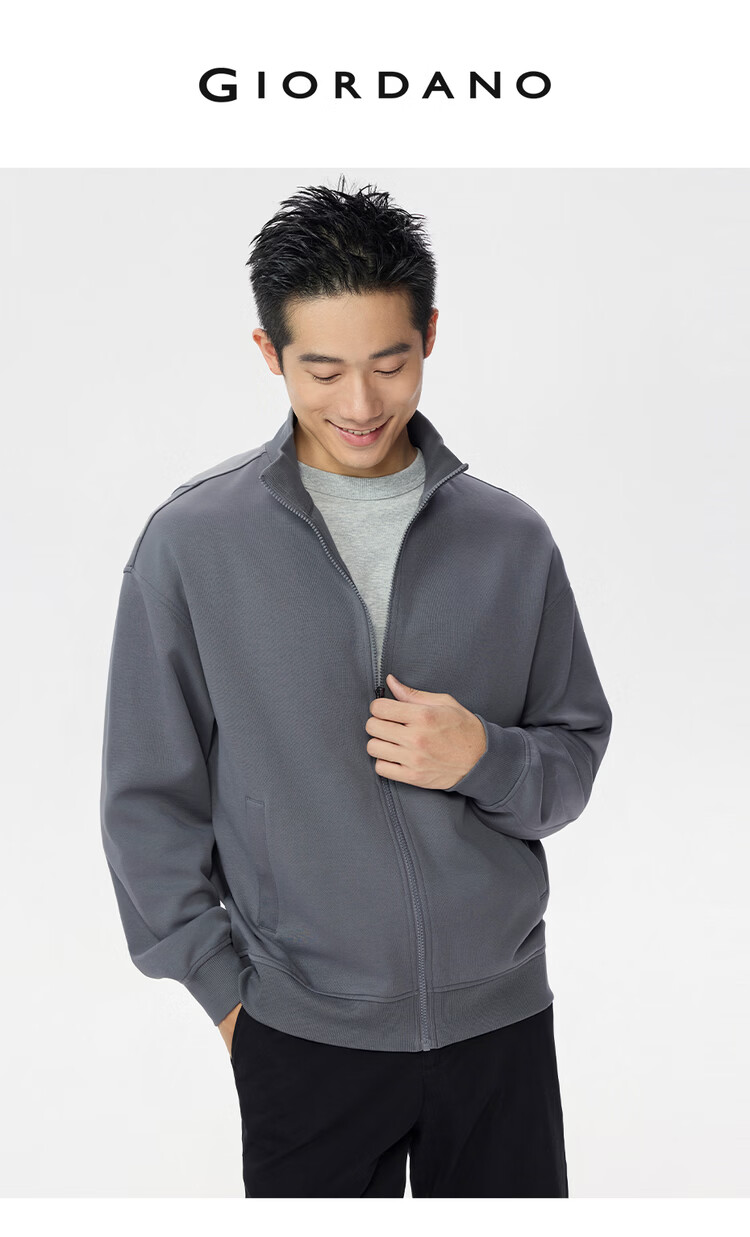 Giordano casual jacket men's spring new double-sided cloth loose stand-up collar zipper sweatshirt jacket for men 01075851