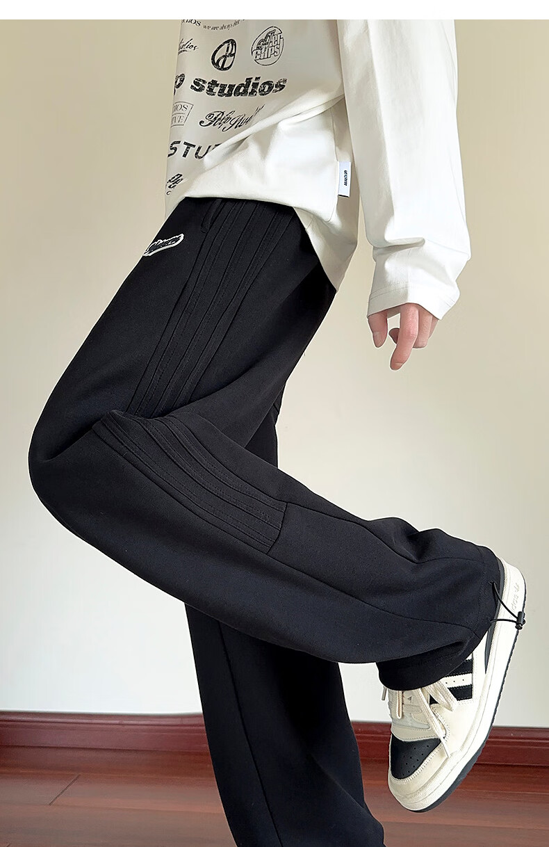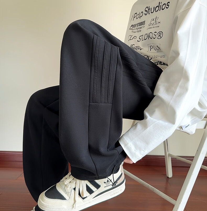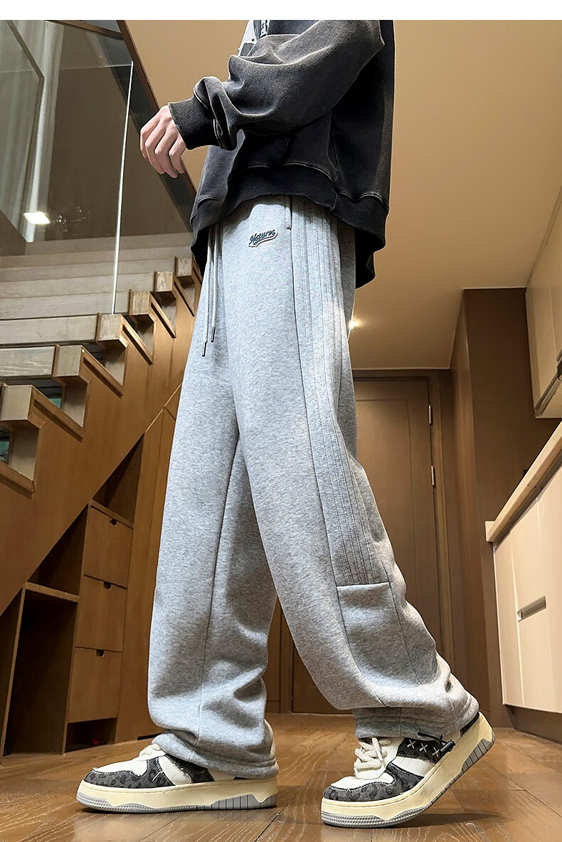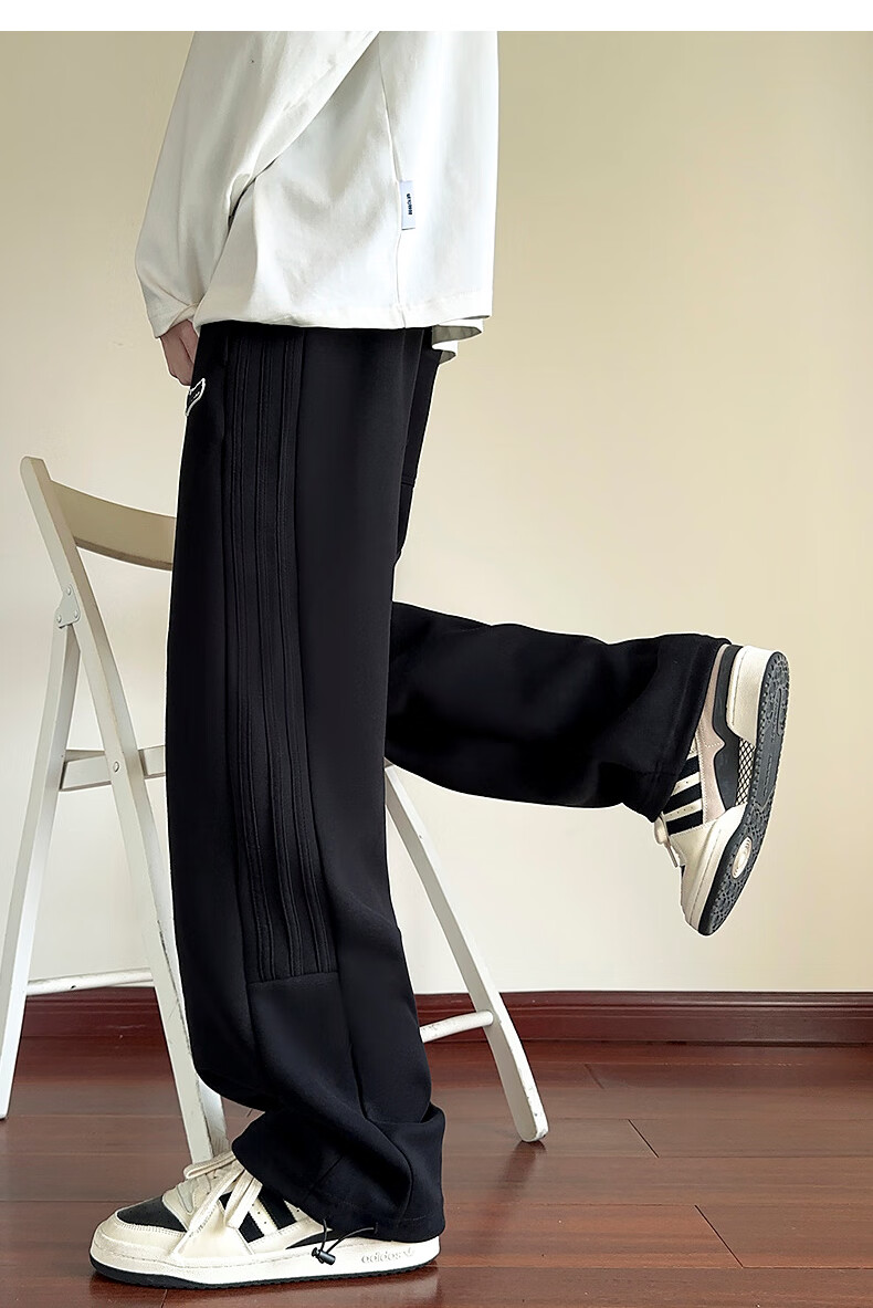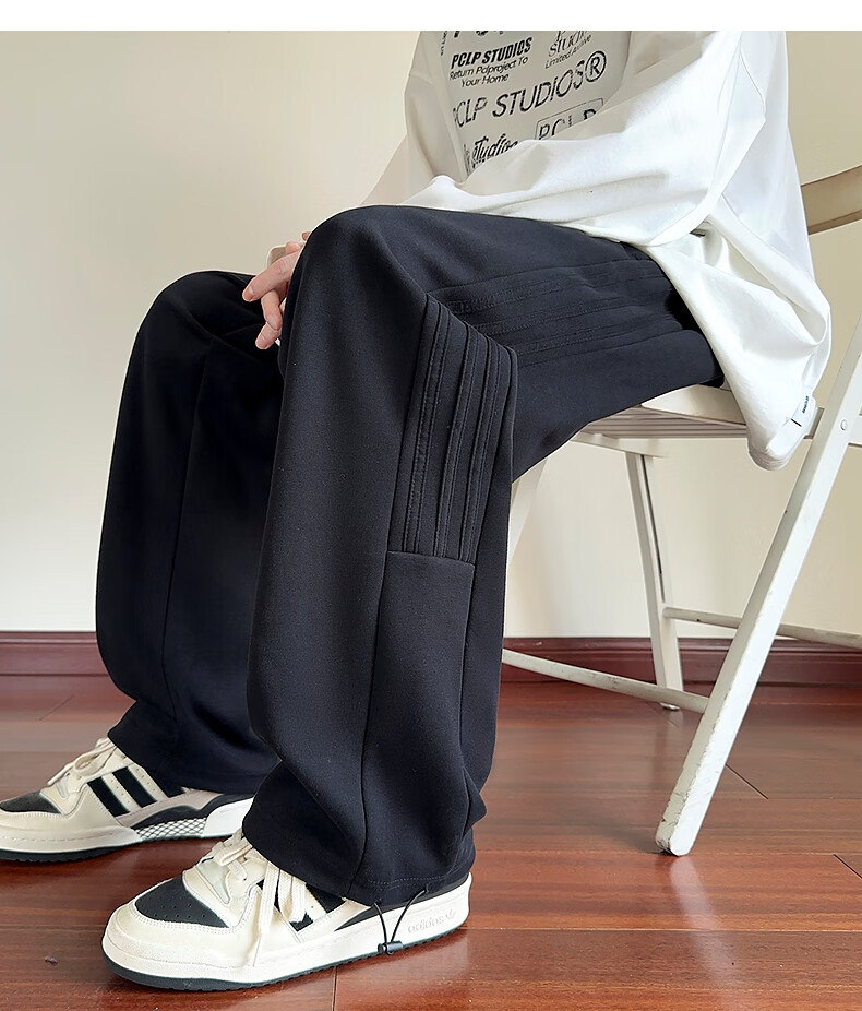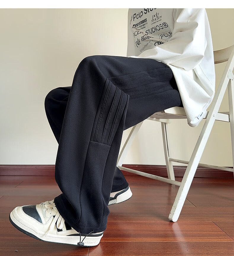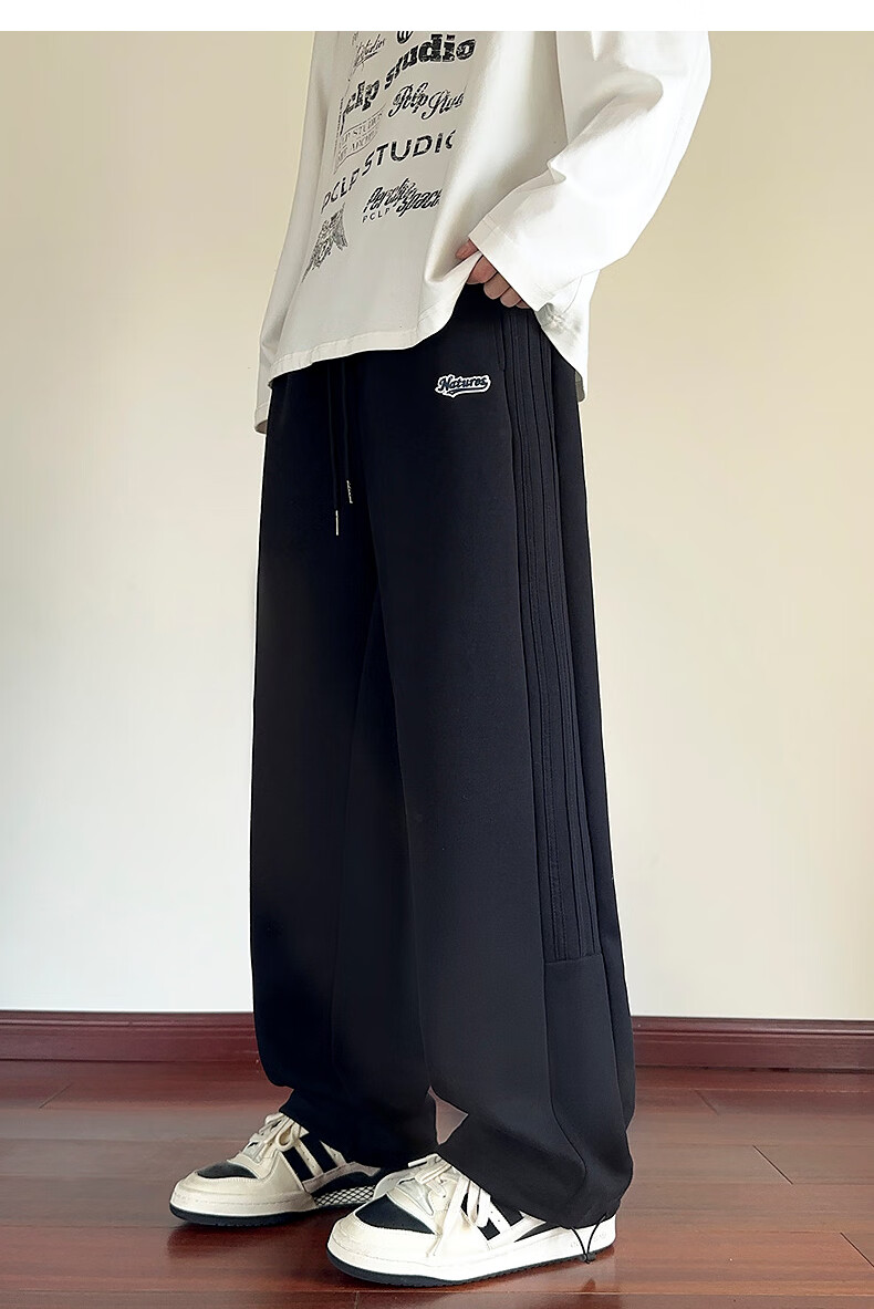 TonLion 2025 autumn and winter men's knitted side webbing loose straight casual trousers