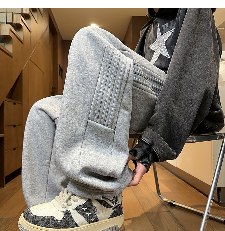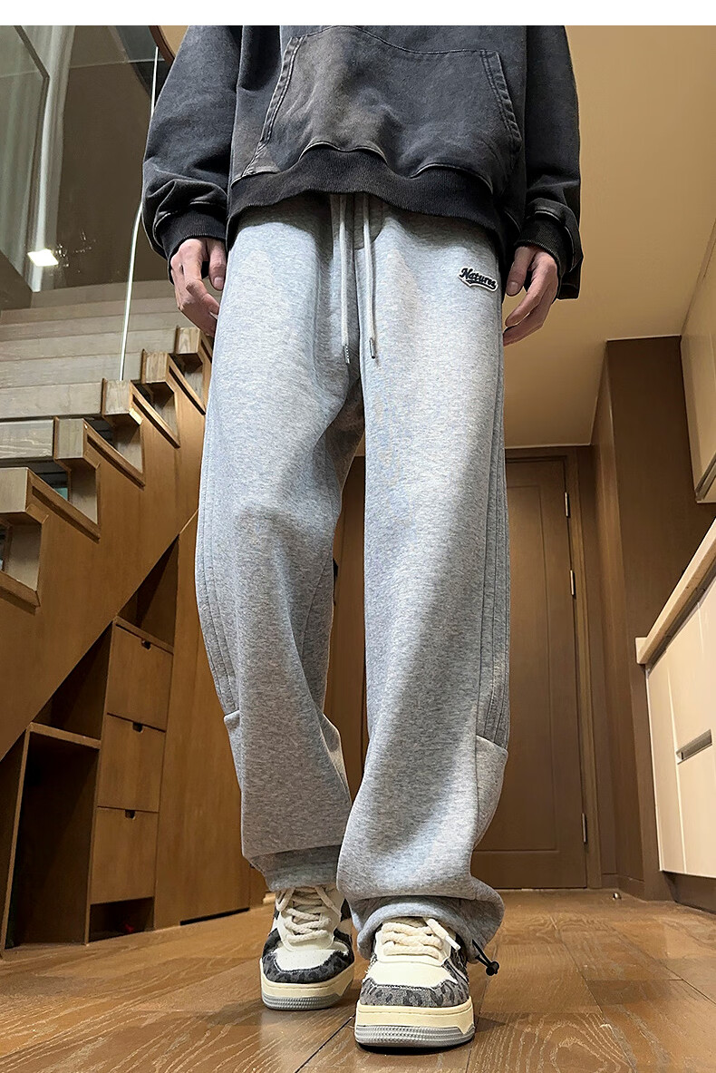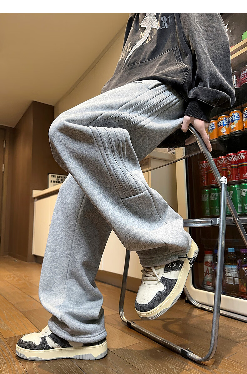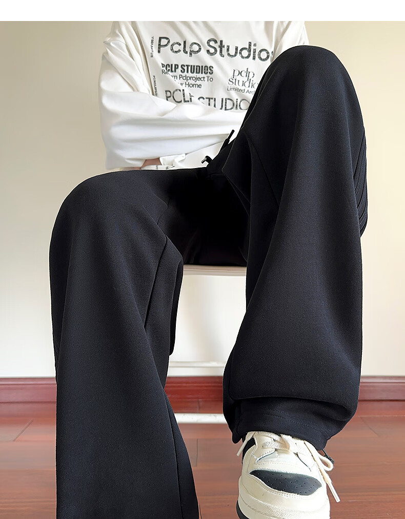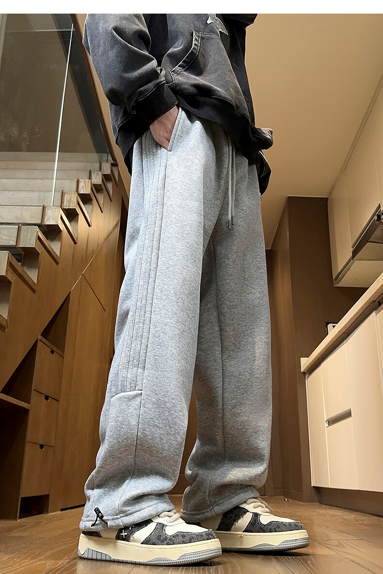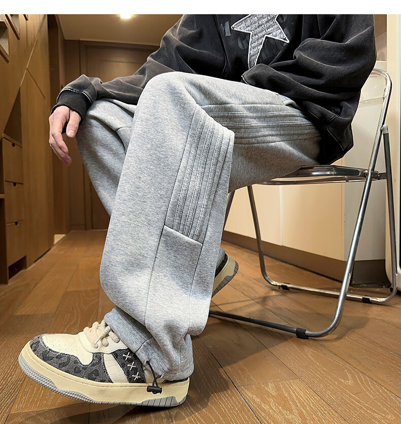 TonLion 2025 autumn and winter men's knitted side webbing loose straight casual trousers
