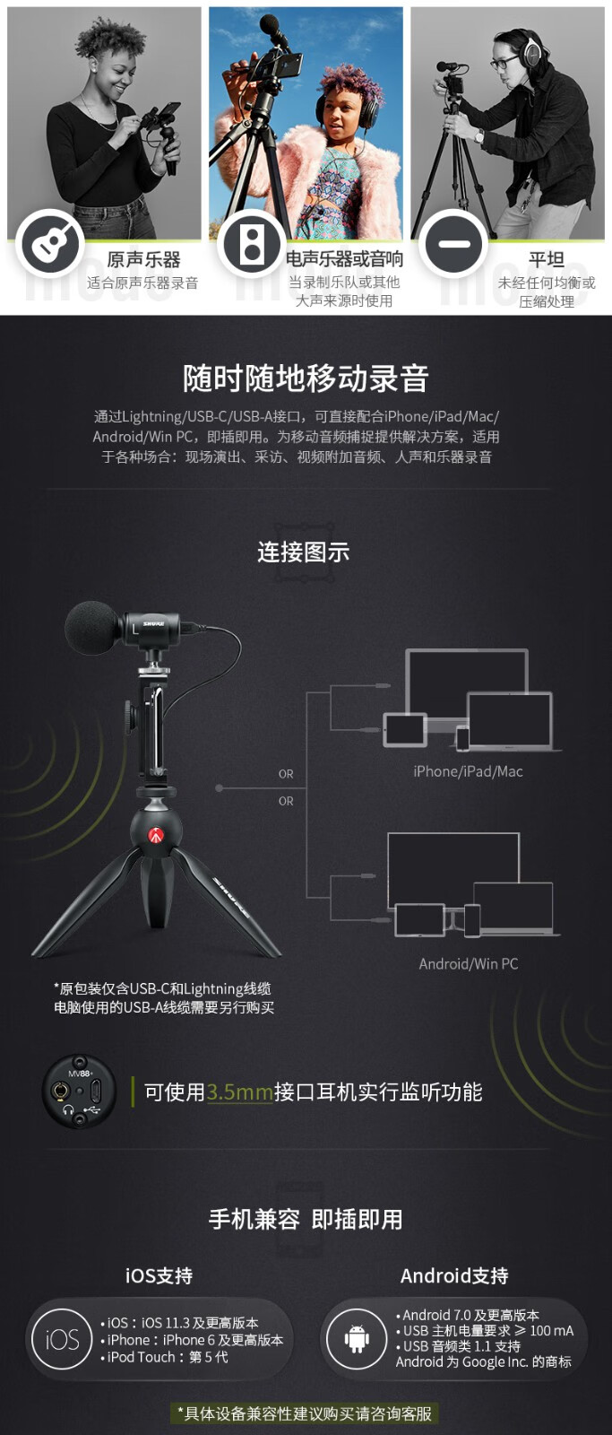 SHURE SHURE is authorized to sell Shure MV88+ video recording kit condenser microphone iOS Android portable karaoke singing recording live broadcast interview microphone MV88+ video recording kit VLOG Apple Android version