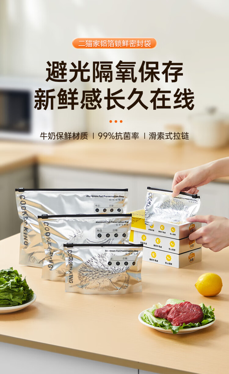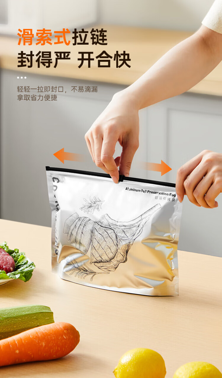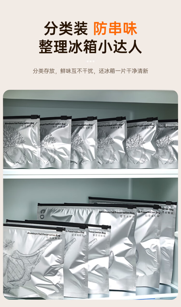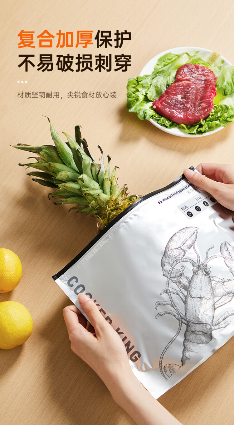 Cui Dahuang aluminum foil fresh-keeping sealed bag antibacterial self-sealing airtight bag thickened and enlarged frozen storage large size 10 pieces