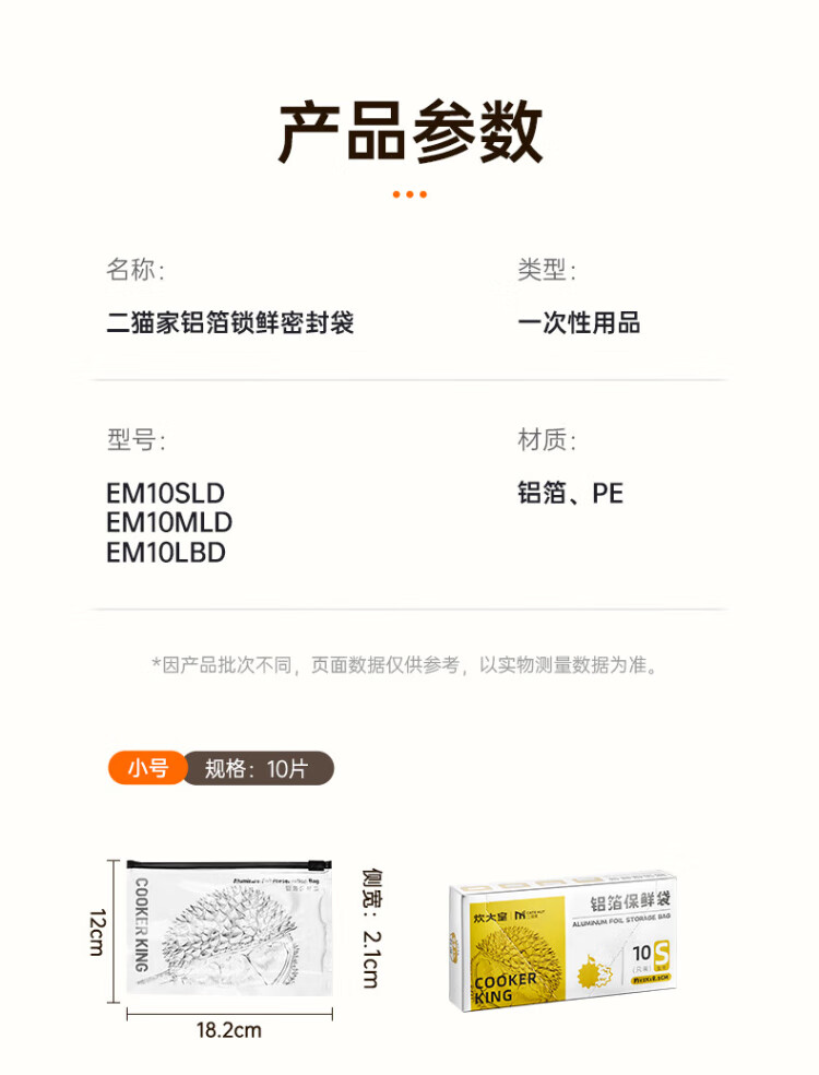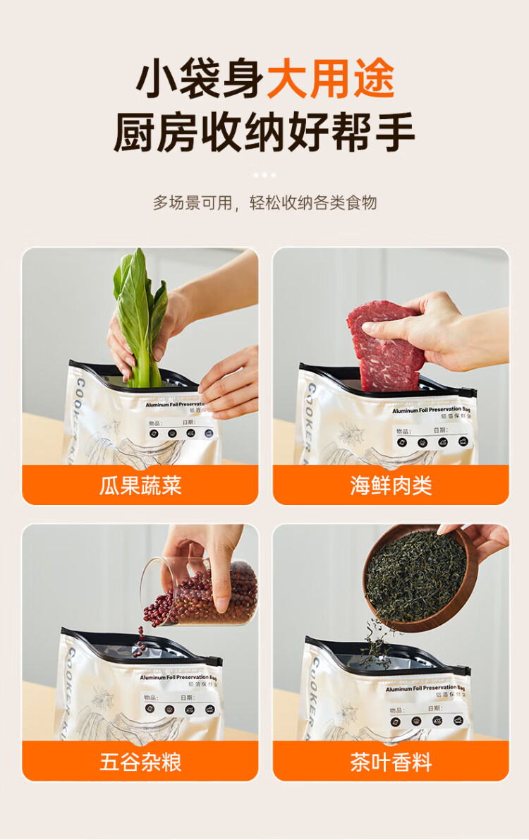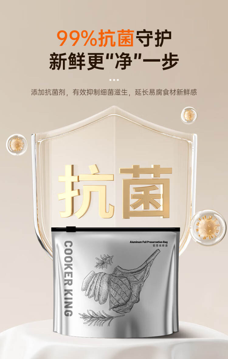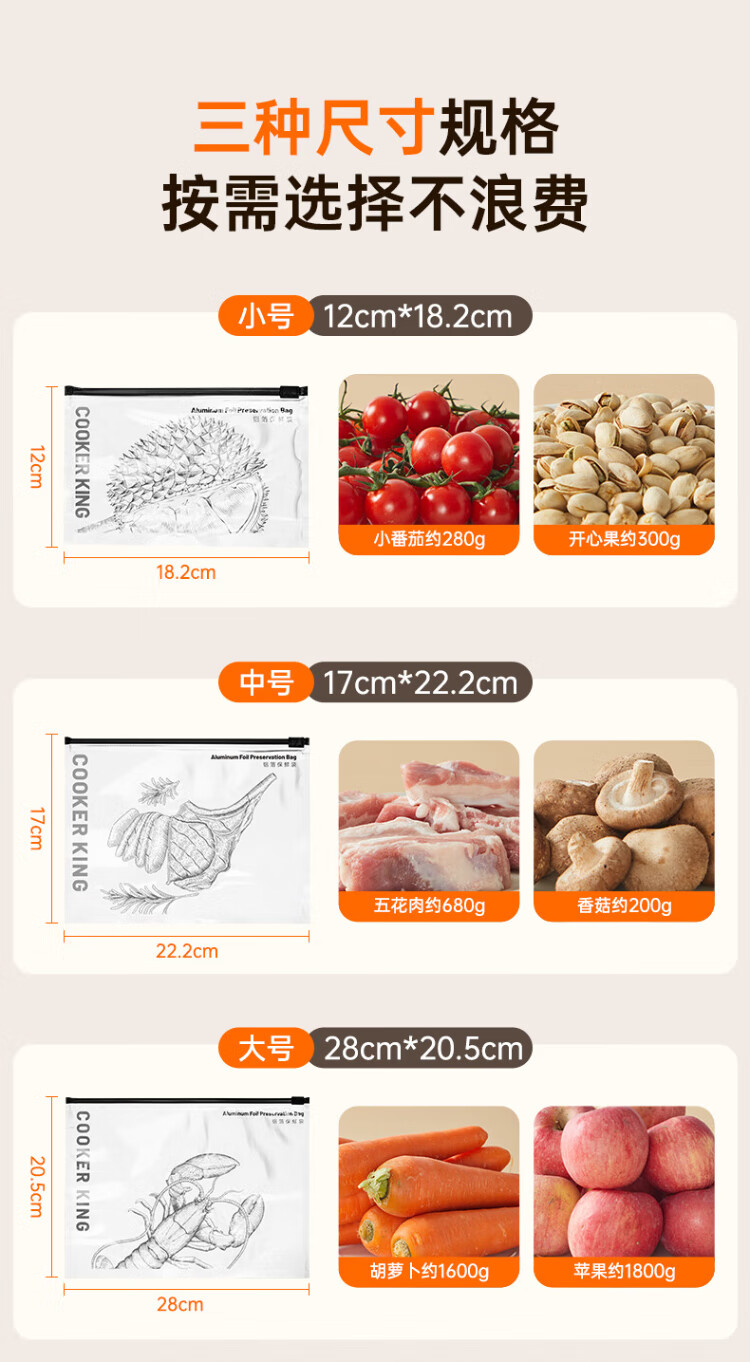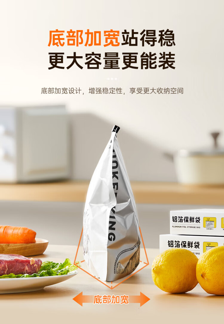 Cui Dahuang aluminum foil fresh-keeping sealed bag antibacterial self-sealing airtight bag thickened and enlarged frozen storage large size 10 pieces