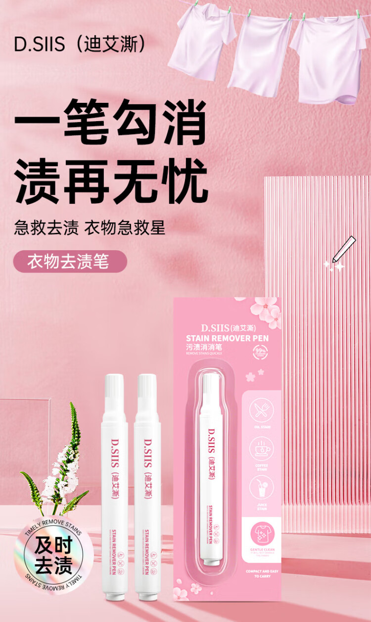 D.SIIS stain removal pen 3-pack stain removal pen to remove oil stains clothes dry cleaning agent portable cleaner