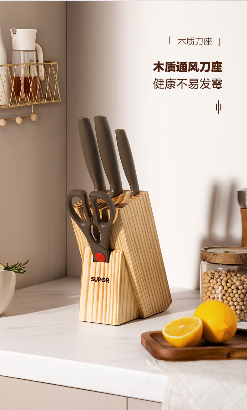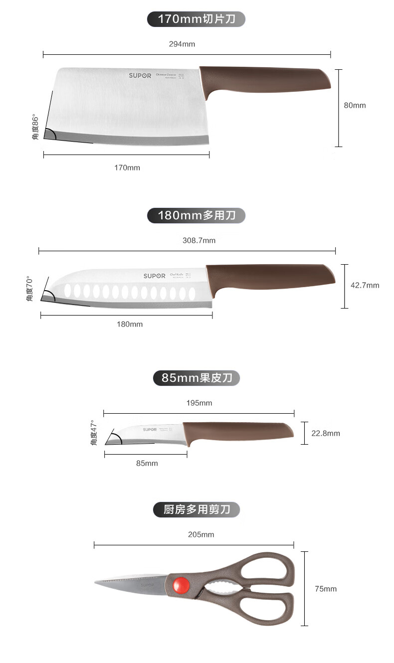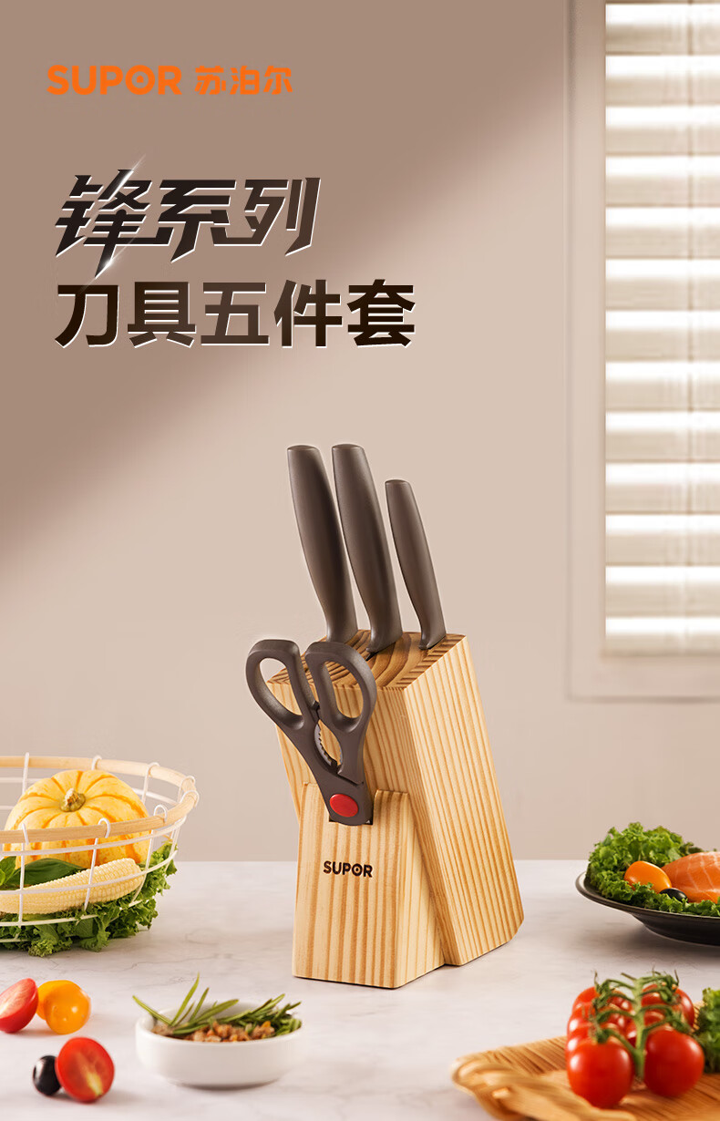 SUPOR knife set kitchen knife bone chopping knife meat cleaver fruit knife kitchen utensil set combination household kitchen scissors slicing knife five-piece set