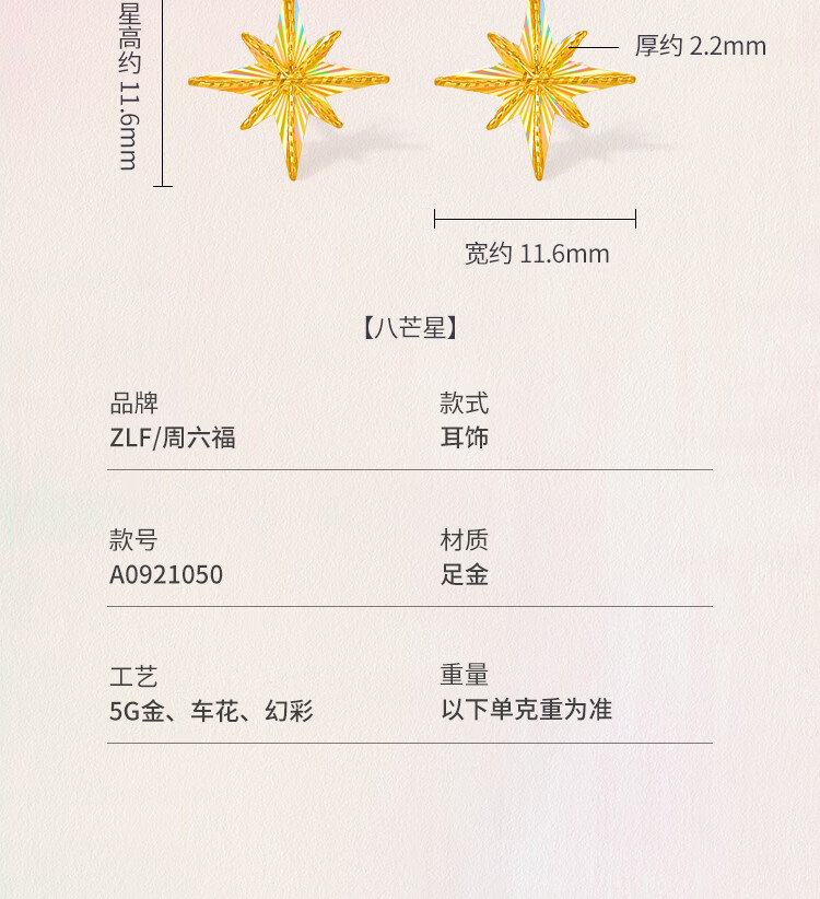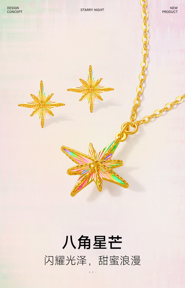 Saturday Blessings Octagonal Star Gold Necklace and Earrings Women's Foot Gold Pendant Birthday Gift Price Approximately 2.32g Chain Set 40+5cm