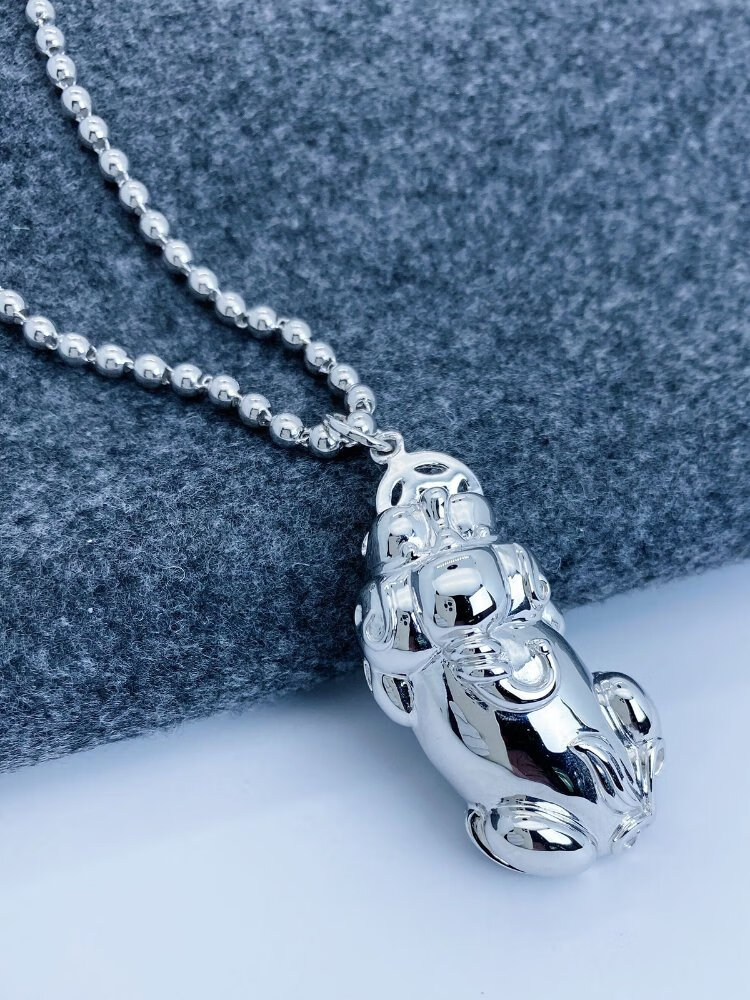 Heye Jewelry Bright Blind Pixiu Pendant Platinum pt950 High-end Men's Platinum Tag Men's Model Lucky Money 29.49g Width 24mm Buckle Height 55mm With Leather Cord
