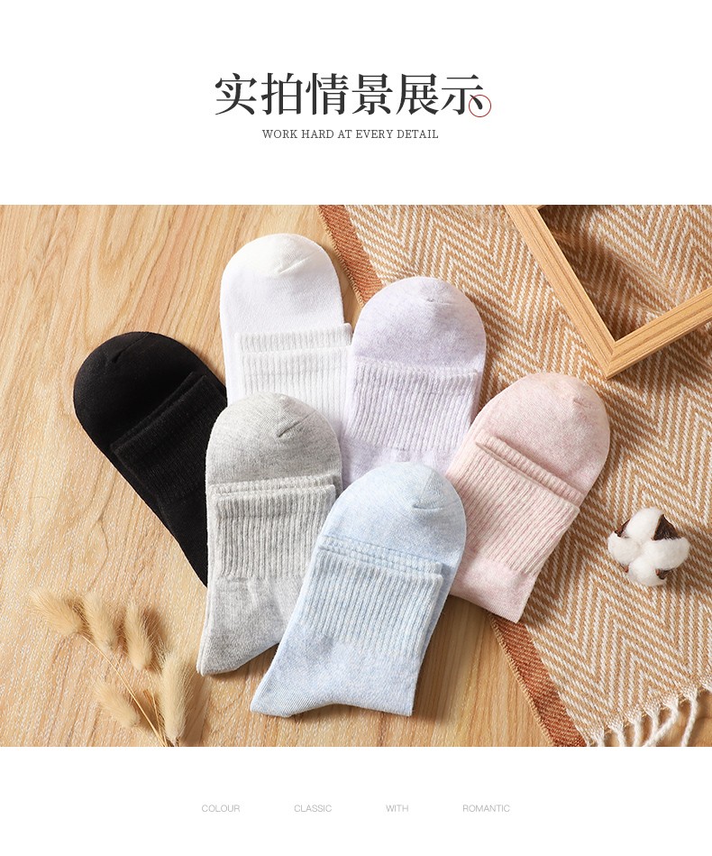 Langsha Socks Women's Socks Pure Cotton Mid-Tube Socks Four Seasons Socks Comfortable and Skin-friendly Fashion Simple Women's Socks Sweet Floral Yarn Box Pack 6 Pairs 36-40 Sizes Foot Length 22-26cm