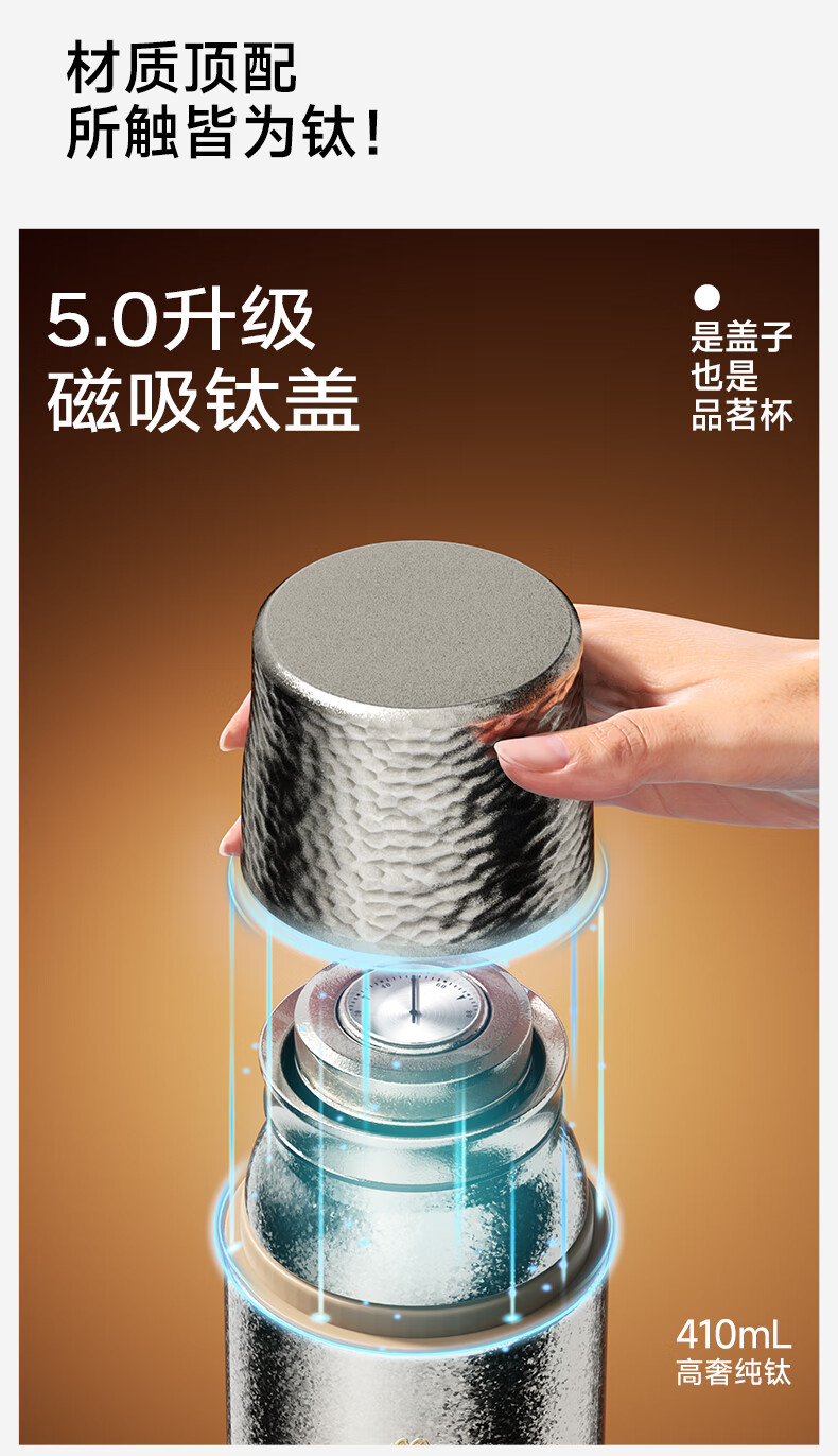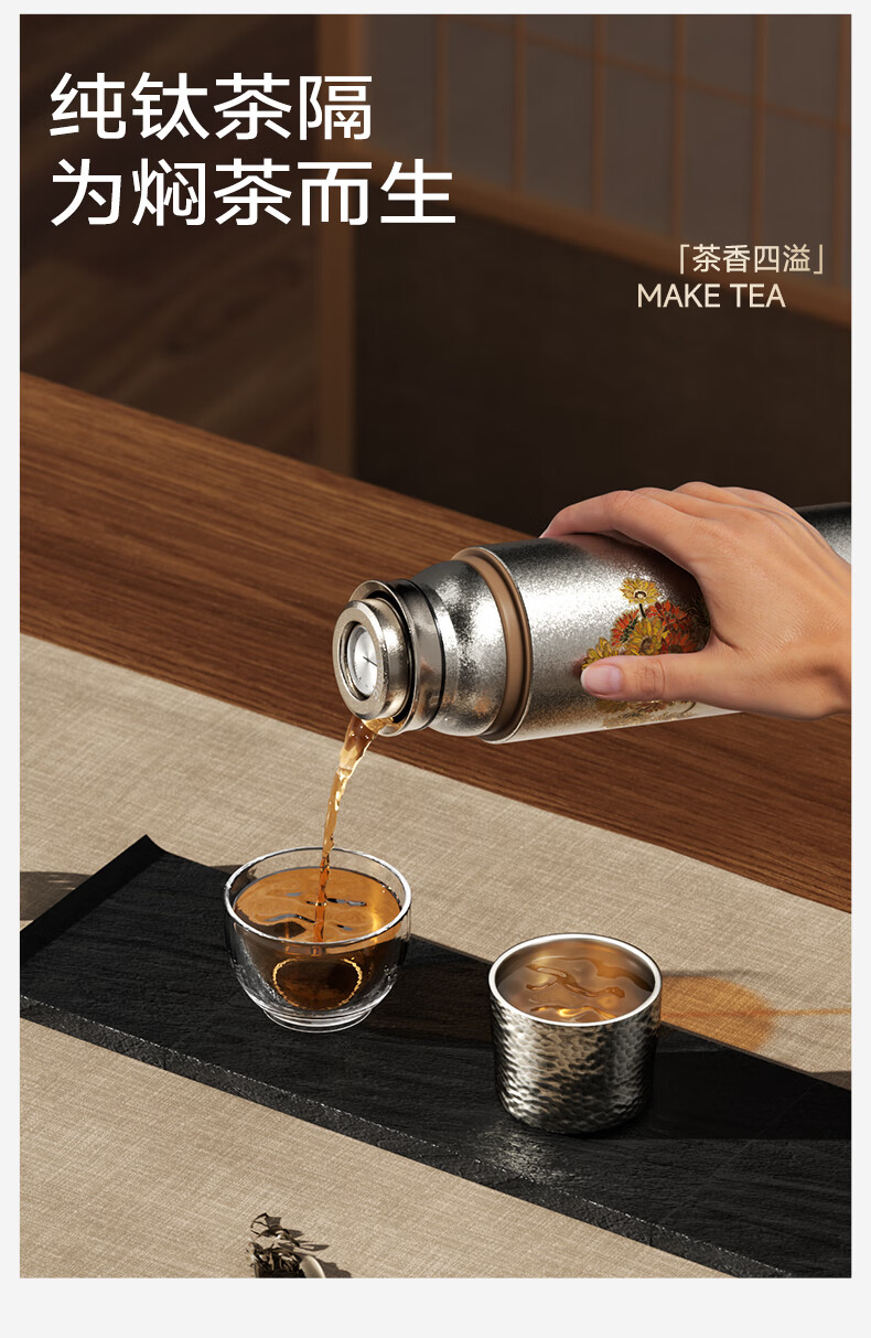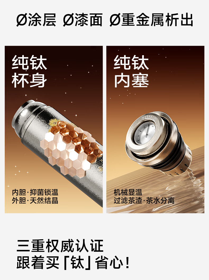 TOMIC Double-layer Pure Titanium Insulated Cup Zhu Bingren Copper Joint Tea Water Separator Tea Cup Water Cup Double Eleven Gift