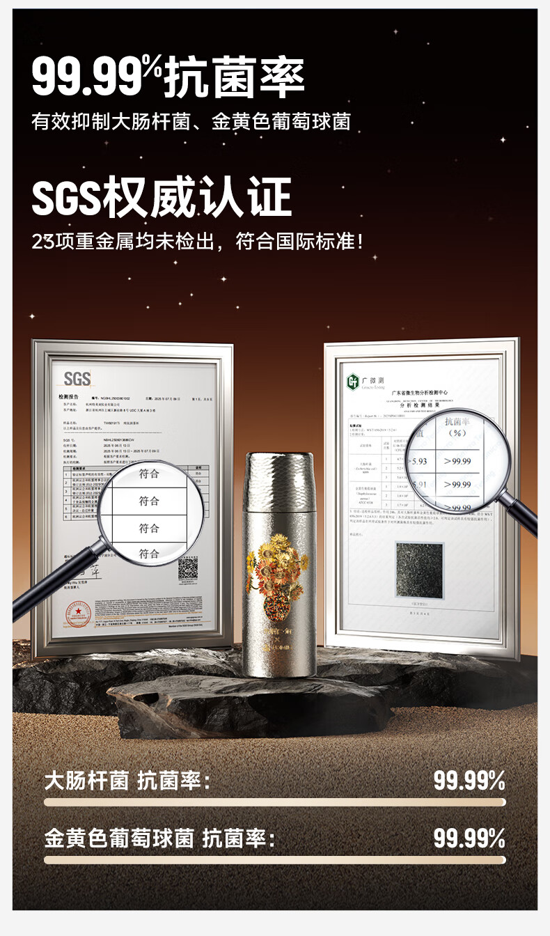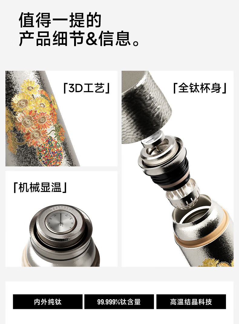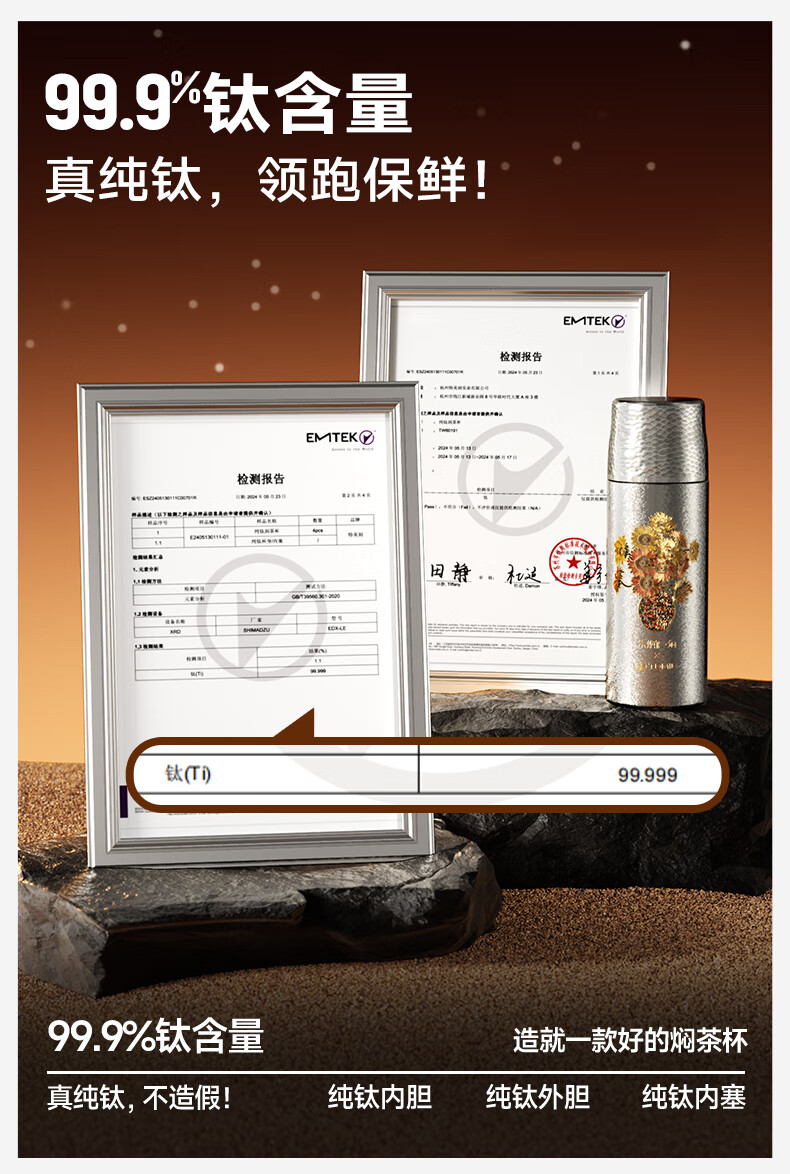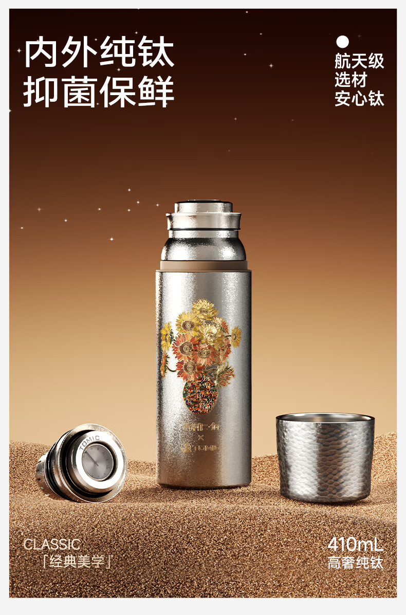 TOMIC Double-layer Pure Titanium Insulated Cup Zhu Bingren Copper Joint Tea Water Separator Tea Cup Water Cup Double Eleven Gift