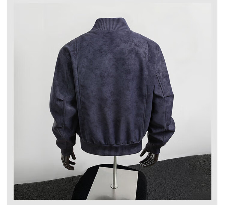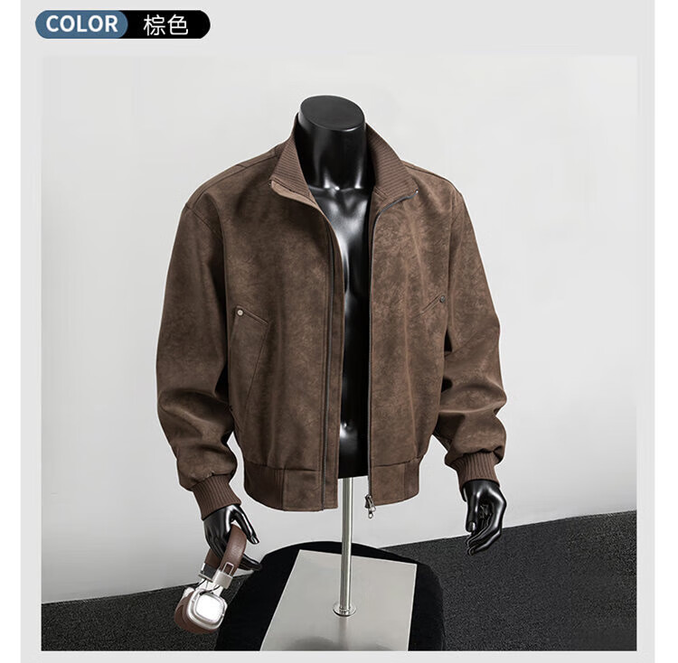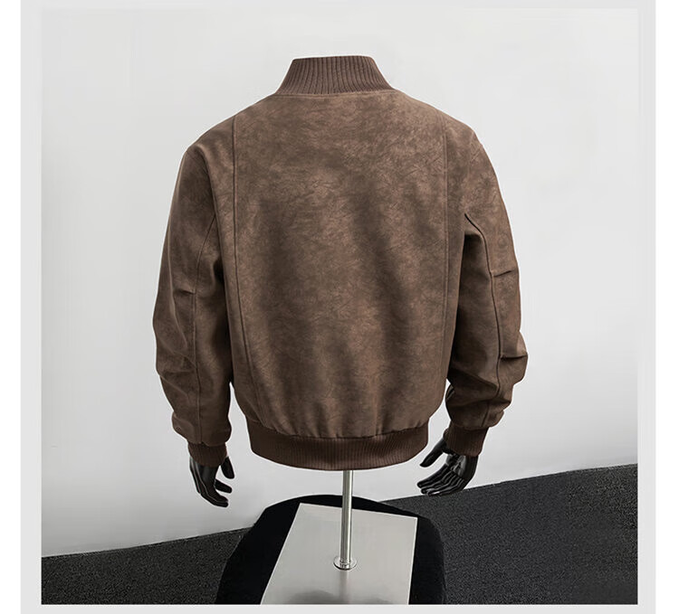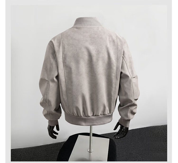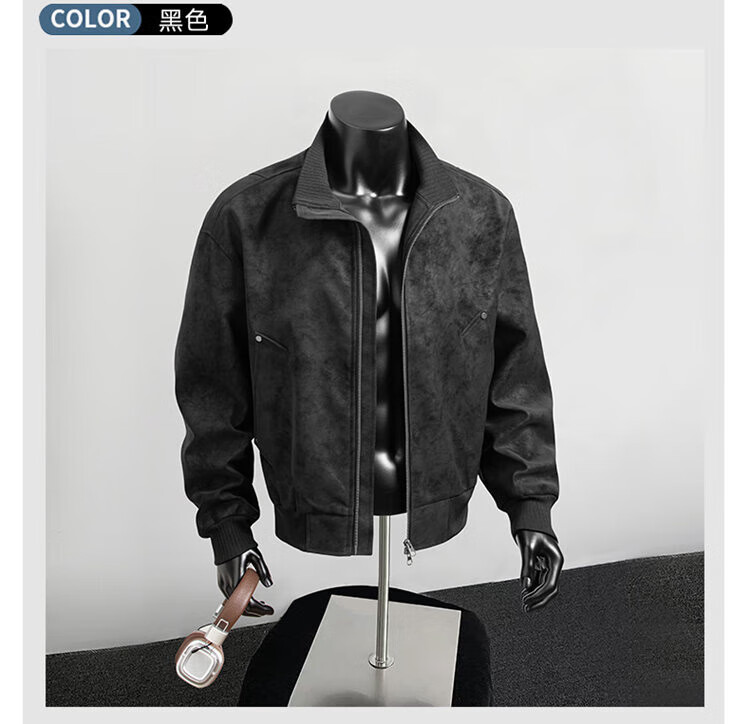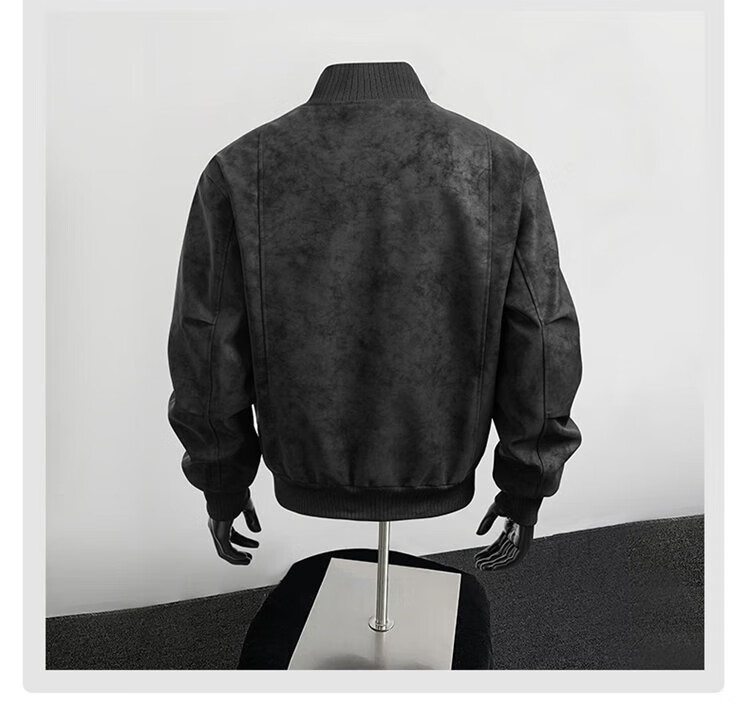 Luo Meng matte leather jacket men's spring and autumn short couple flying pu leather jacket stand collar baseball uniform black 2XL