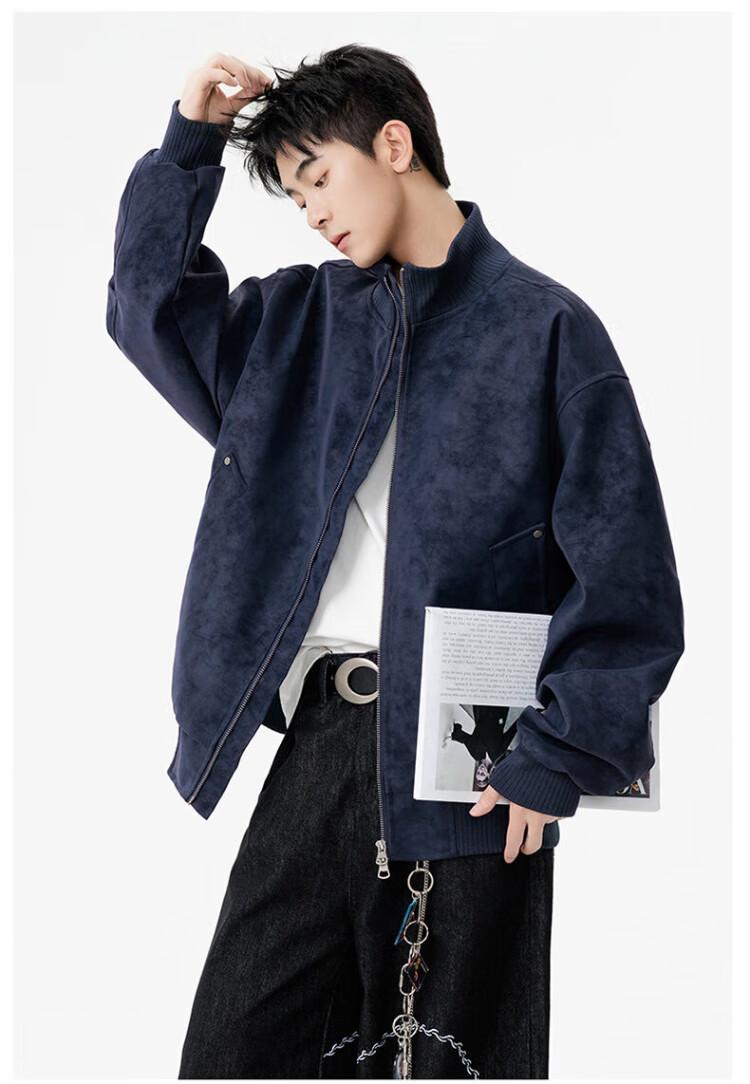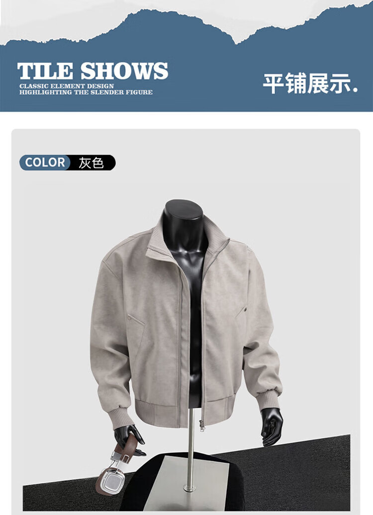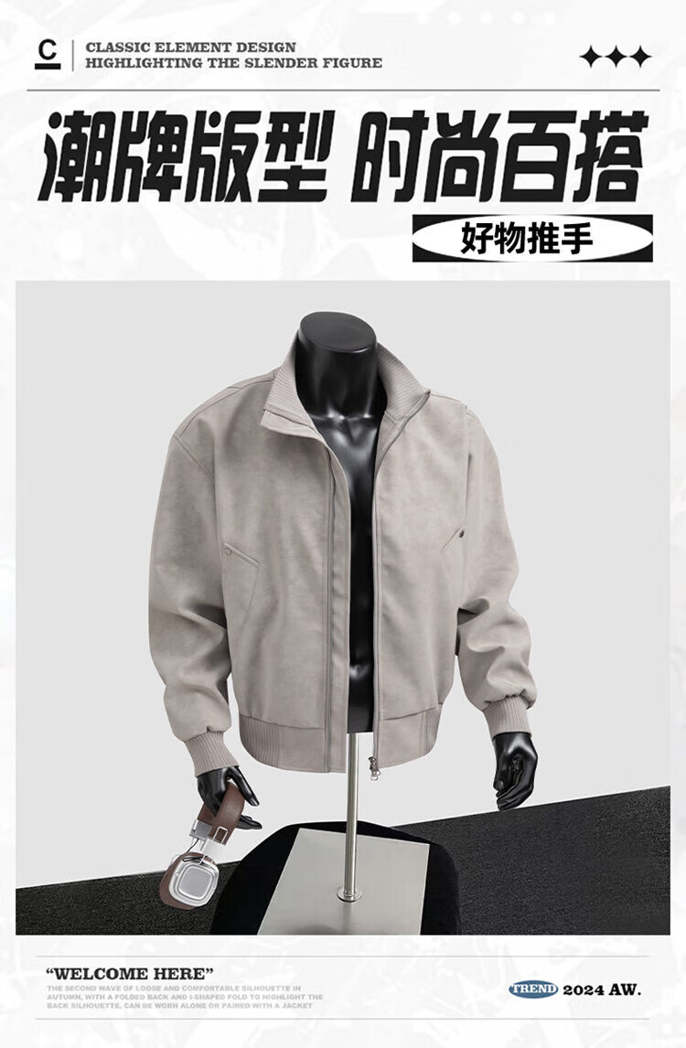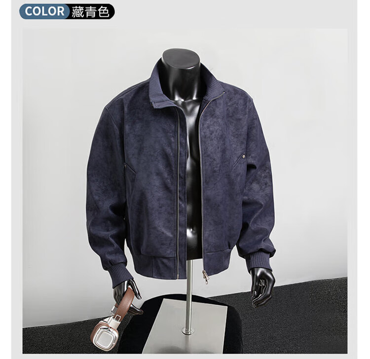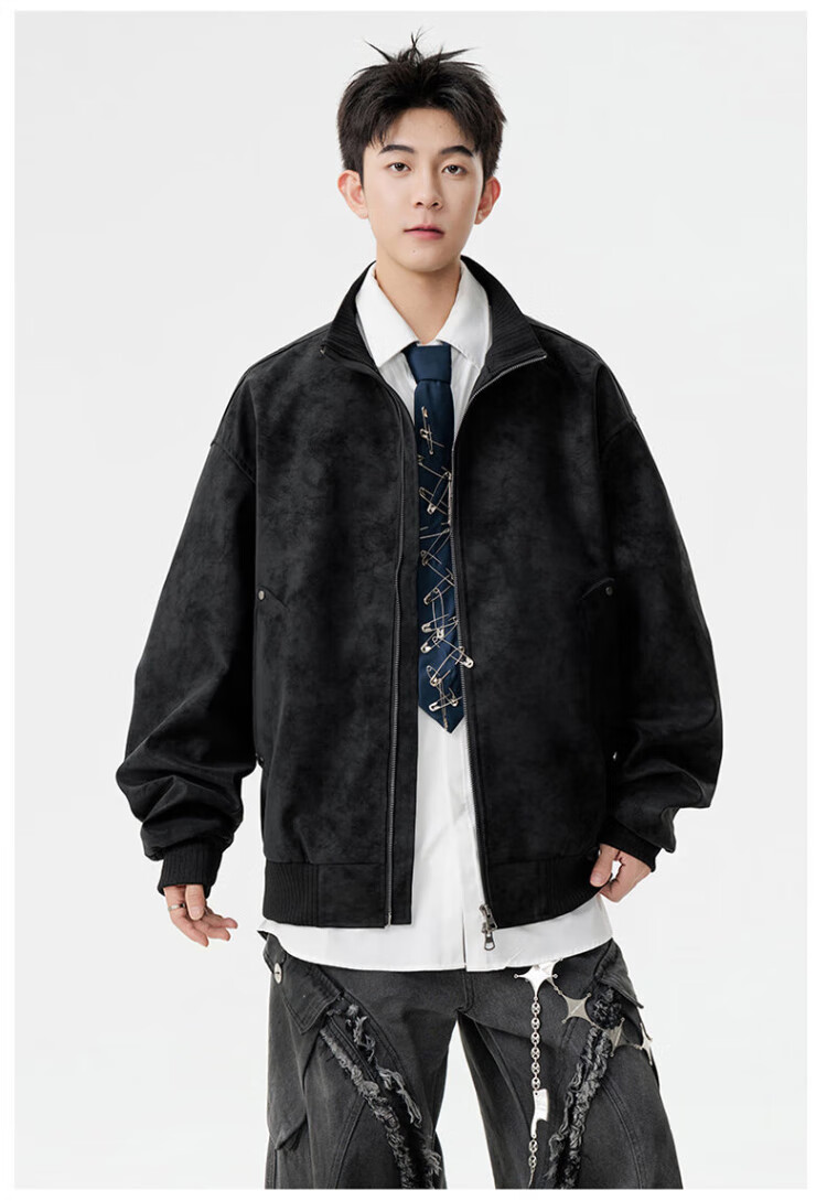 Luo Meng matte leather jacket men's spring and autumn short couple flying pu leather jacket stand collar baseball uniform black 2XL