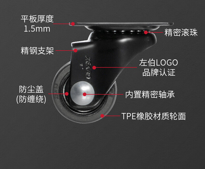 Zuobo casters, furniture universal wheels, mobile pulleys, soft tone wheels, 1-inch black flat universal wheels, 4 pieces