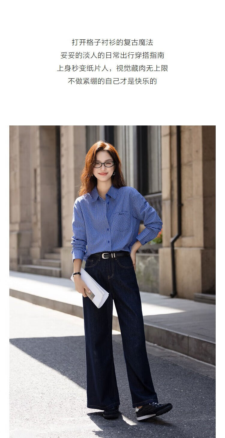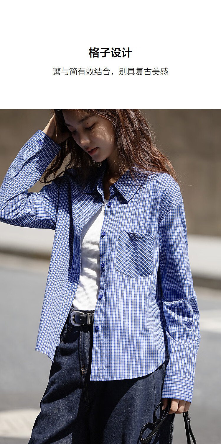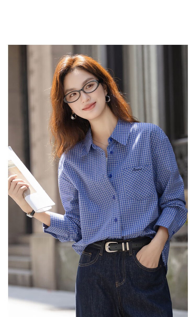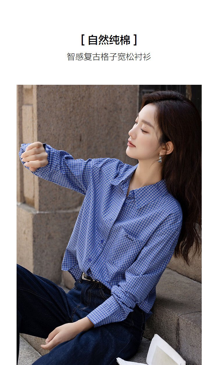 Demana natural cotton autumn smart retro plaid shirt loose petite temperament shirt women's top