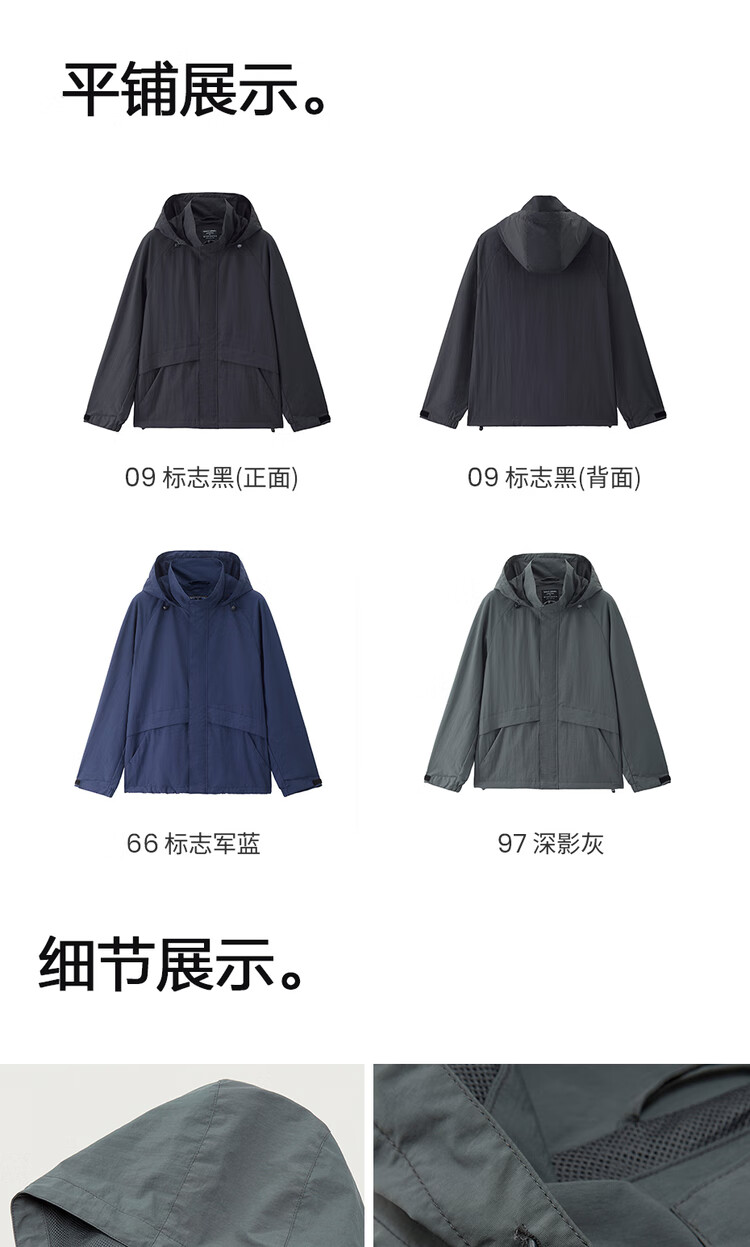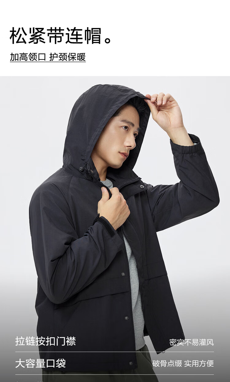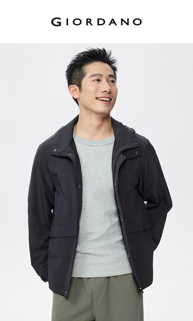 Giordano lightweight windproof jacket men's autumn and winter mesh raglan sleeve hooded windbreaker jacket 13075130